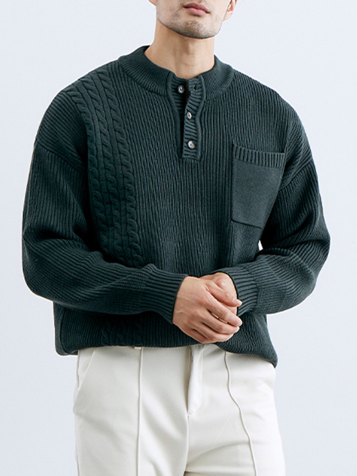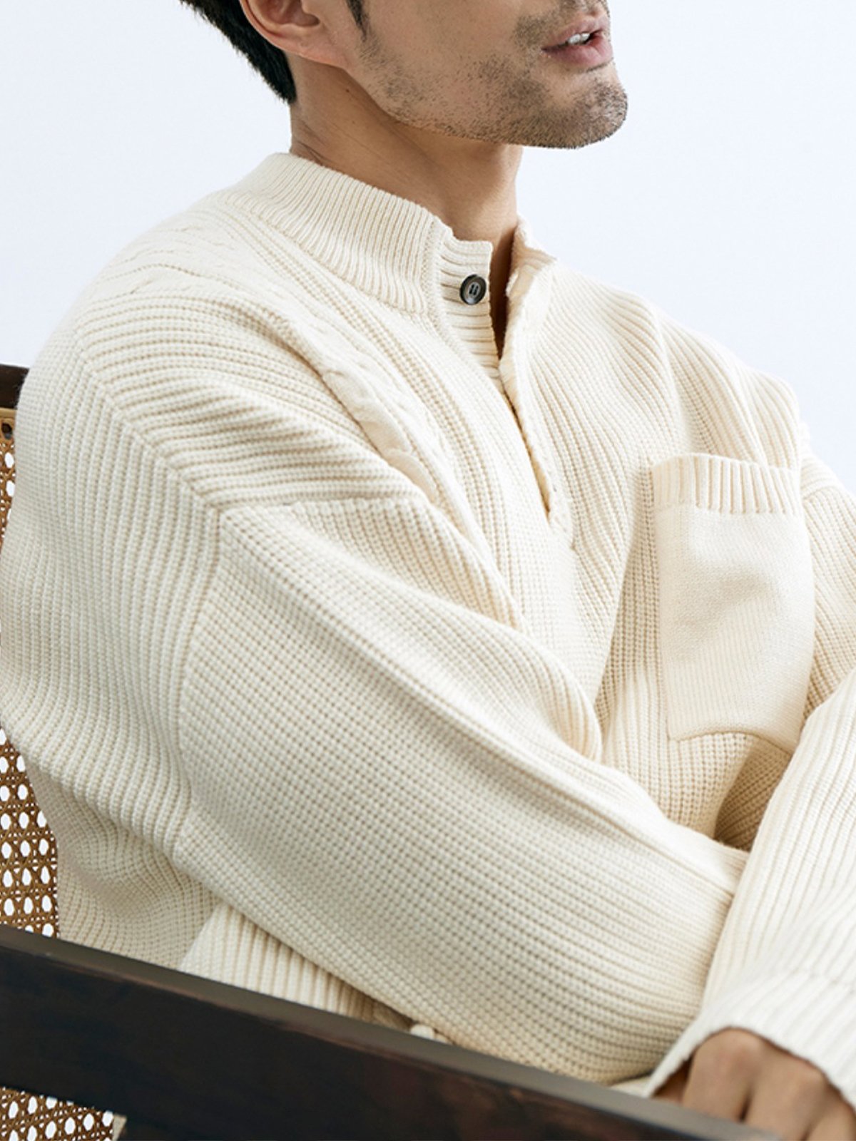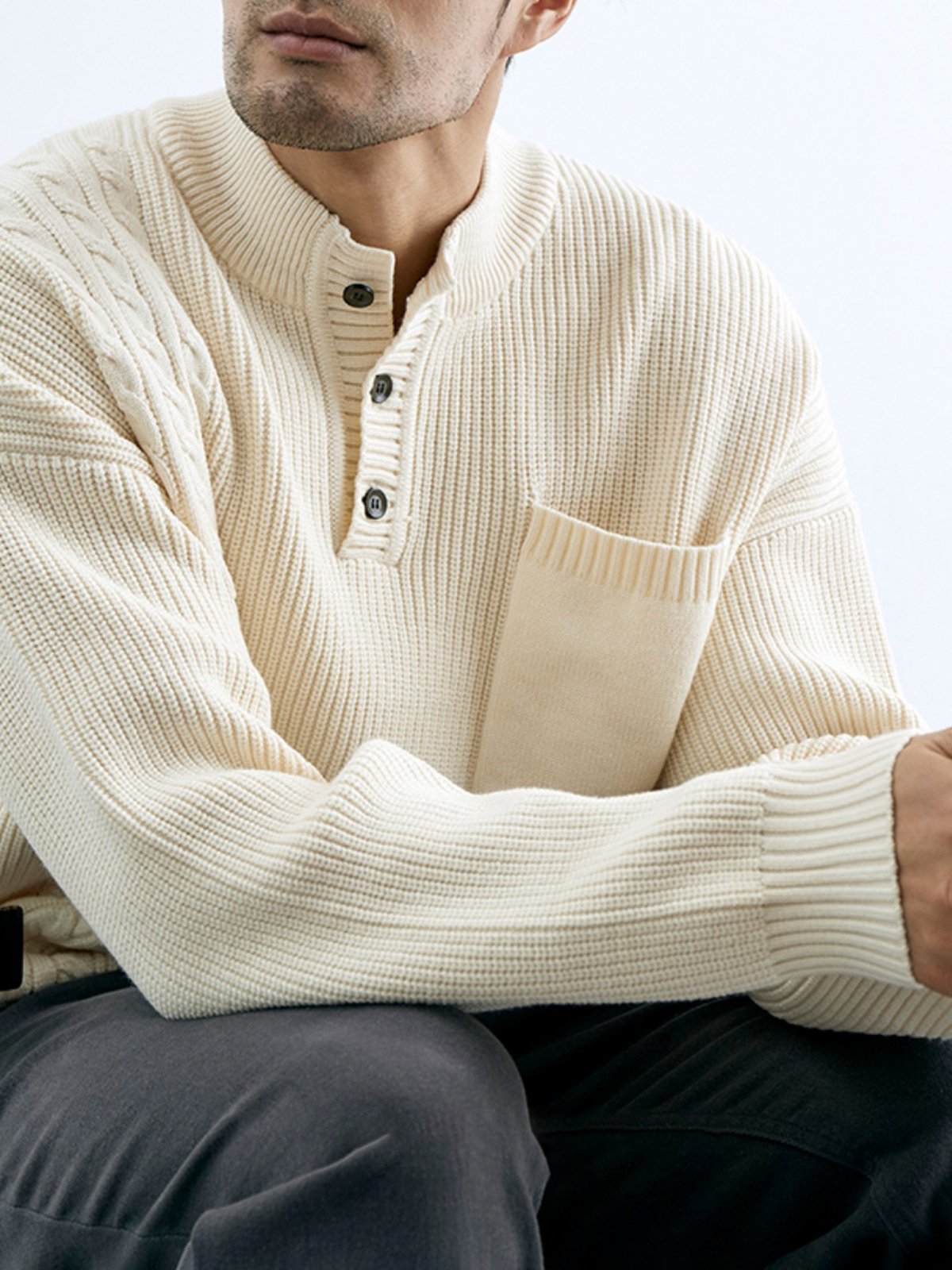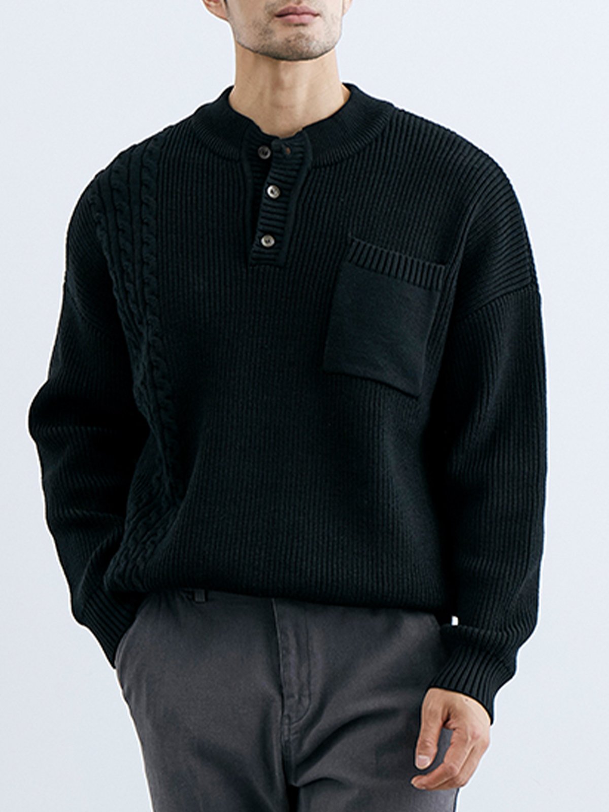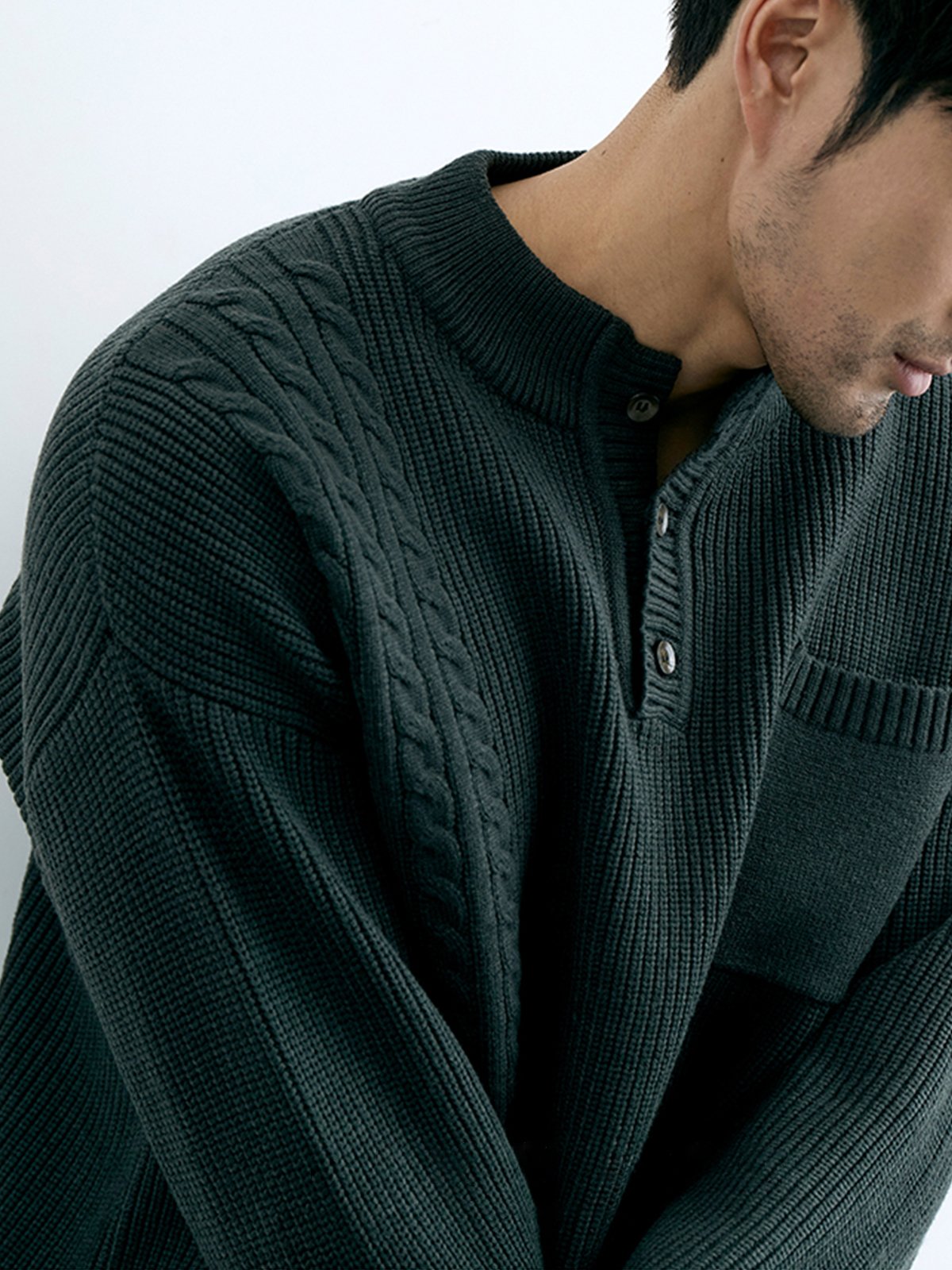 Camisa henley de manga larga con dobladillo curvado y punto acanalado