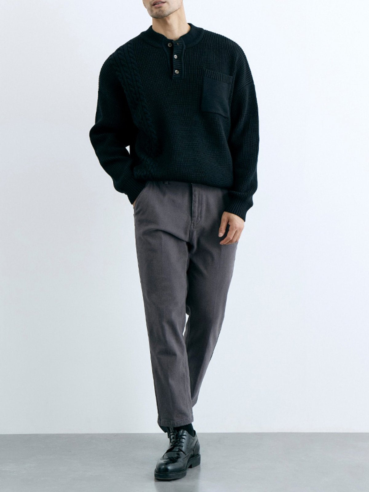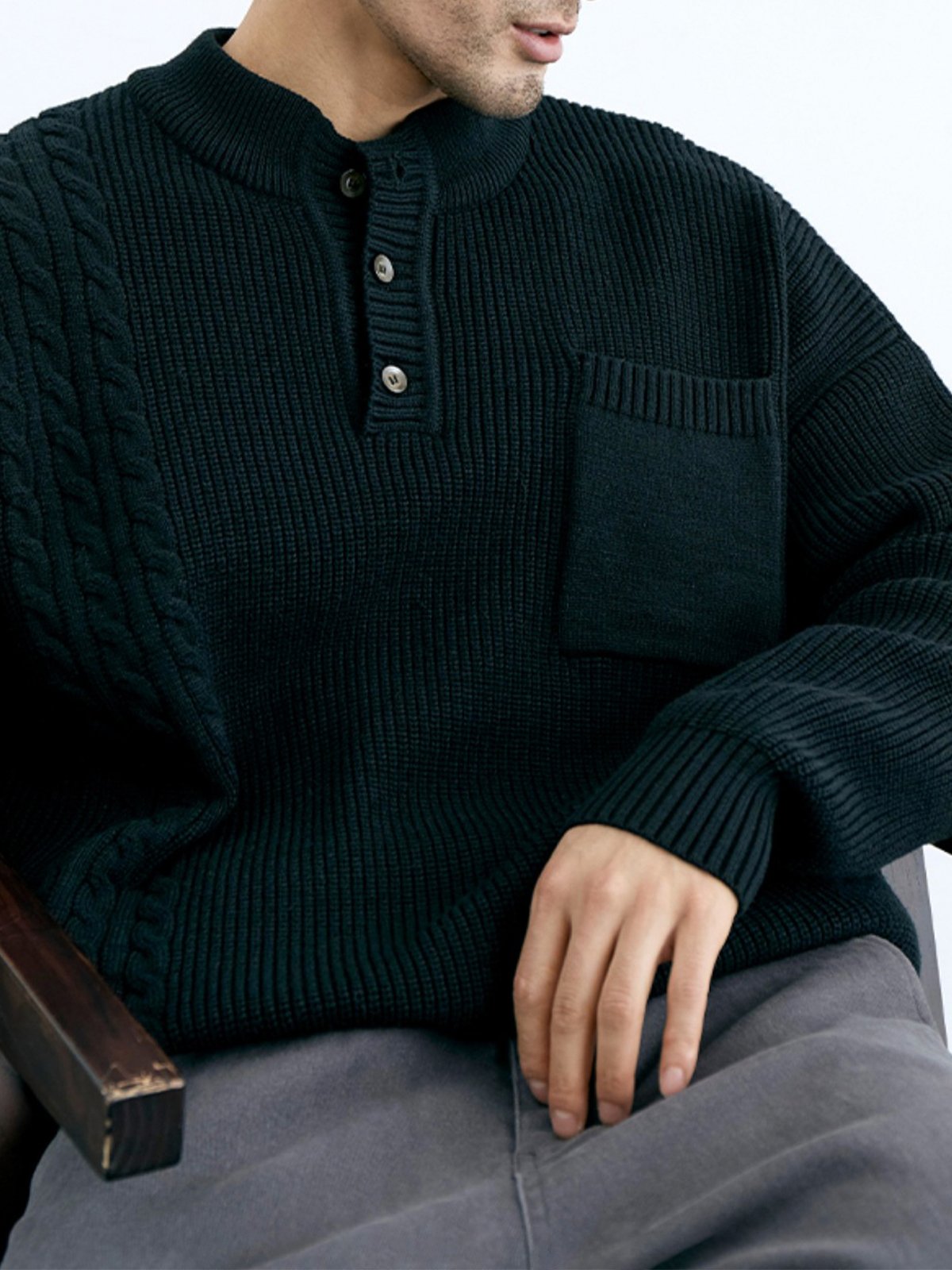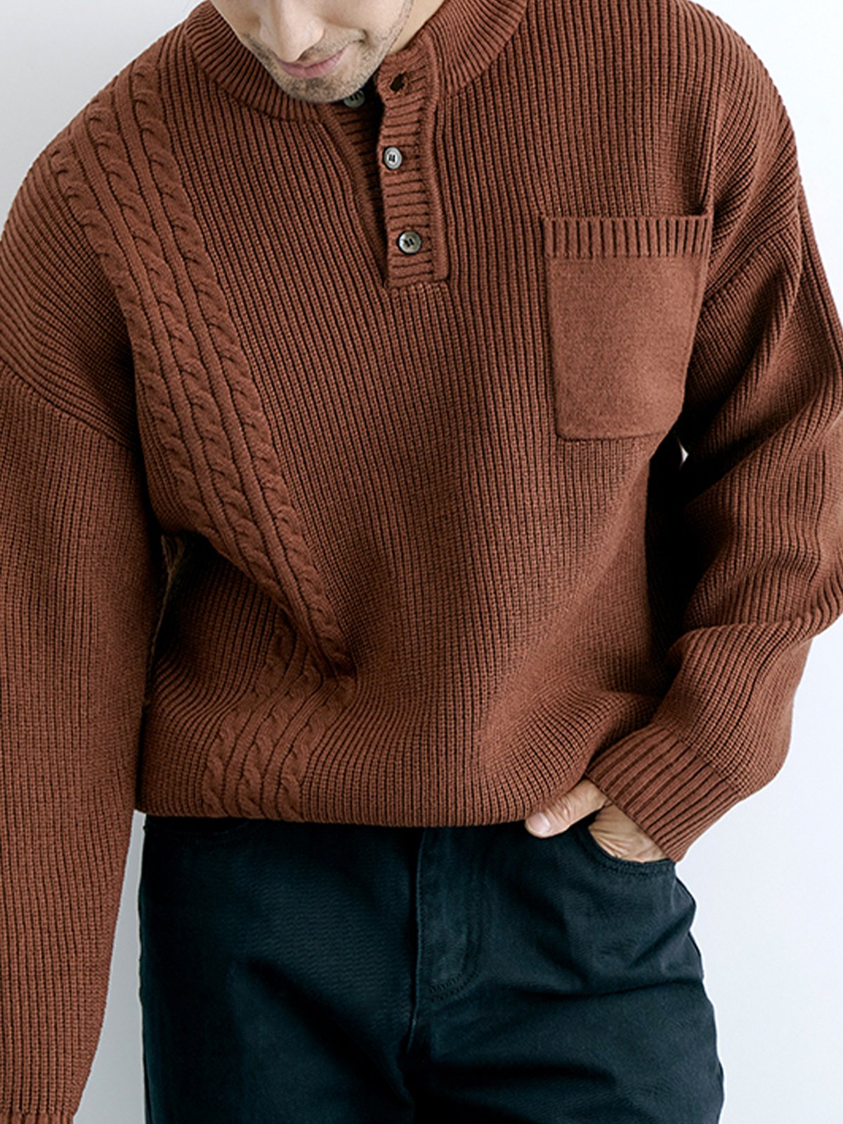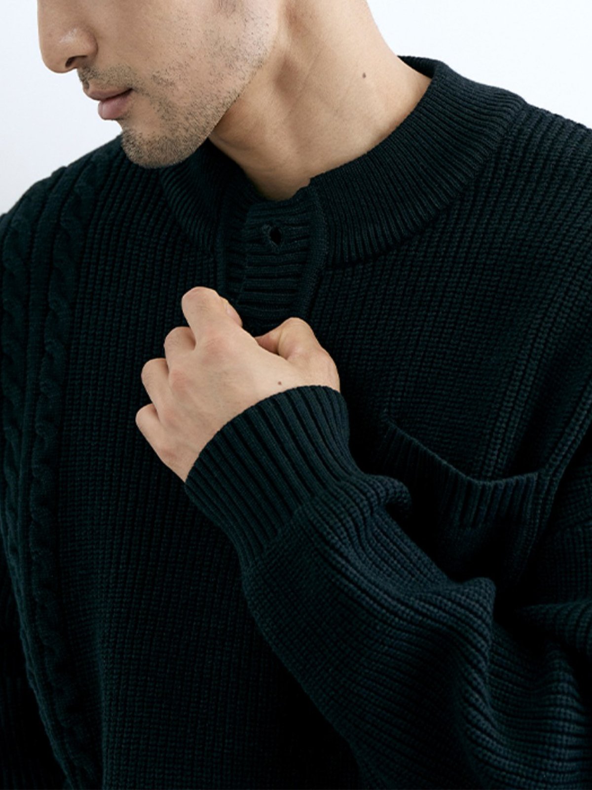 Camisa henley de manga larga con dobladillo curvado y punto acanalado