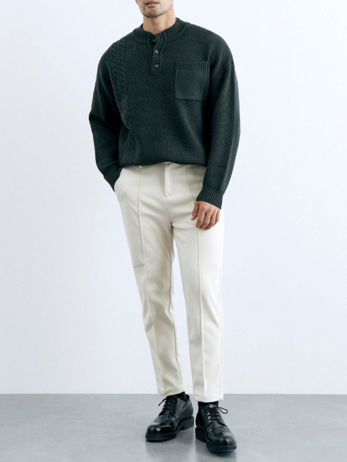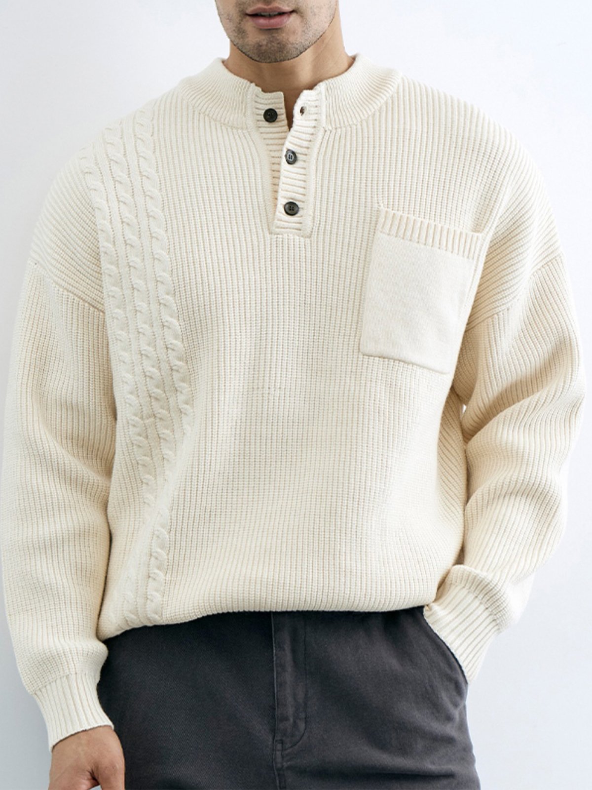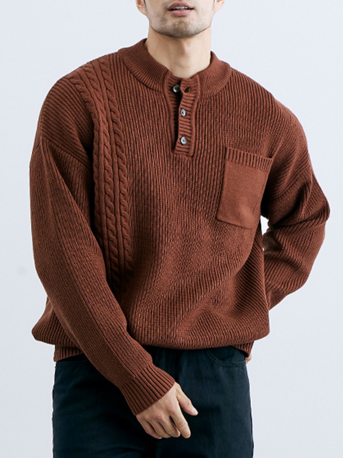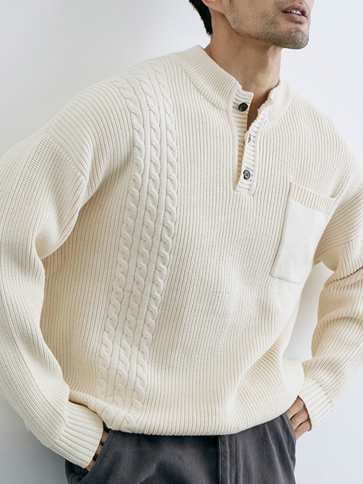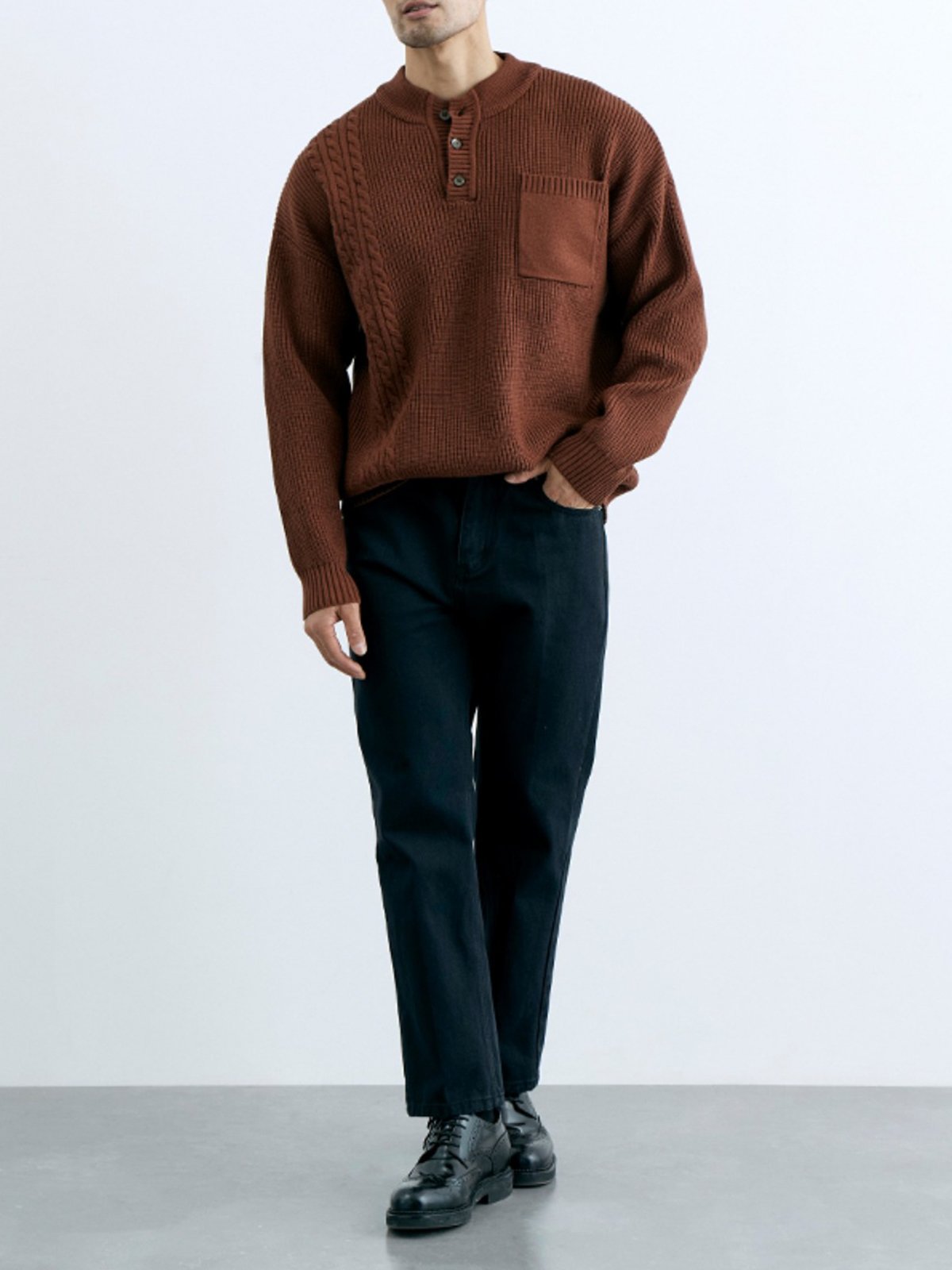 Camisa henley de manga larga con dobladillo curvado y punto acanalado