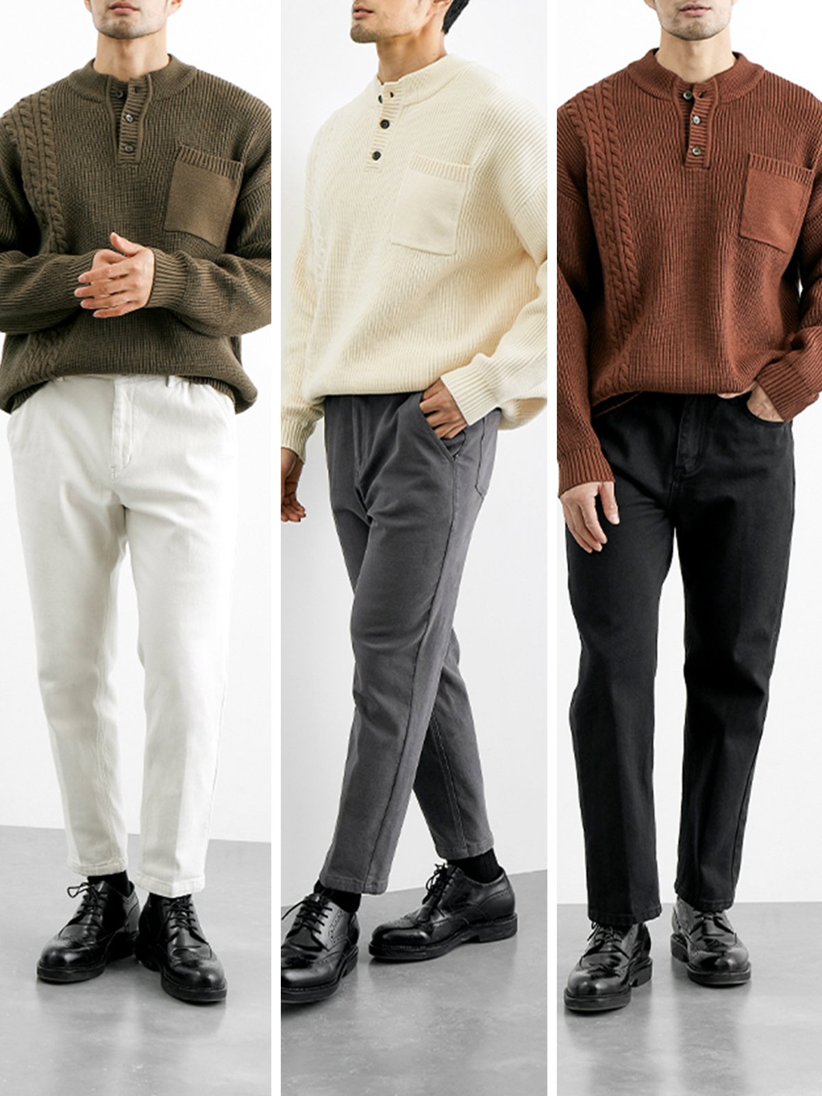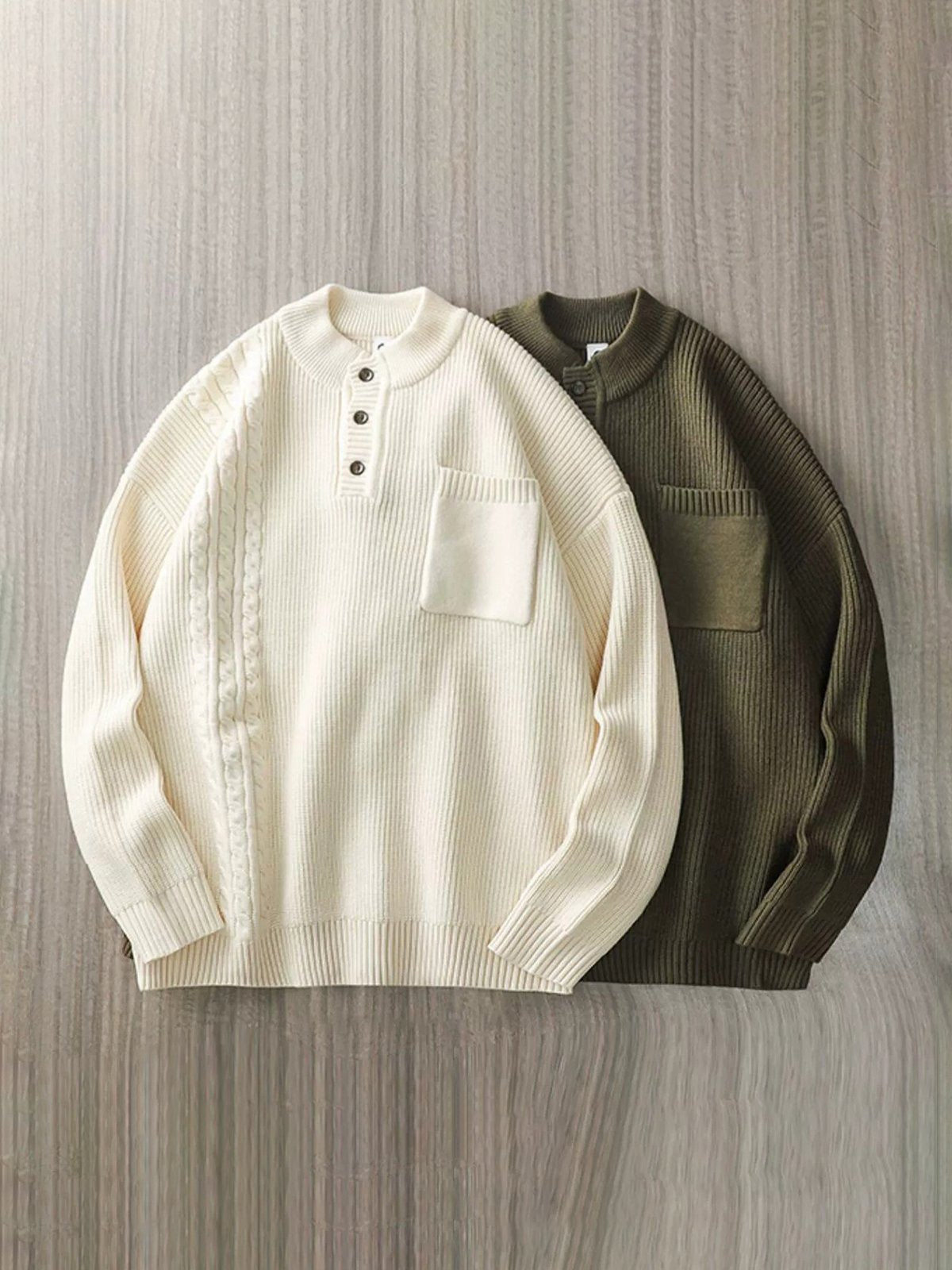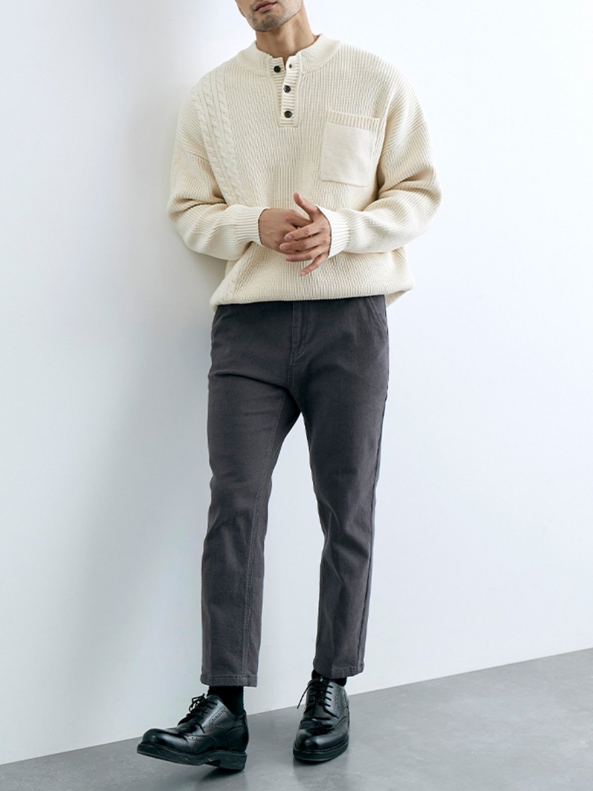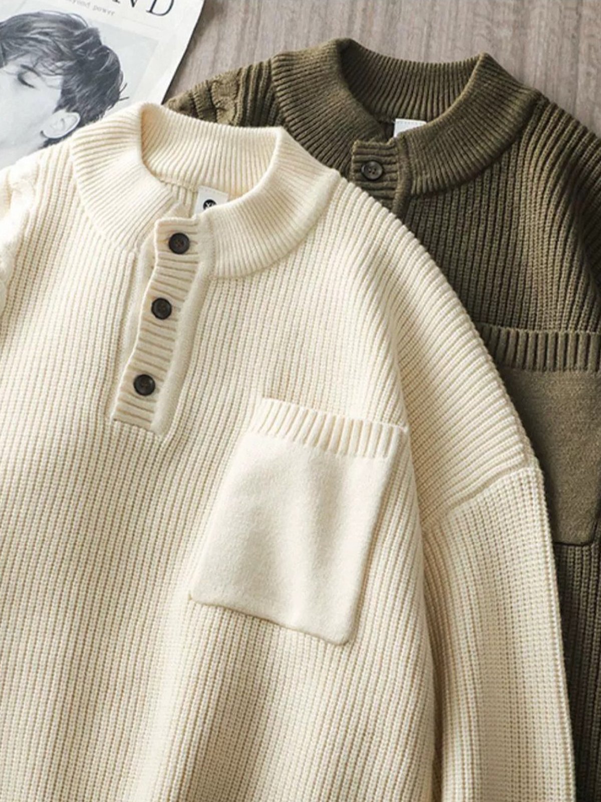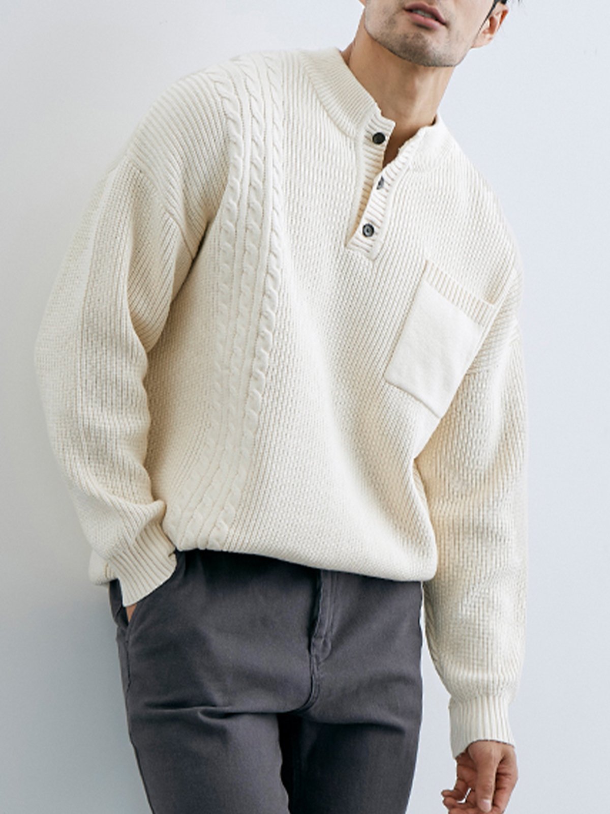 Camisa henley de manga larga con dobladillo curvado y punto acanalado