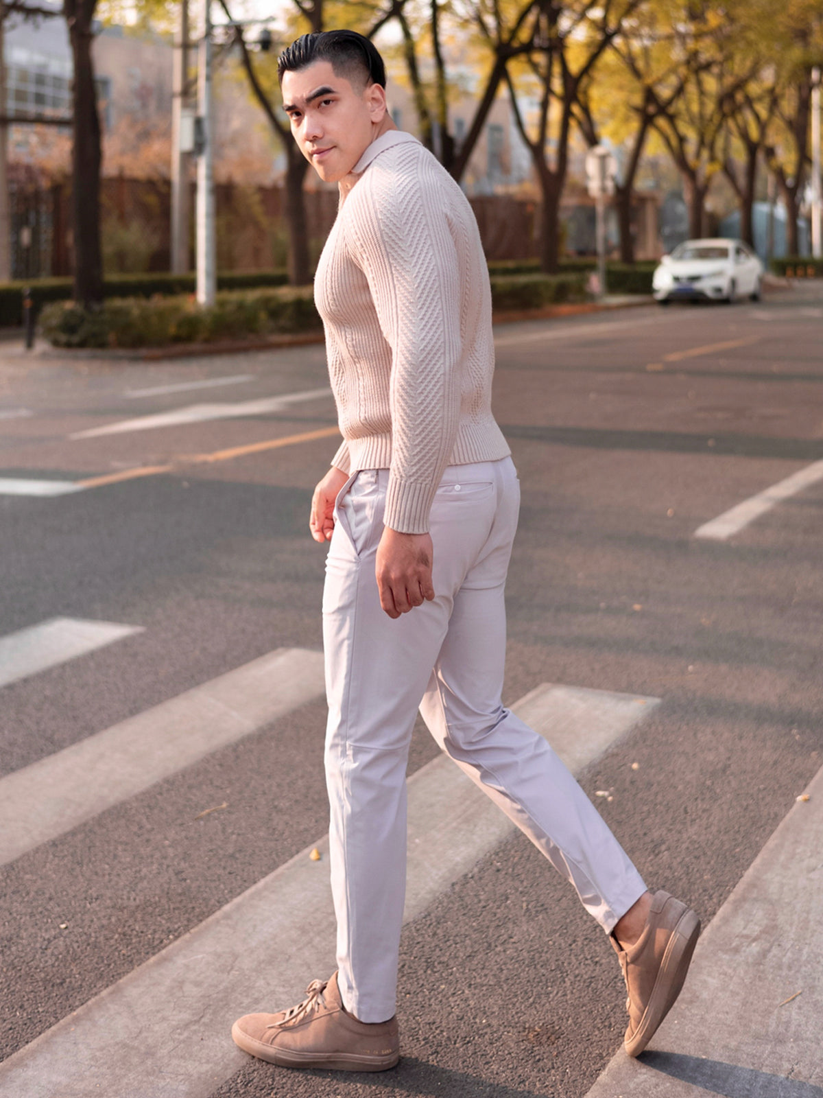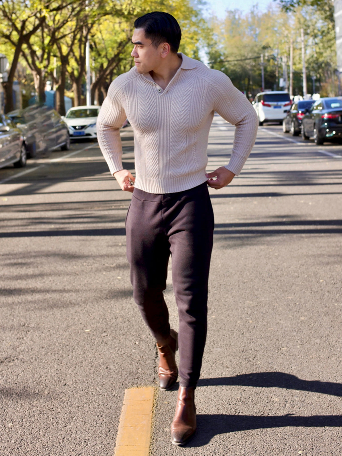 - Estilo de inspiración vintage con aires casuales, tejido con una mezcla de puntos verticales.