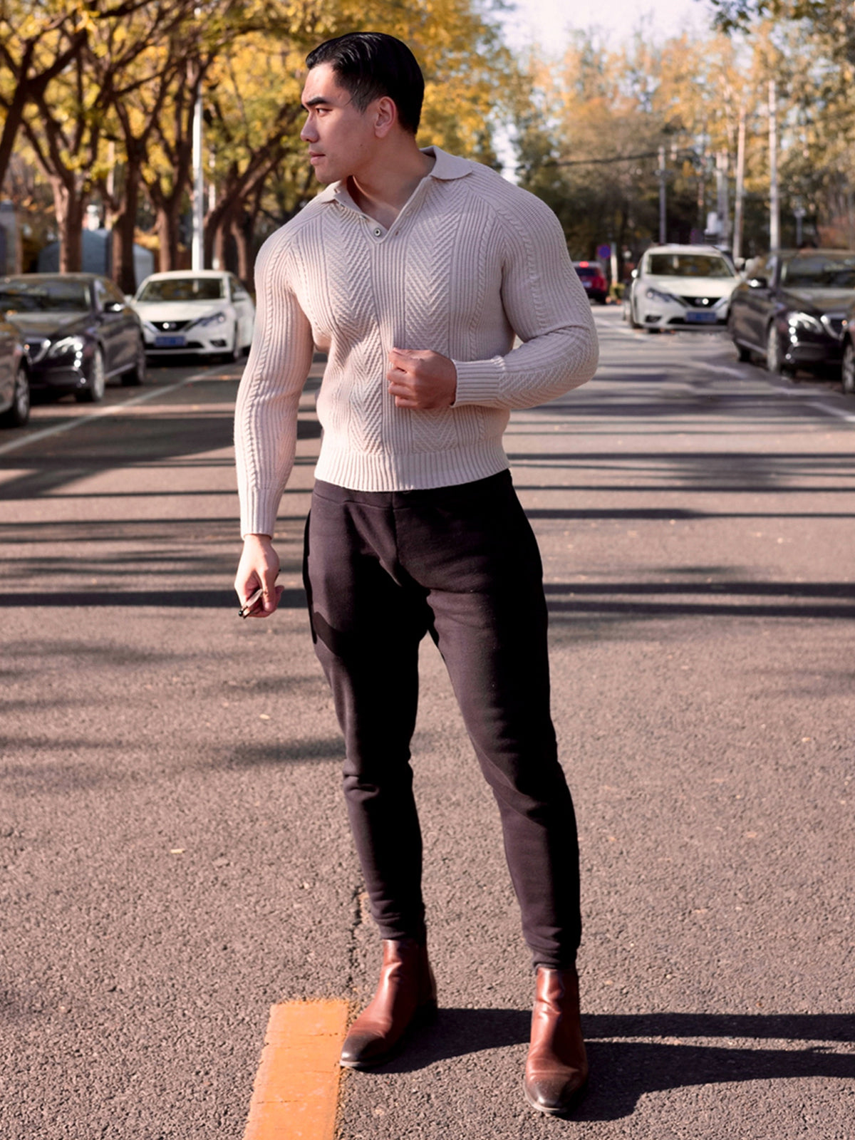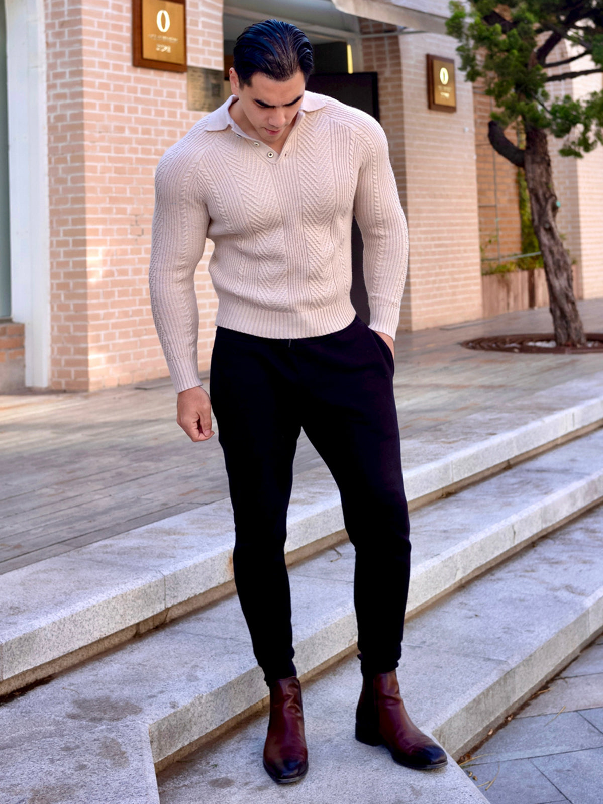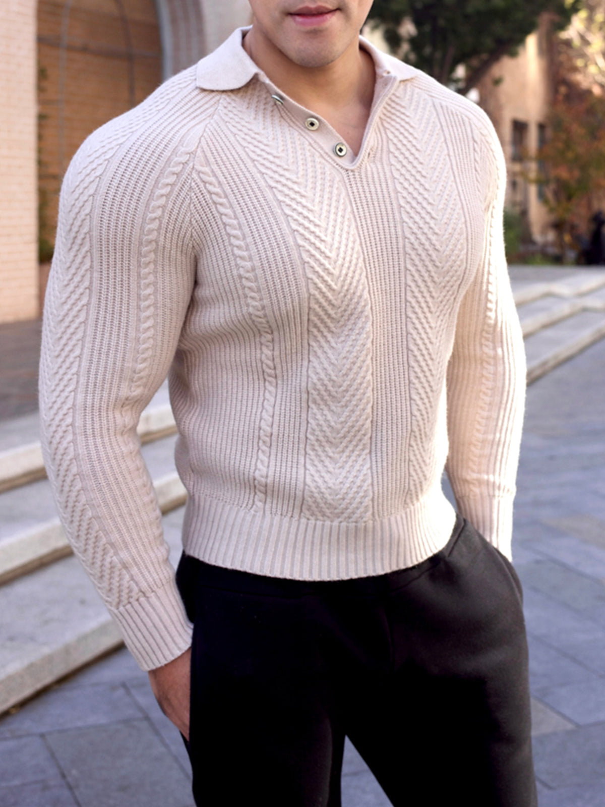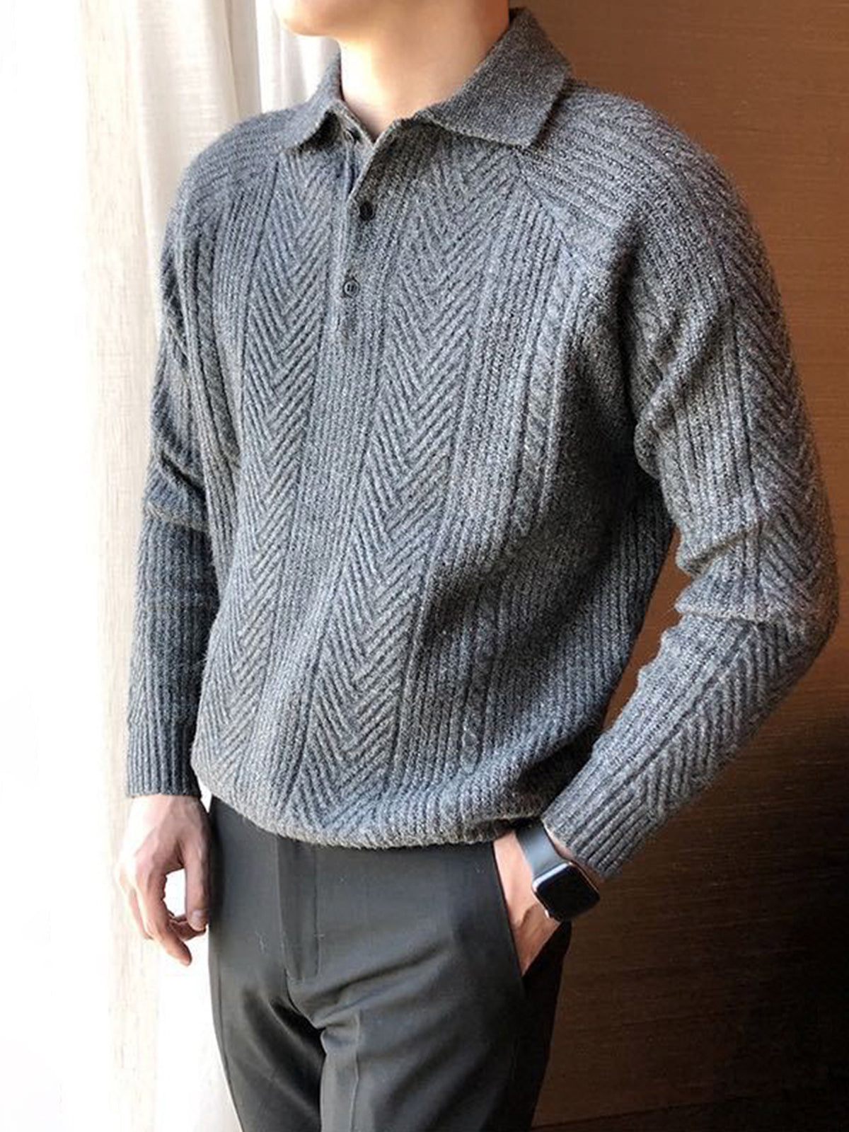 Jersey tipo polo con cuello henley