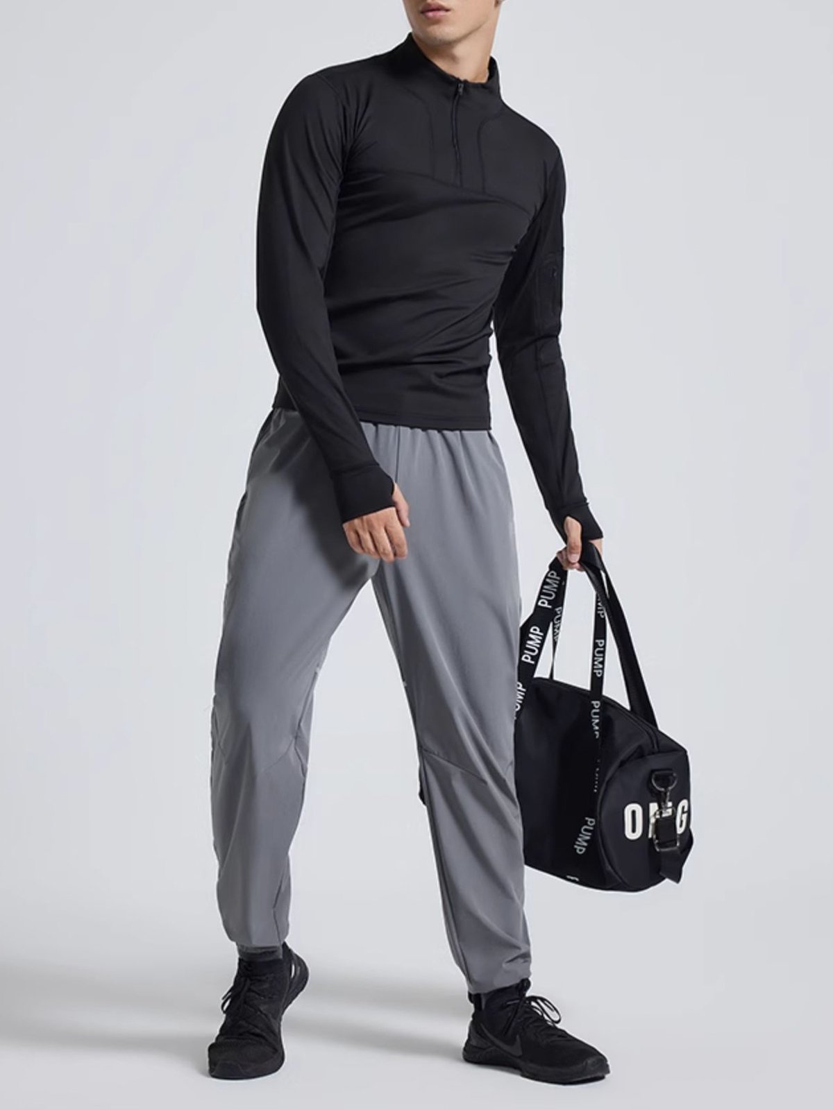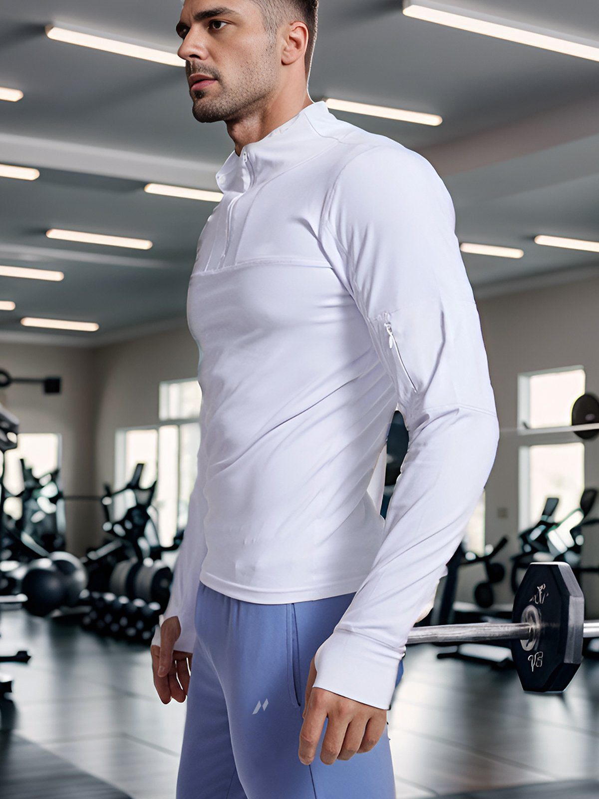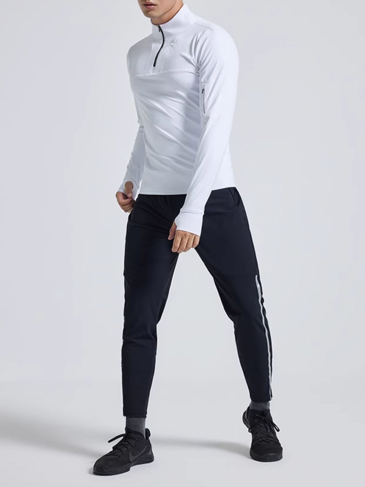 - Cremallera frontal de 1/4 con cuello que se puede usar fácilmente hacia arriba o hacia abajo