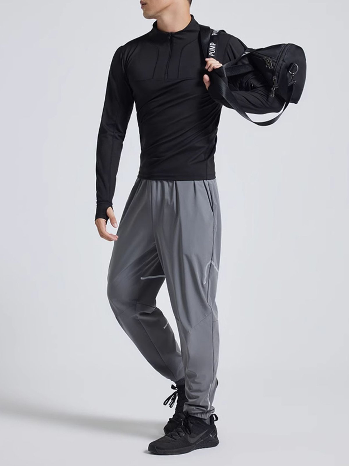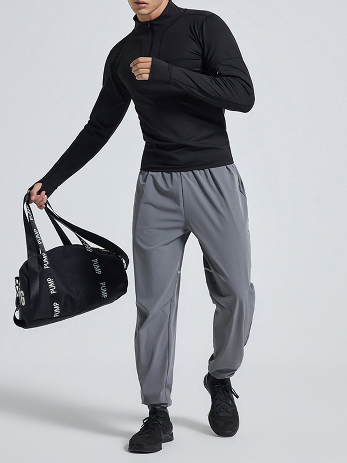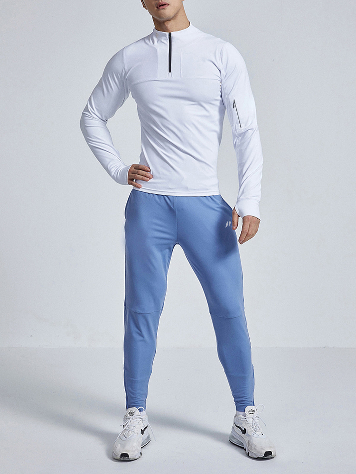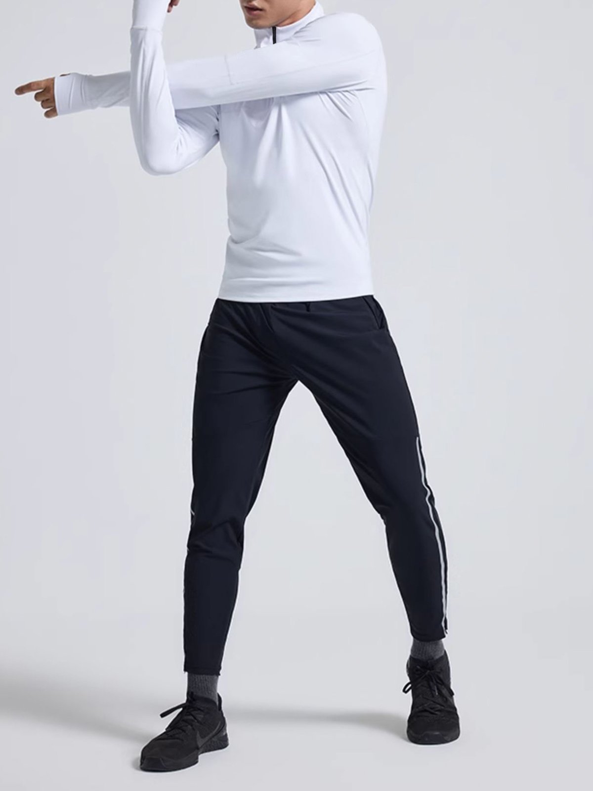 - Cremallera frontal de 1/4 con cuello que se puede usar fácilmente hacia arriba o hacia abajo