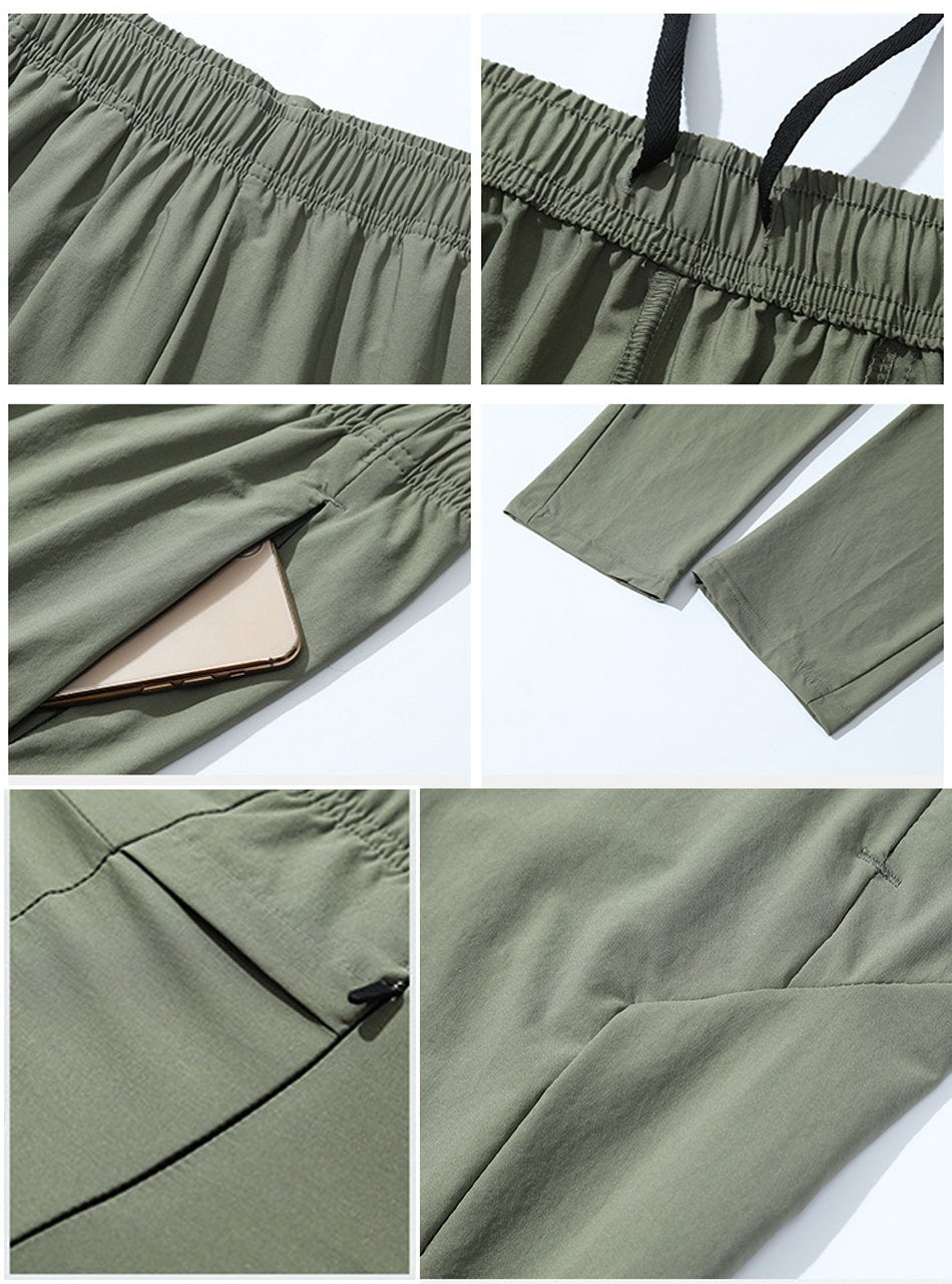 Este es un par de pantalones livianos de secado rápido con tres bolsillos. Está confeccionado con tejido elástico en cuatro direcciones y transpirable. Asegúrese de sentirse cómodo durante su entrenamiento y durante todo el día.