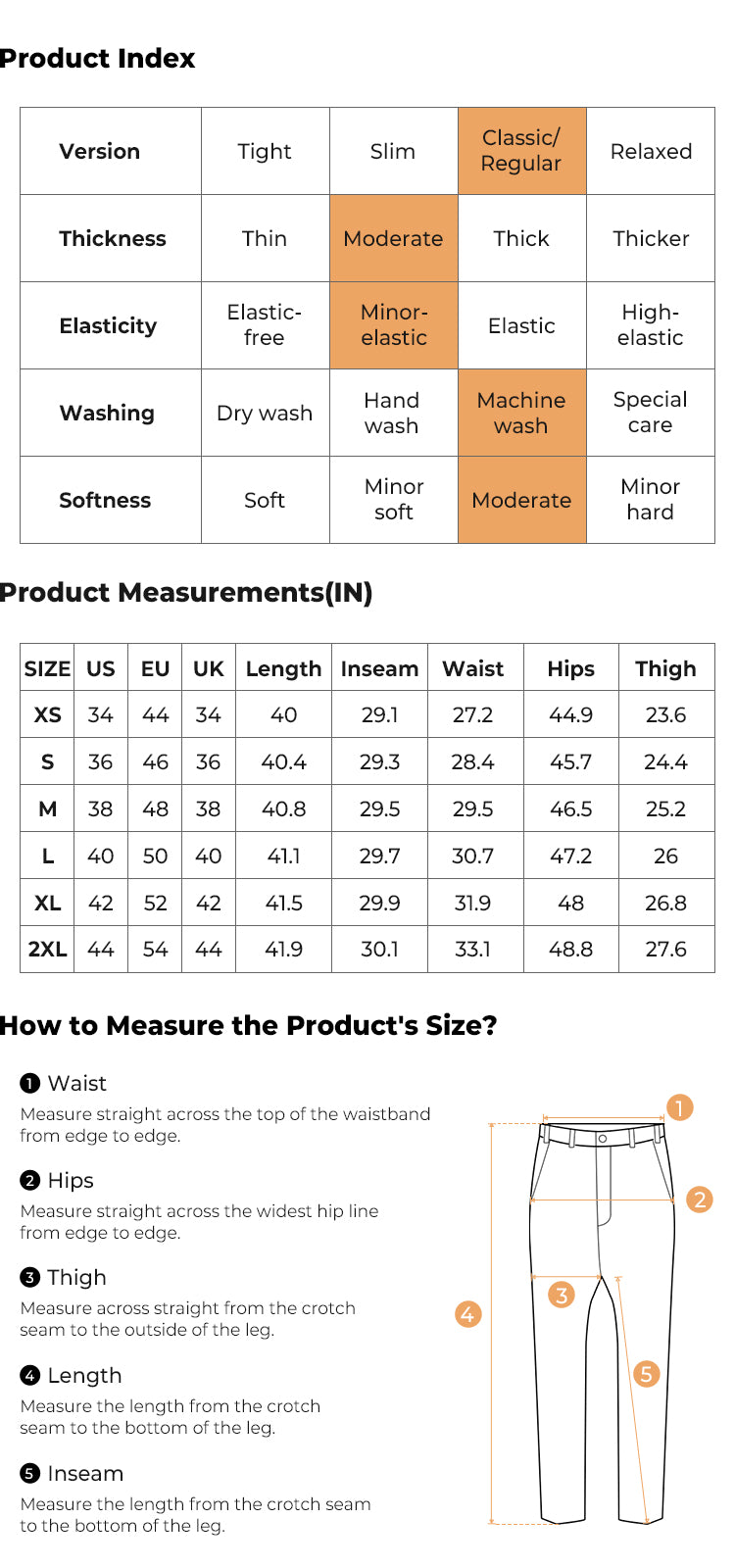 - Longitud: entrepierna de 30''
