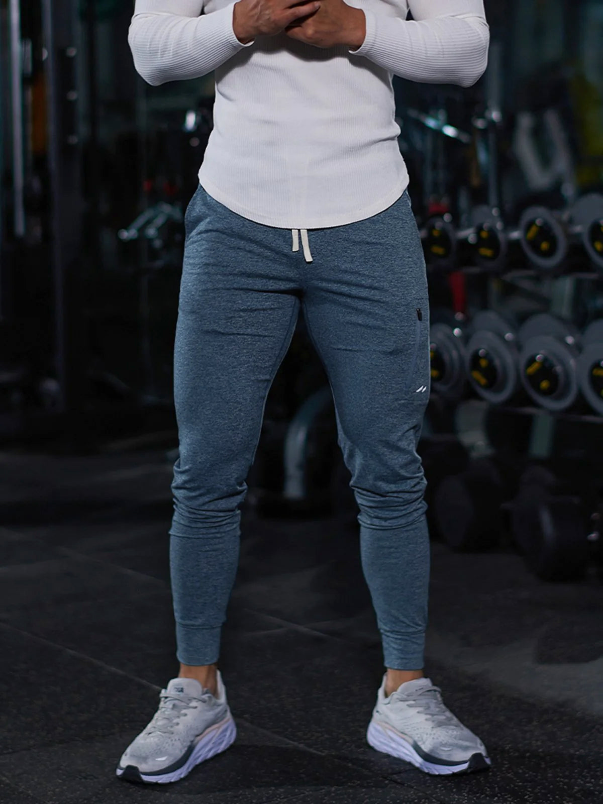 Estos pantalones deportivos versátiles y de corte entallado para hombre fueron creados para brindar comodidad activa. El tejido elástico en cuatro direcciones absorbe la humedad para mantenerte fresco y seco, mientras que la cintura y los tobillos elásticos garantizan facilidad de movimiento. Múltiples bolsillos guardan de forma segura lo esencial y el cordón ajustable proporciona un ajuste personalizado. Las características de diseño bien pensadas, como los bolsillos redondos y los tobillos con cremallera, hacen que estos pantalones sean ideales para viajar, hacer ejercicio y usar todos los días.