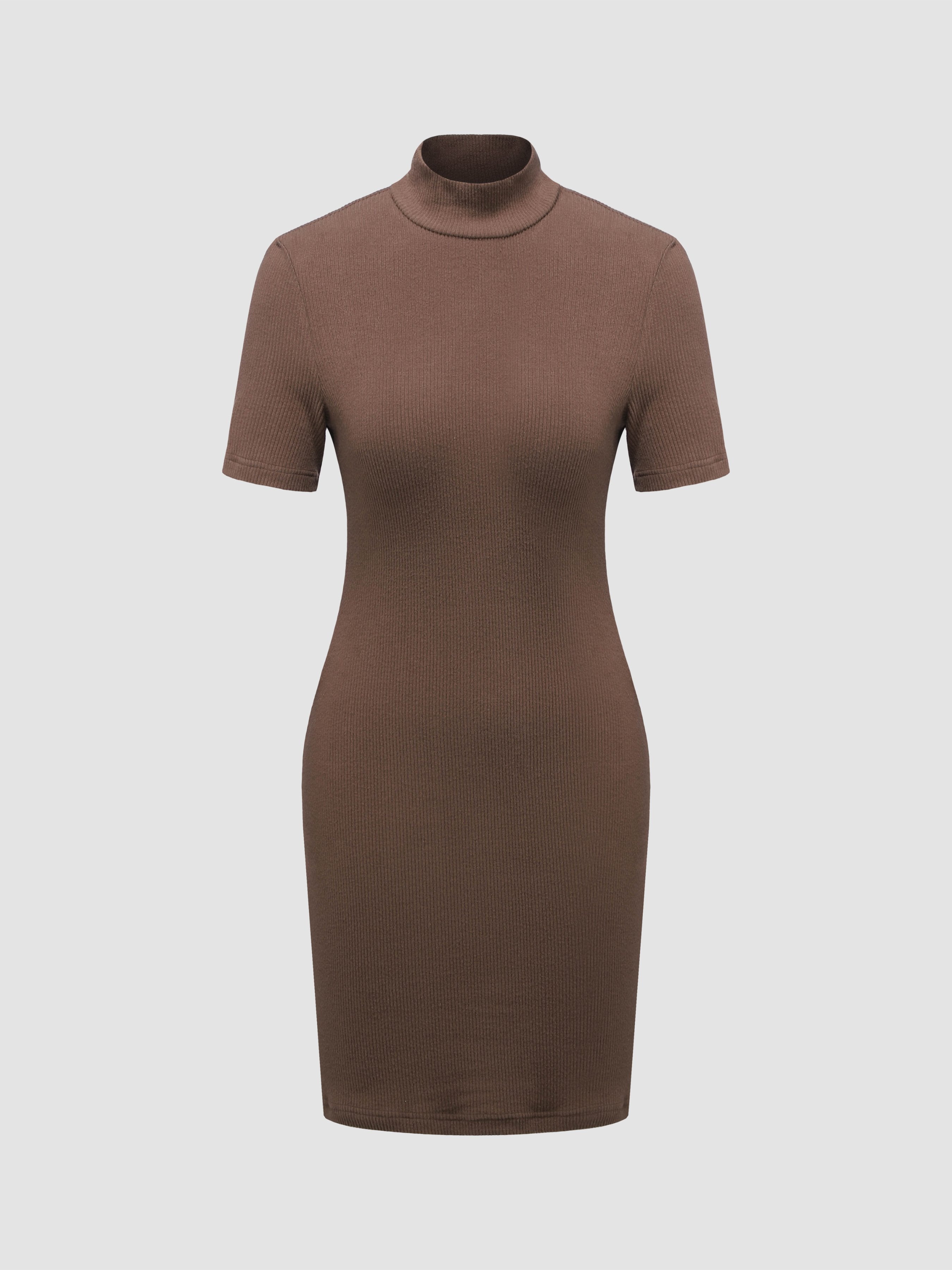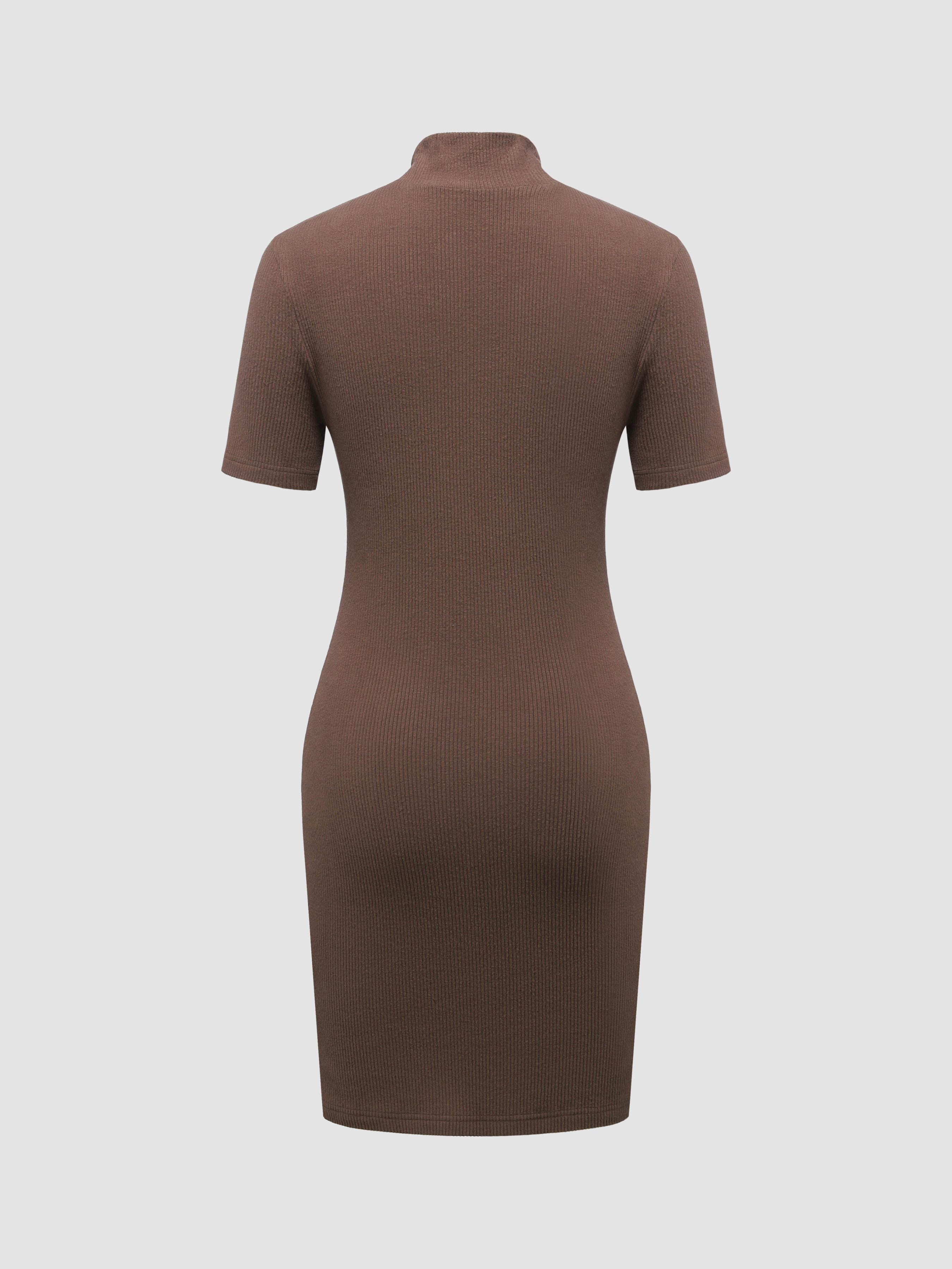- Crafted from ribbed knit fabric, the dress boasts a textured appearance and a form-fitting silhouette.