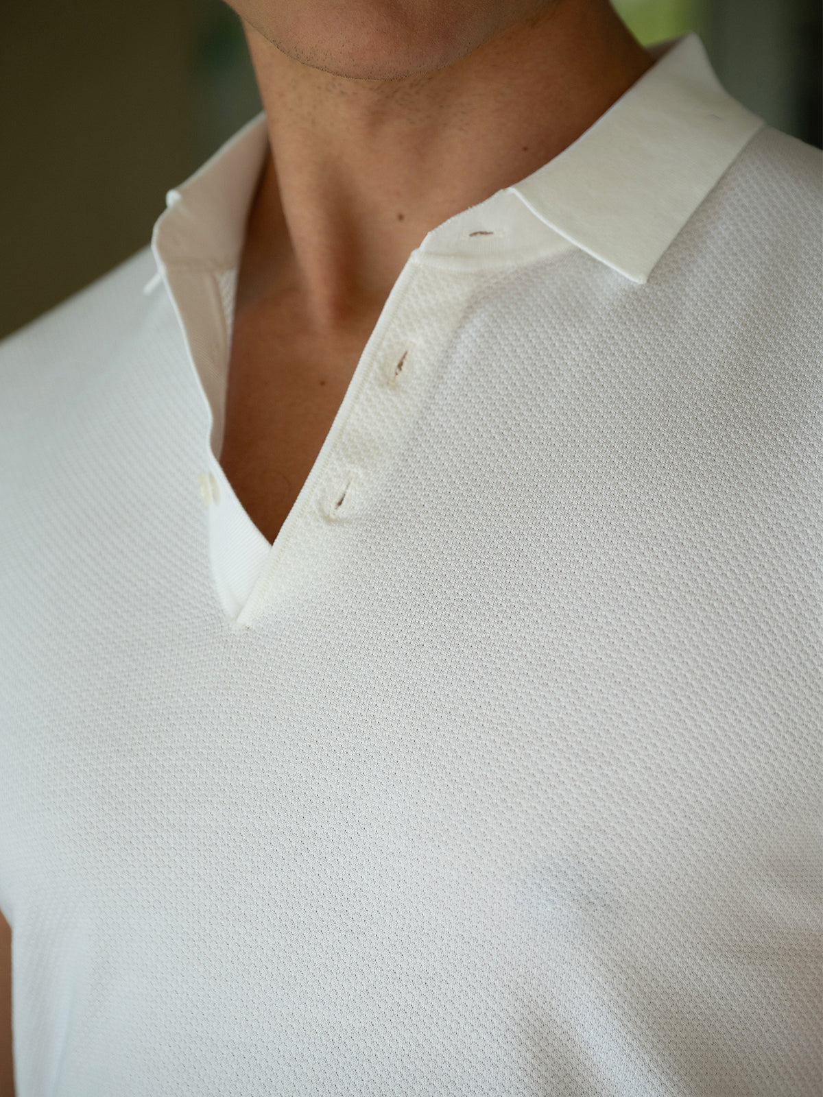 Silk Blend Short-Sleeved Knit Stretch Polo - Ahaselected