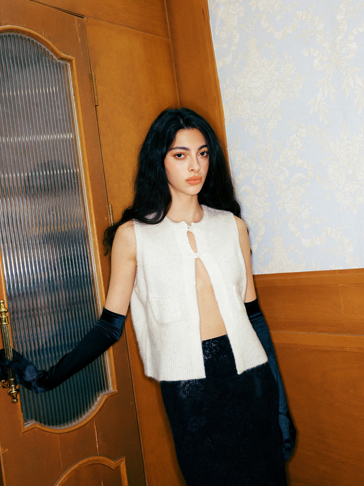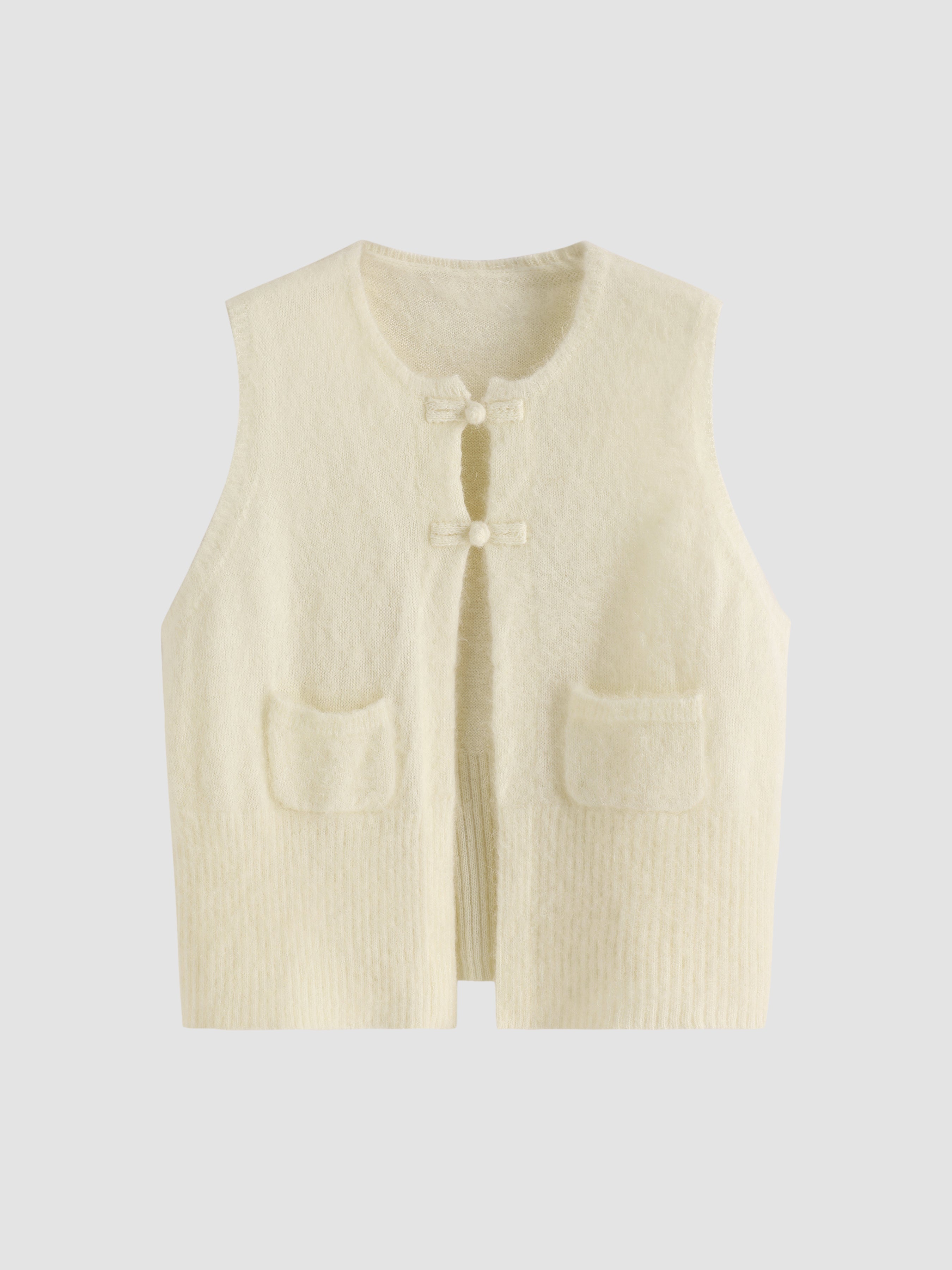 - Los cierres de botones de inspiración china añaden un toque de intriga y elevan este chaleco de informal a cautivador.