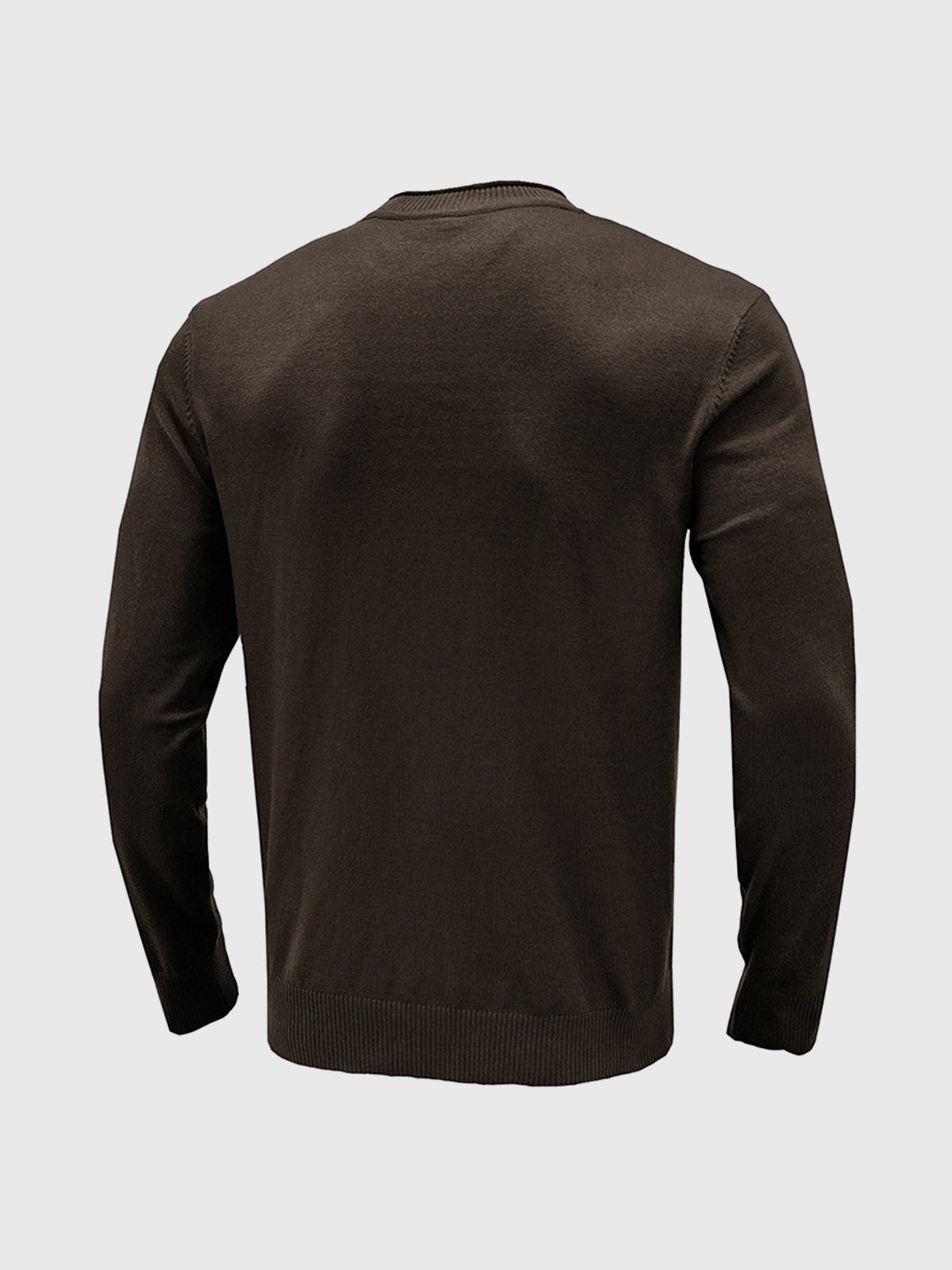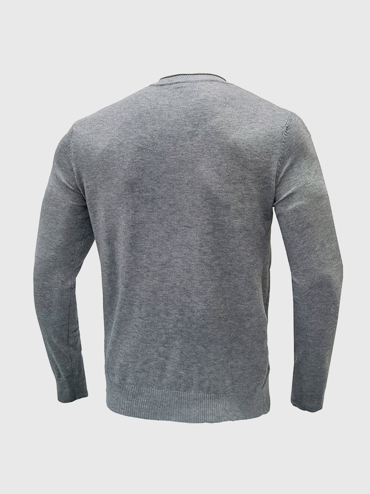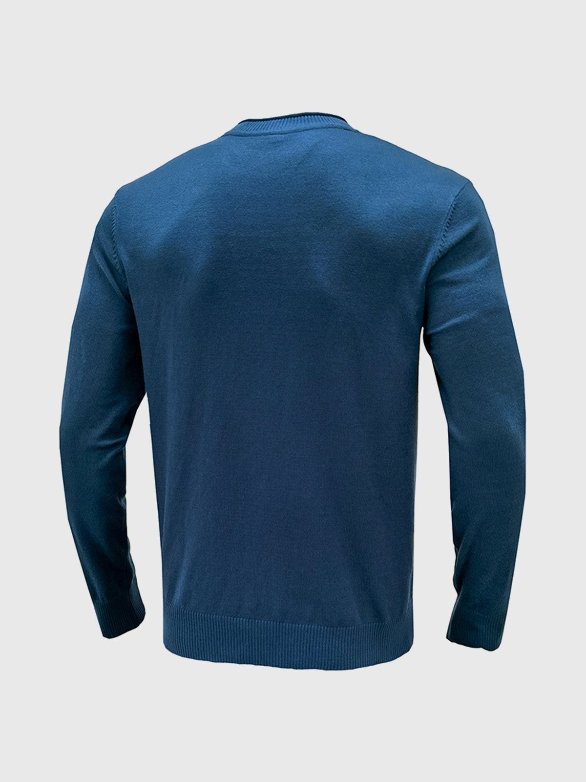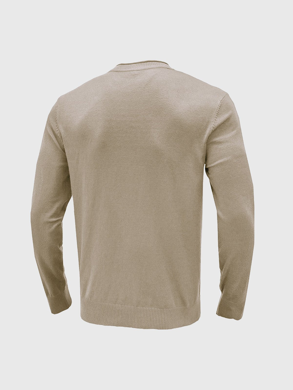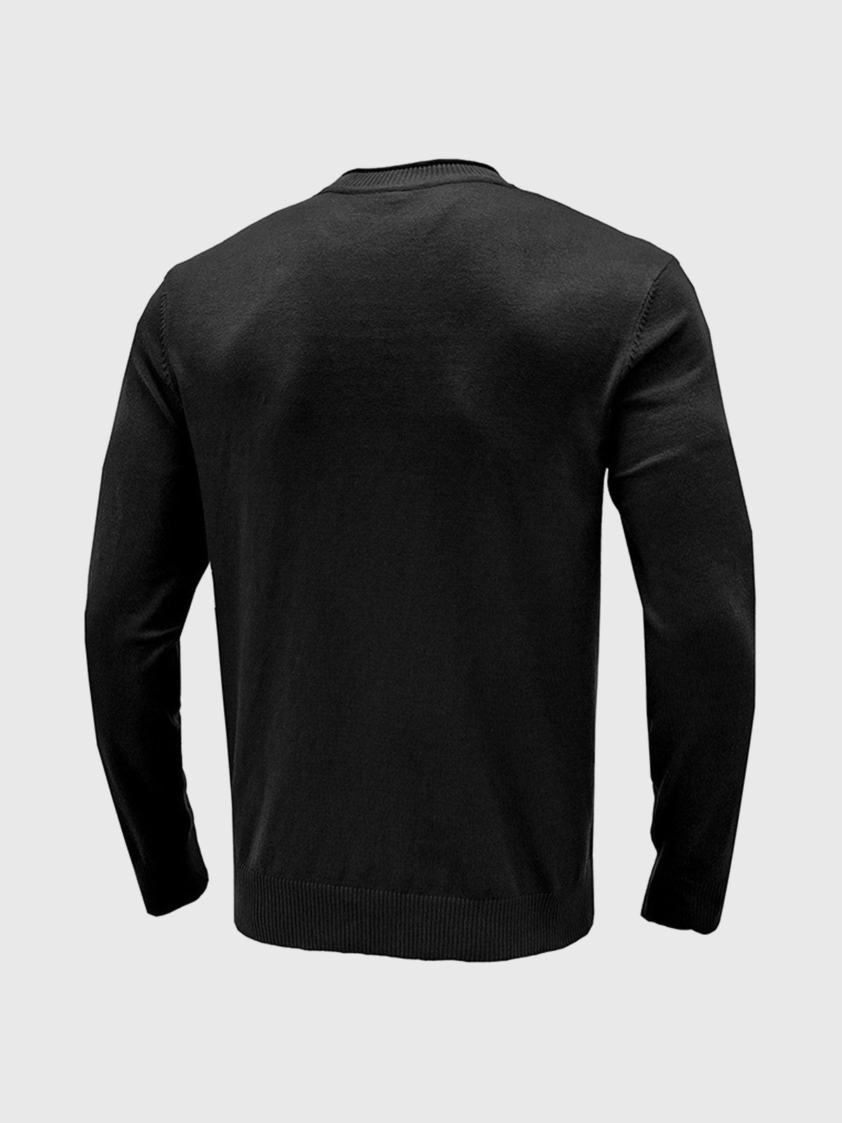 Este es un suéter de corte regular con parte inferior sólida y cuello, puños y dobladillo acanalados. Está fabricado con acrílico, poliéster y nailon. Confeccionado con hilo de cobertura de 12 agujas, de alta densidad para mayor calidez.