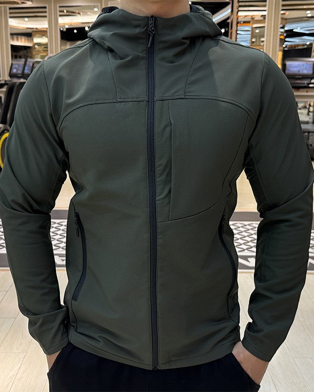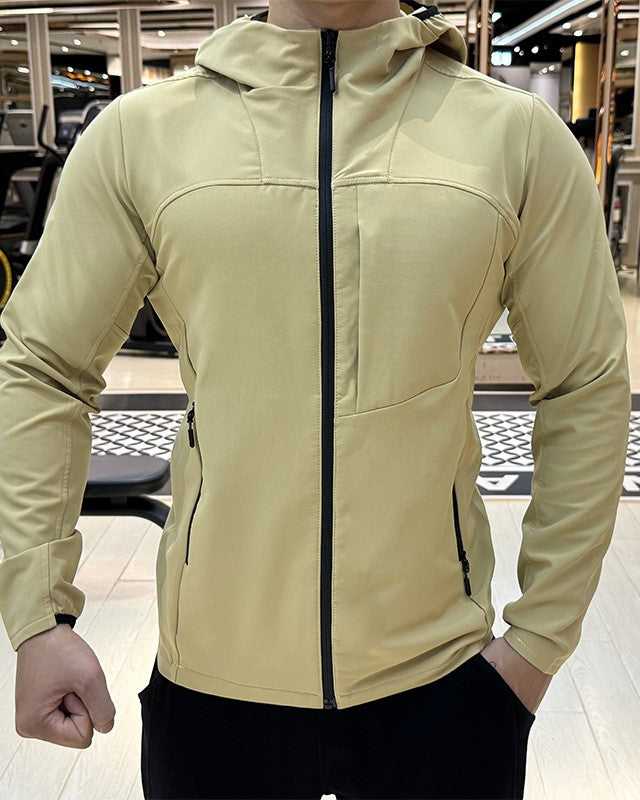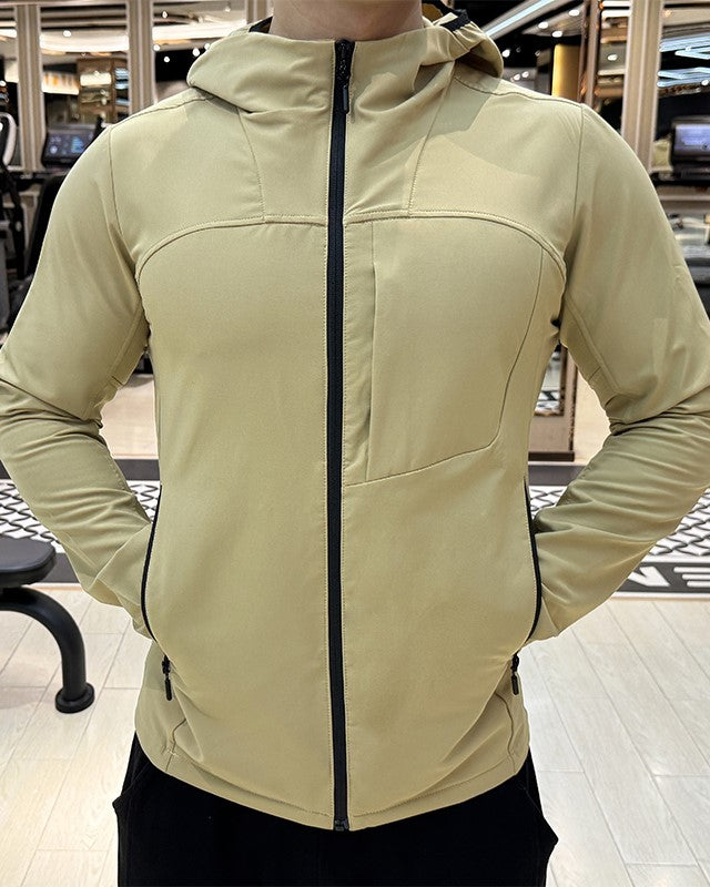 This jacket is designed to allow you to seamlessly transition from outdoor excursions to urban environments without missing a beat. The jacket's thoughtful ergonomic seam design ensures unrestricted movement, making it ideal for active pursuits. Two zippered side pockets offer secure storage for your essentials, while the chest area's clean design maintains a sleek, streamlined look. Engineered with high-performance fabrics to achieve water and wind repellent. The jacket exudes a classic, neutral aesthetic that pairs effortlessly with any outfit, transitioning seamlessly from outdoor adventures to casual urban wear.