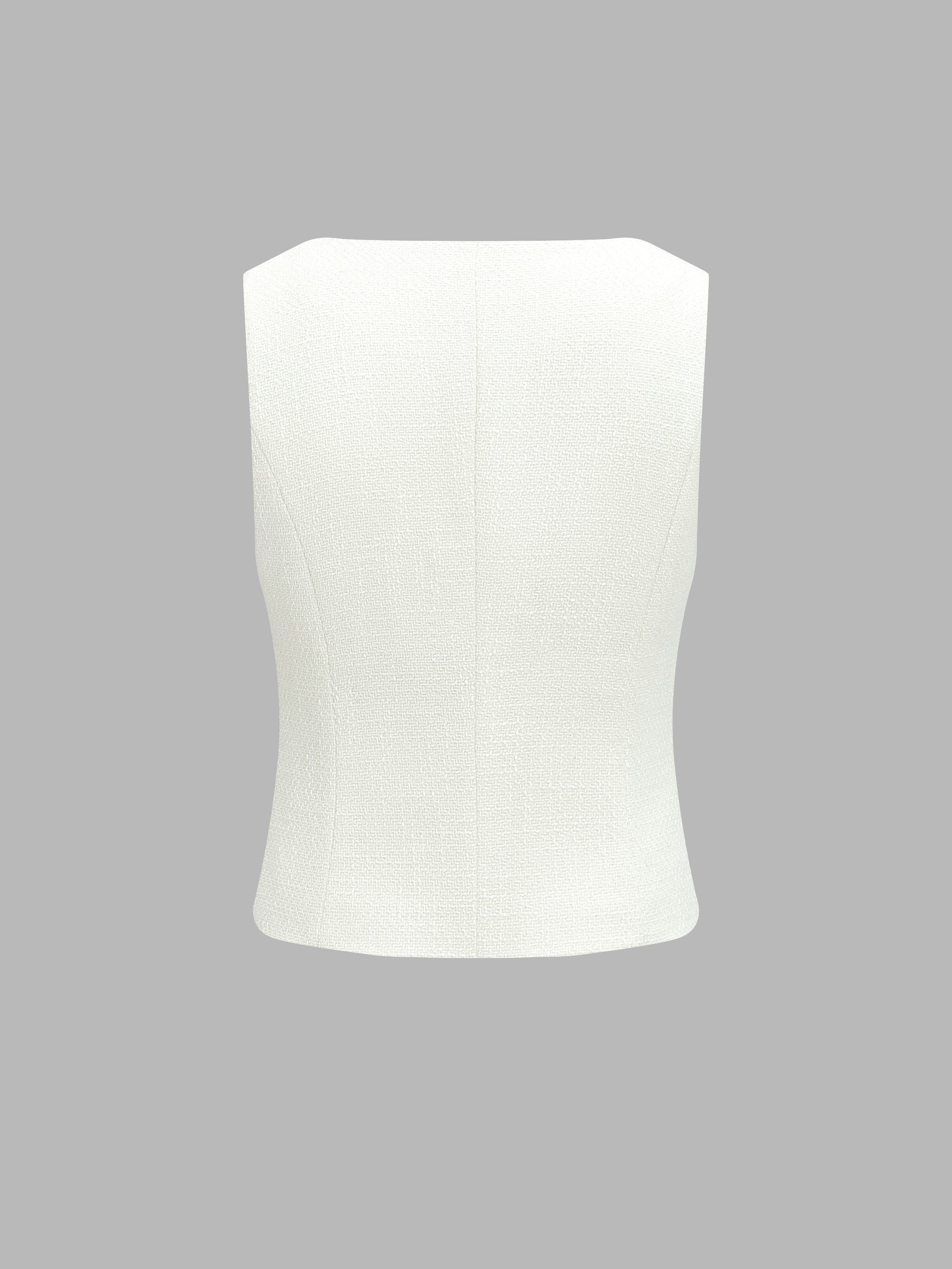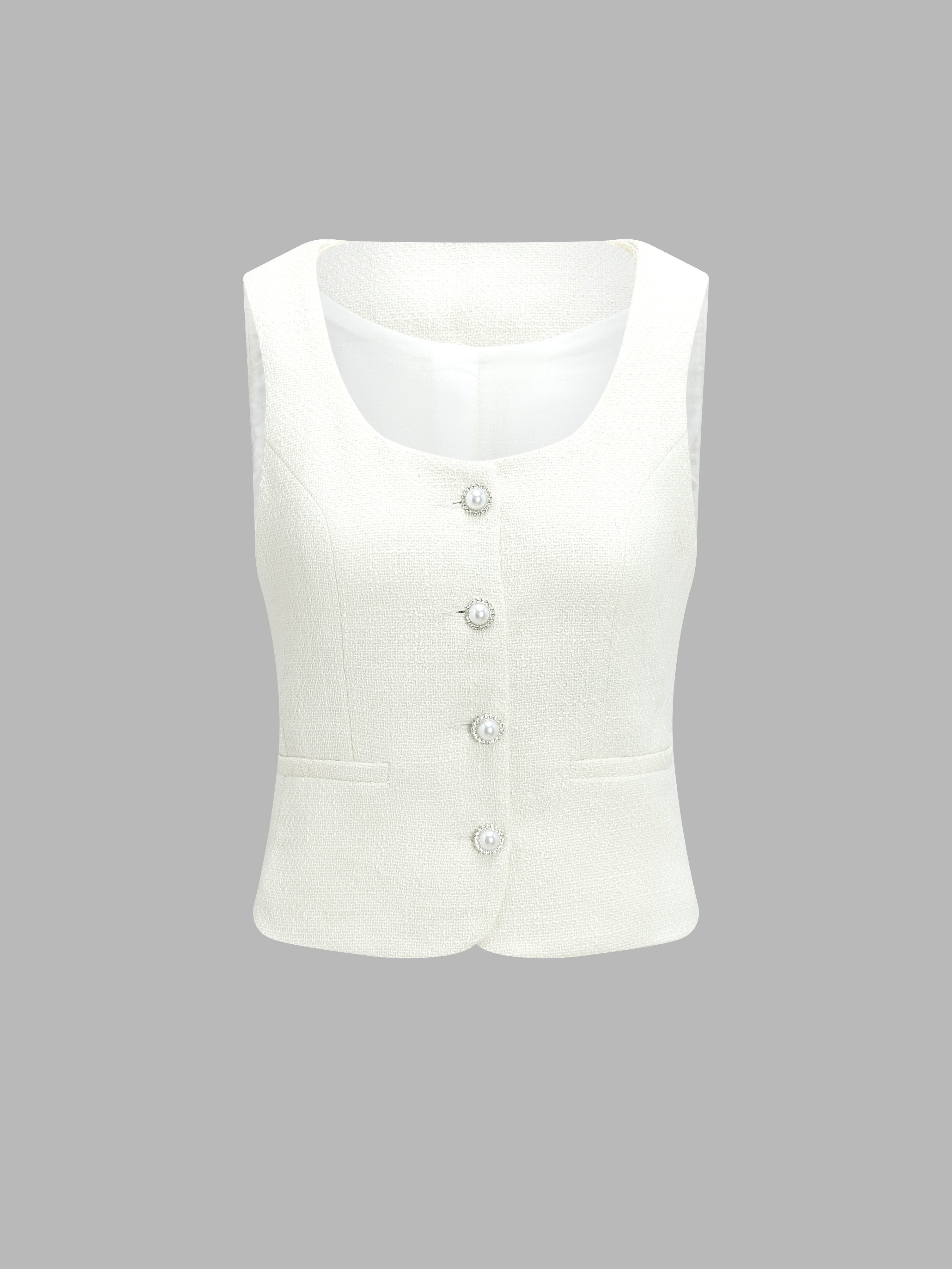 - The vest-style top features functional horizontal slit pockets, adding a touch of practicality to the overall design.