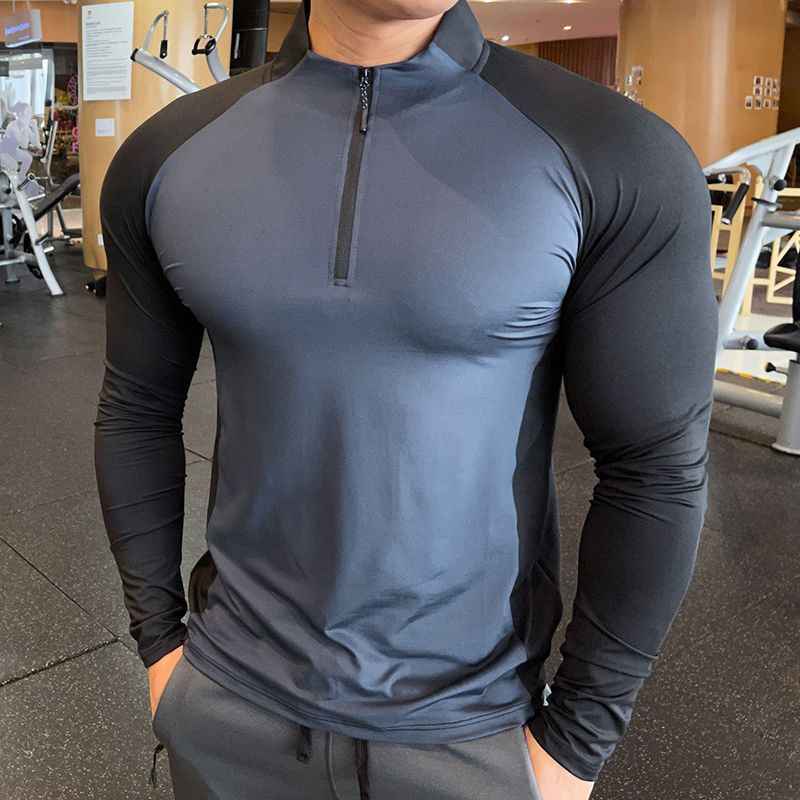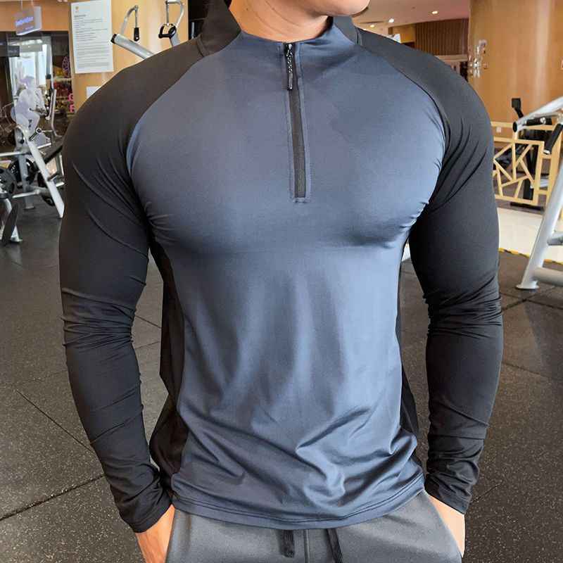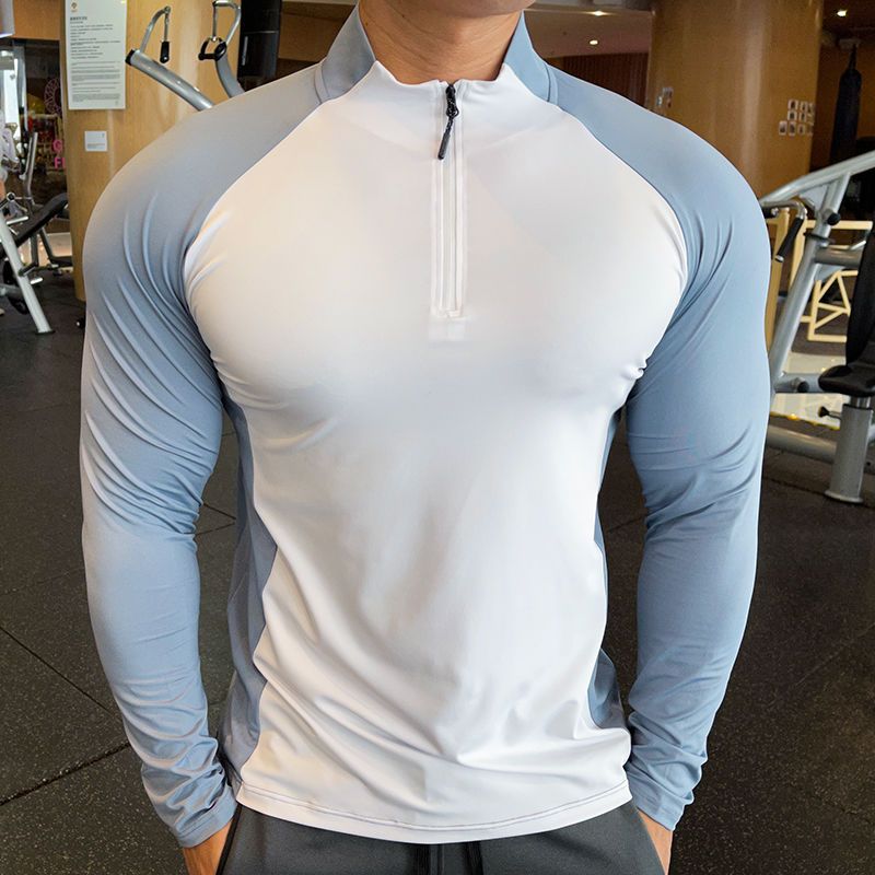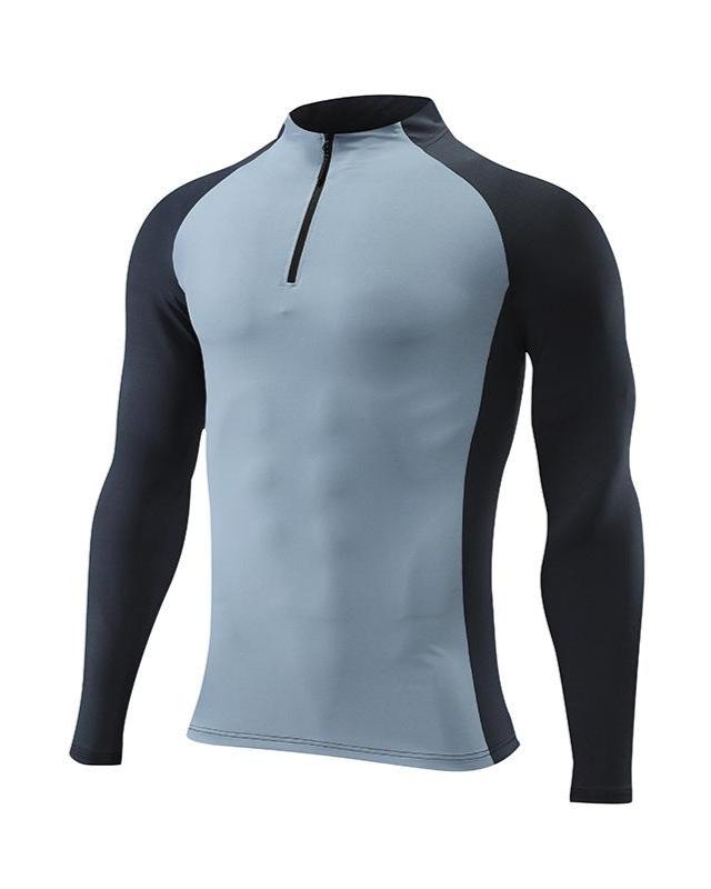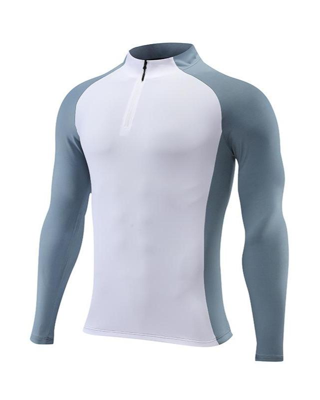 Camiseta de manga larga de alto rendimiento con cremallera de un cuarto de dos tonos