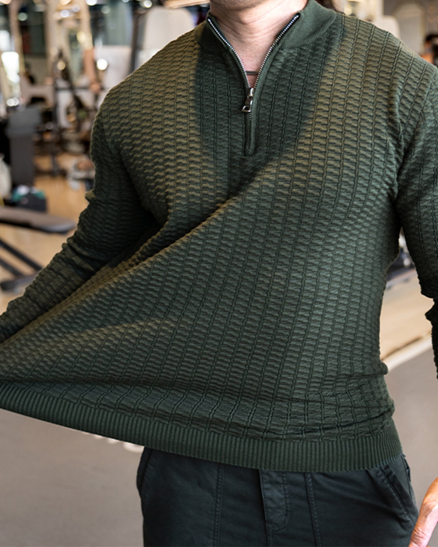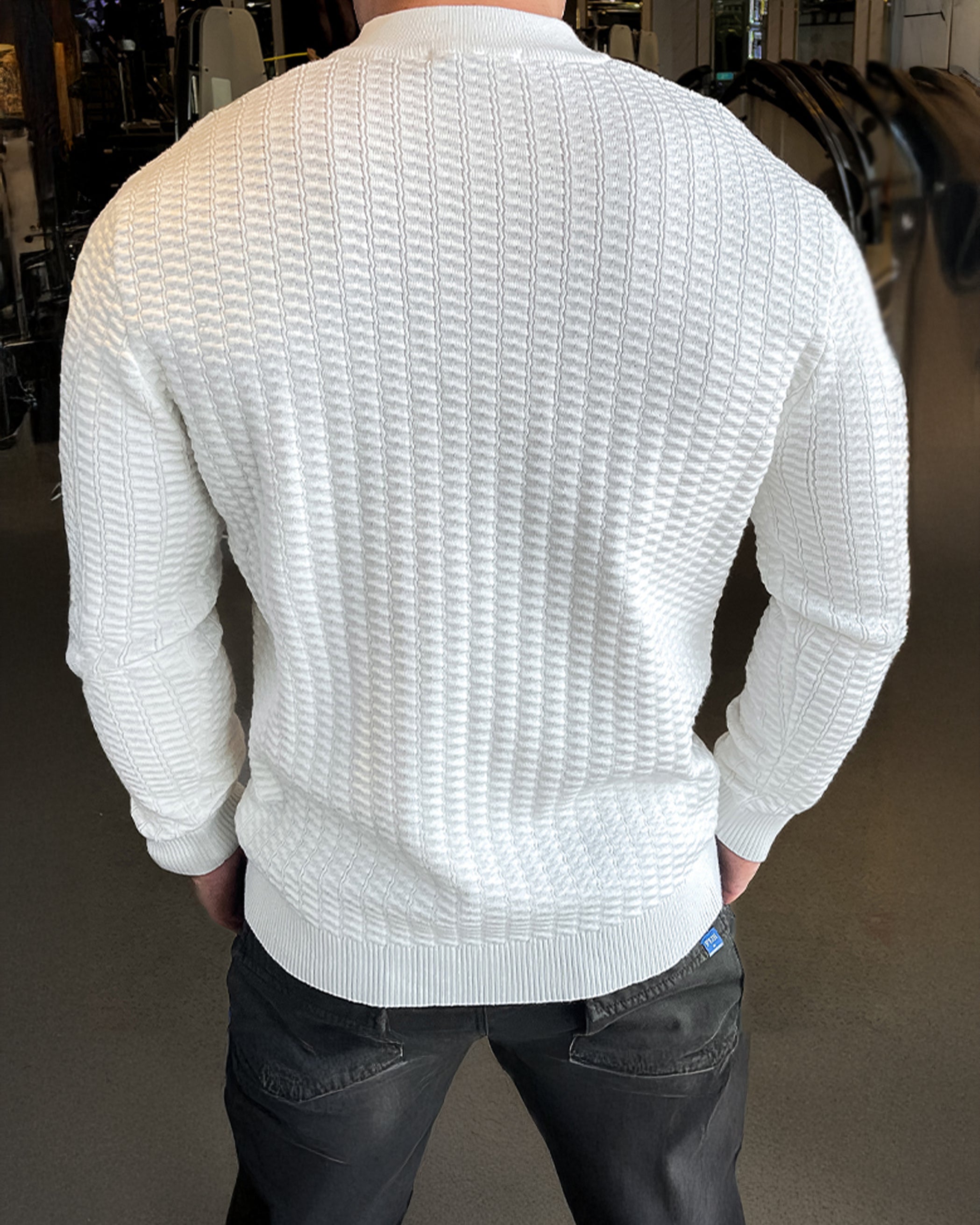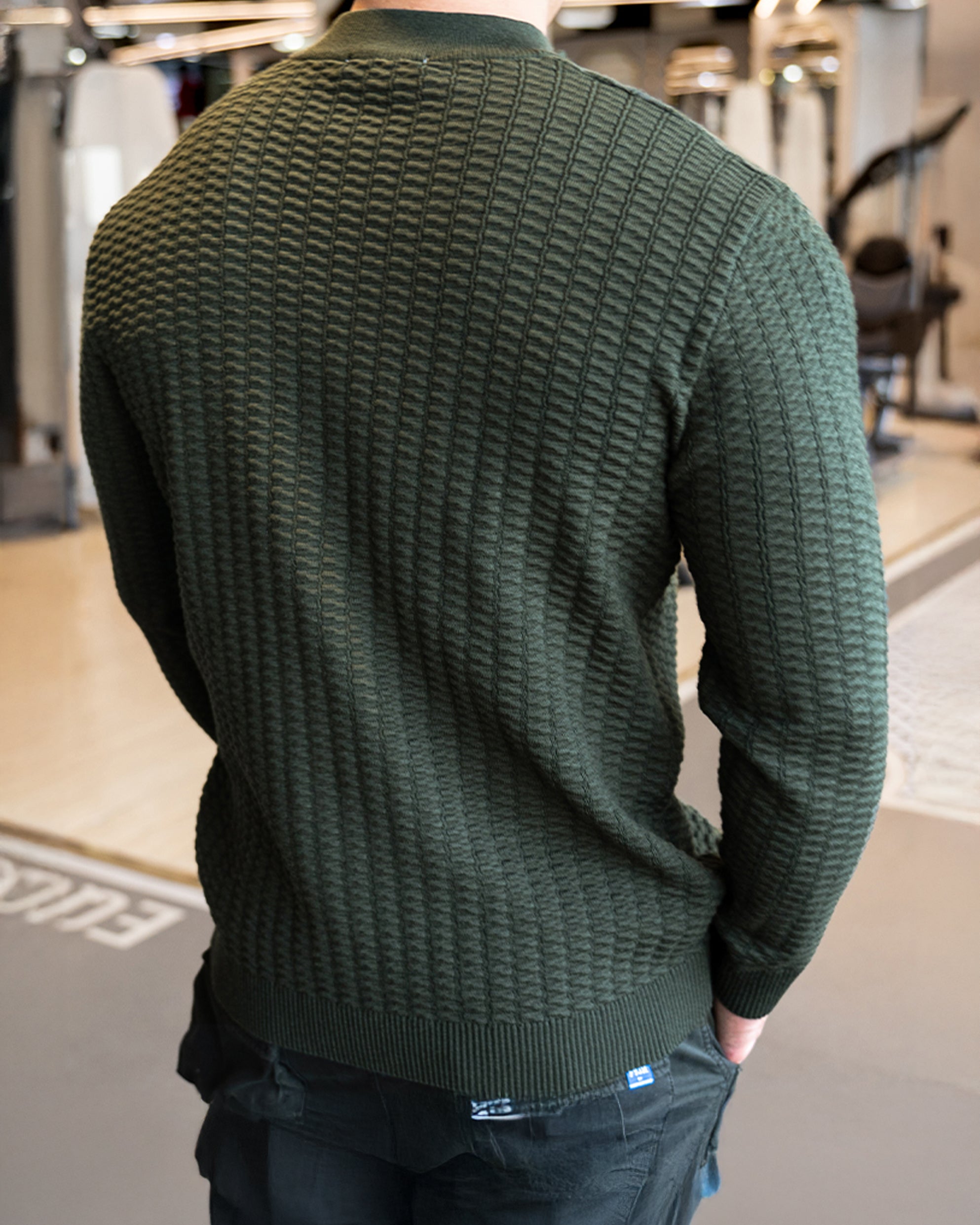 Sofisticación, estilo y comodidad, todo en uno. Con su exclusivo patrón de punto de trigo, te distingues del resto con un estilo sutil y sofisticado. Su diseño minimalista te permite combinarlo con otras prendas. Su exclusiva y compleja combinación de tres tejidos garantiza transpirabilidad, elasticidad y comodidad durante todo el día. El jersey presenta el clásico diseño de cuello redondo con cuello, puños y bajo acanalados para una silueta más refinada.