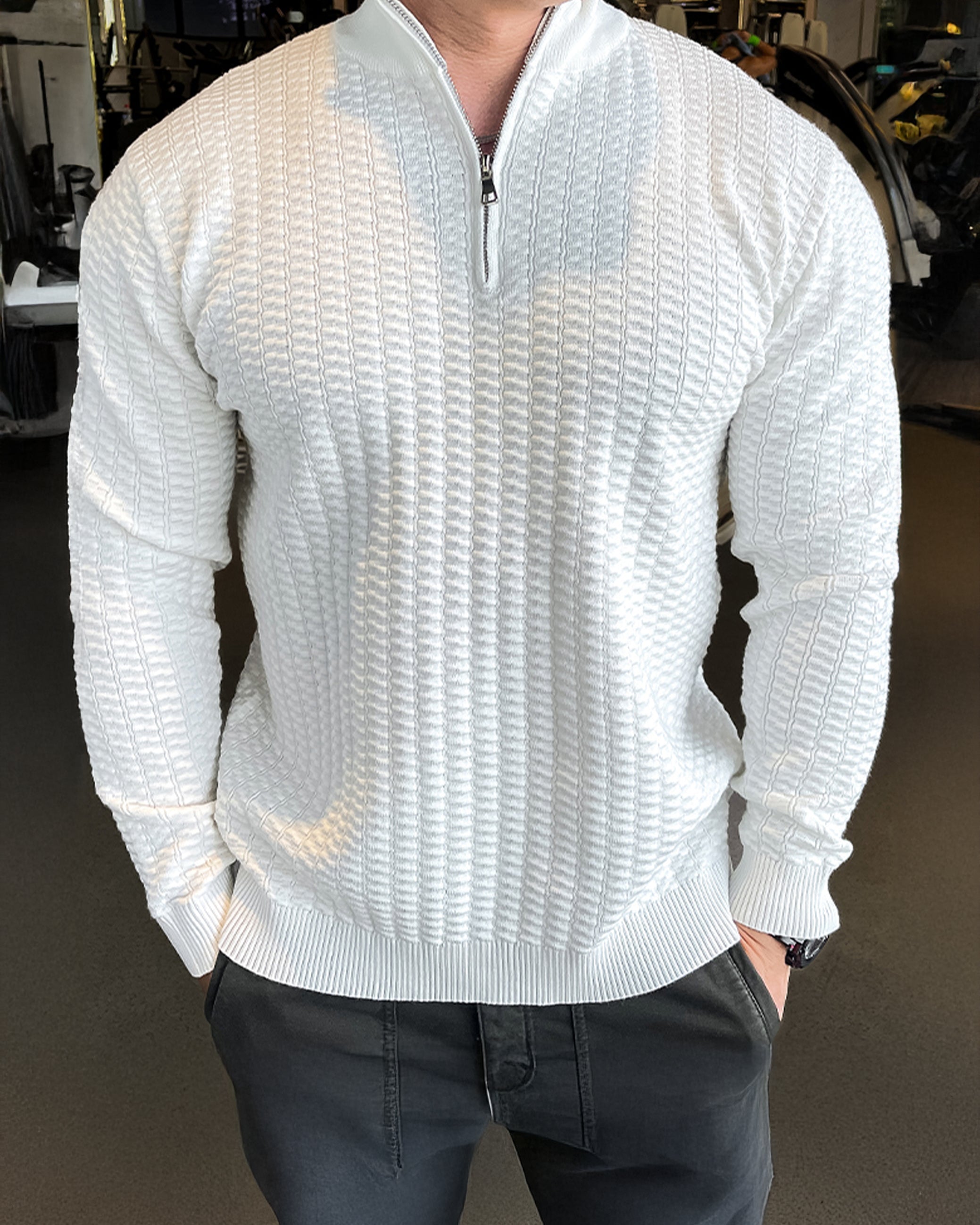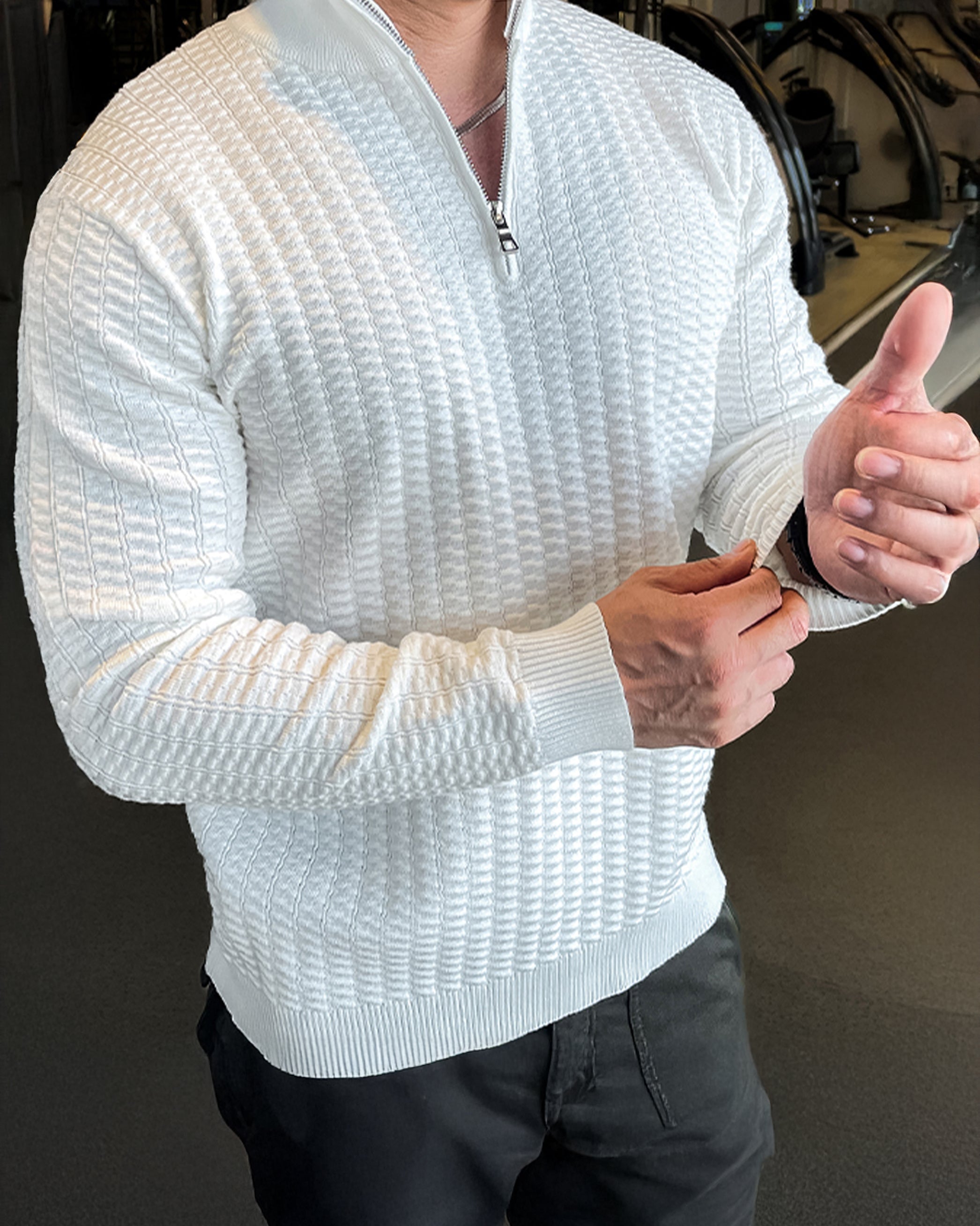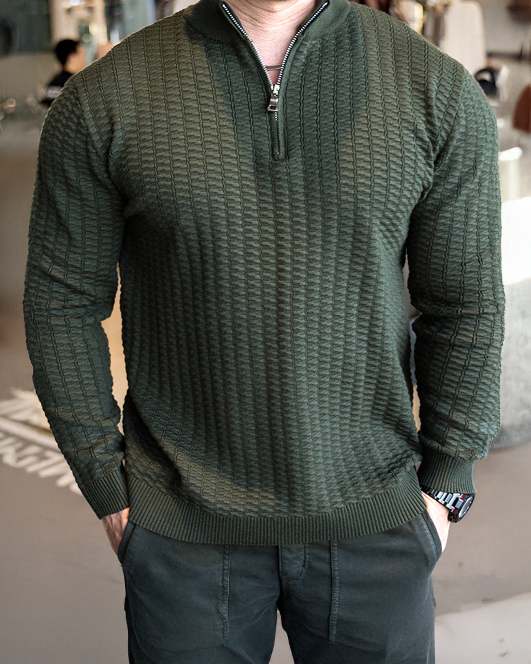 Sofisticación, estilo y comodidad, todo en uno. Con su exclusivo patrón de punto de trigo, te distingues del resto con un estilo sutil y sofisticado. Su diseño minimalista te permite combinarlo con otras prendas. Su exclusiva y compleja combinación de tres tejidos garantiza transpirabilidad, elasticidad y comodidad durante todo el día. El jersey presenta el clásico diseño de cuello redondo con cuello, puños y bajo acanalados para una silueta más refinada.