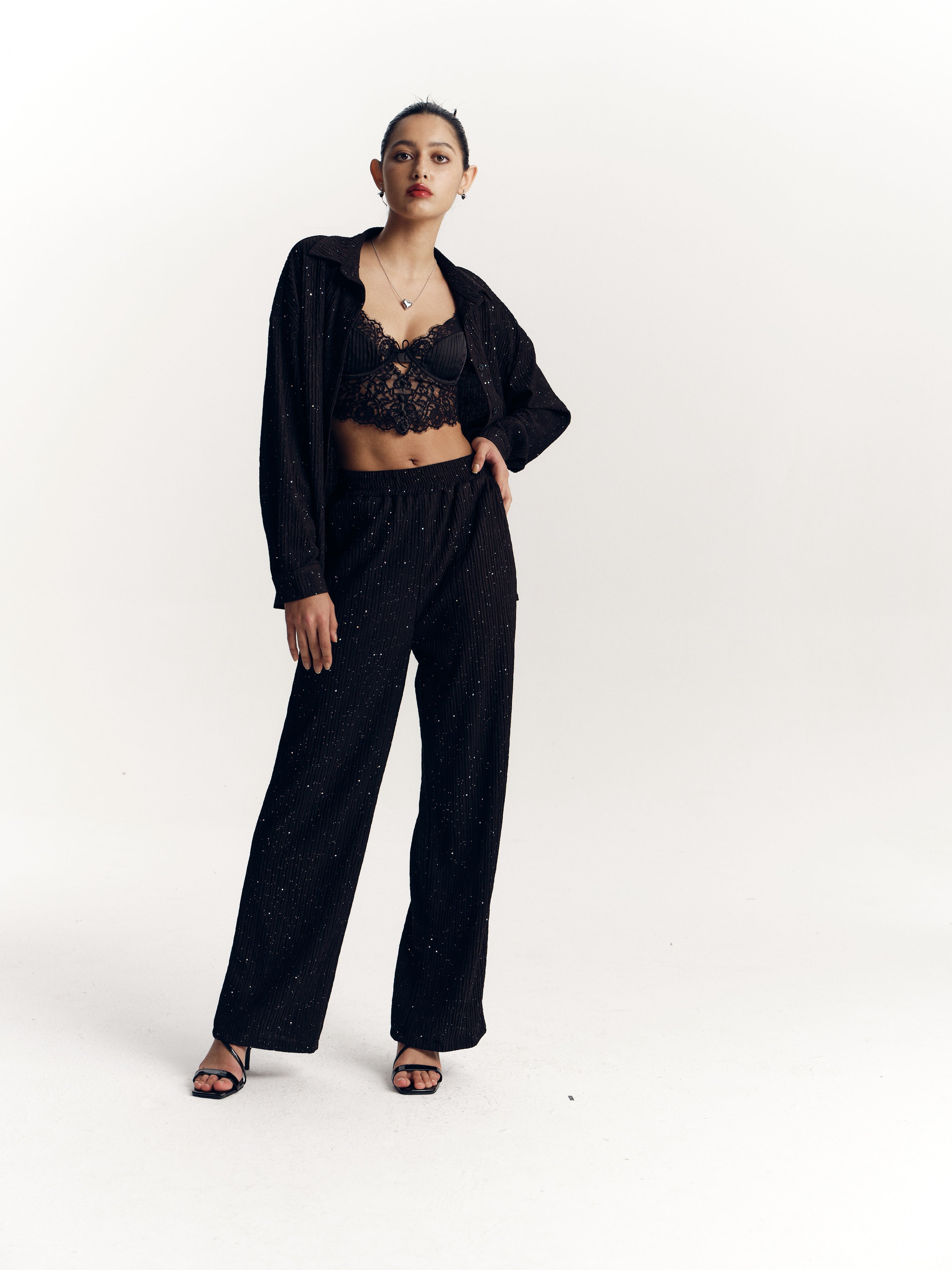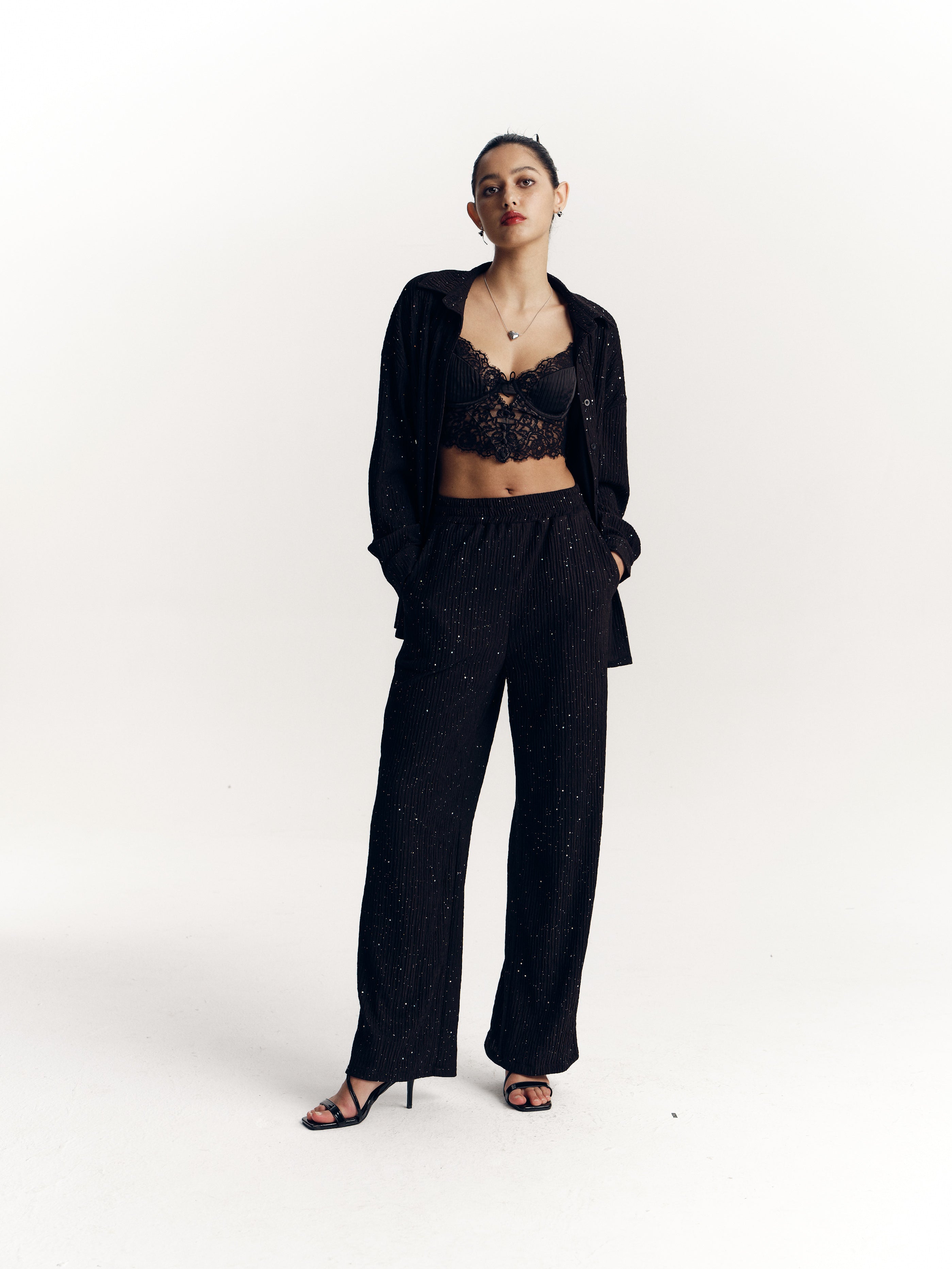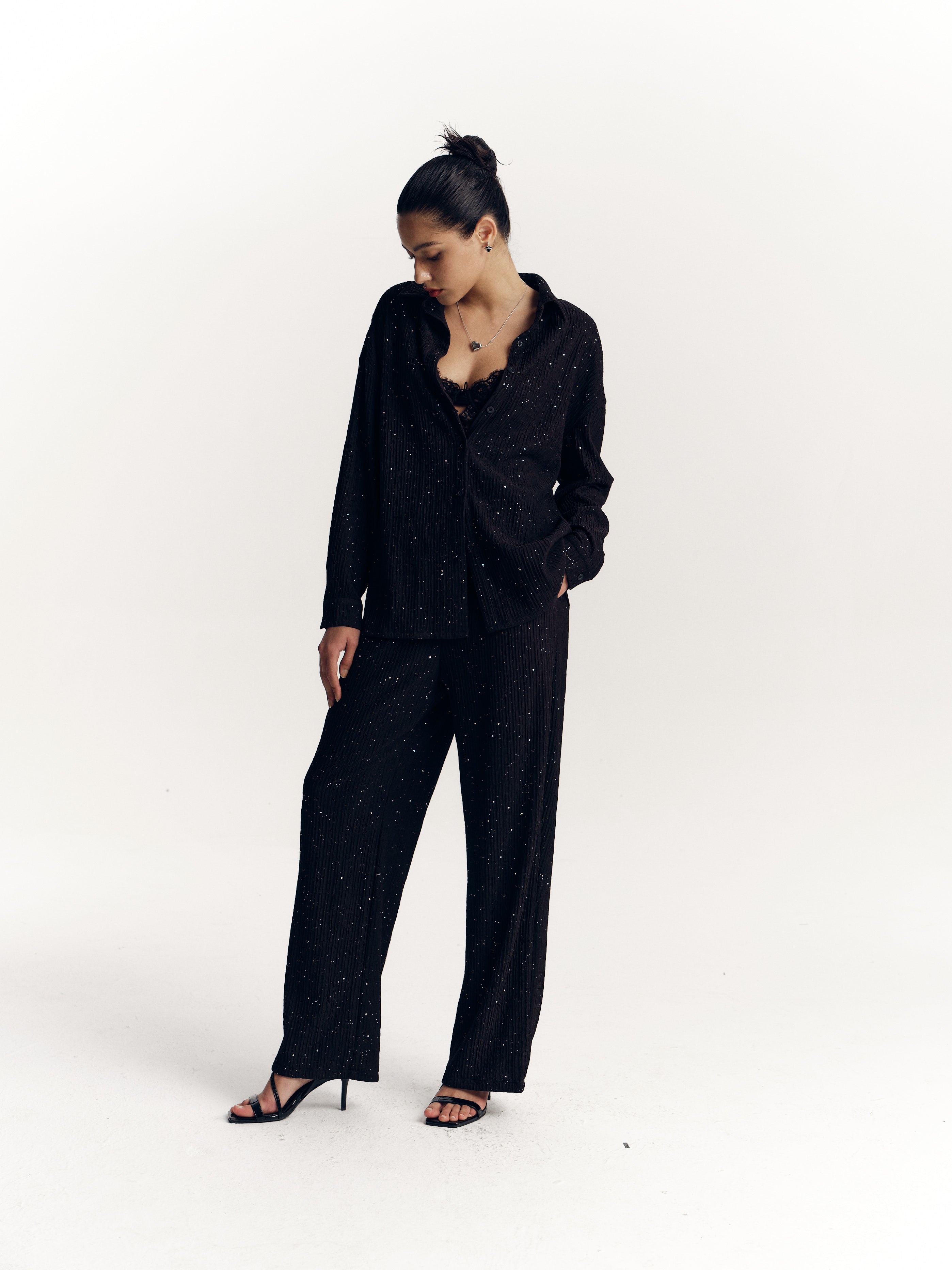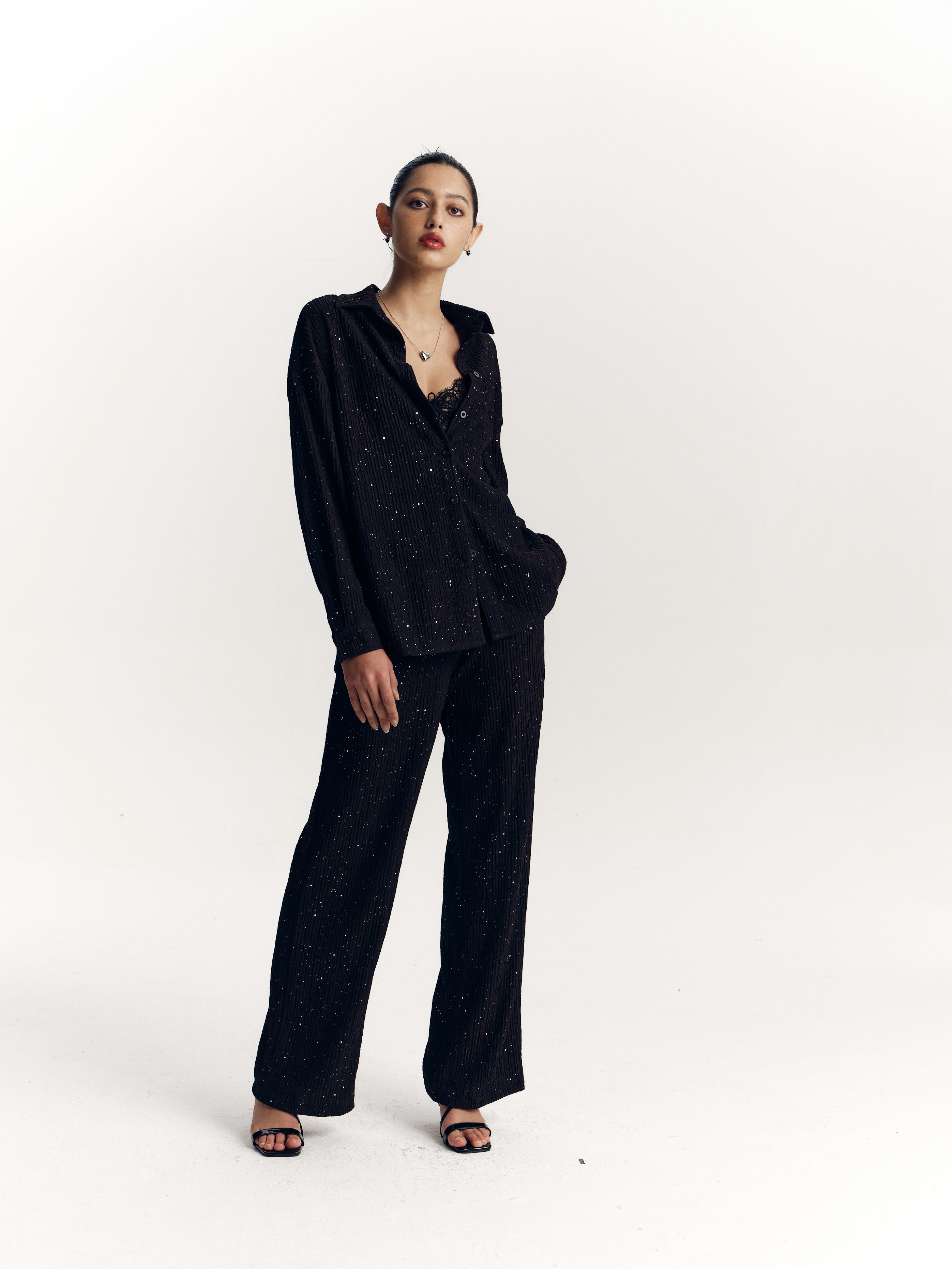 Camisa extragrande con lentejuelas texturizadas para mujer