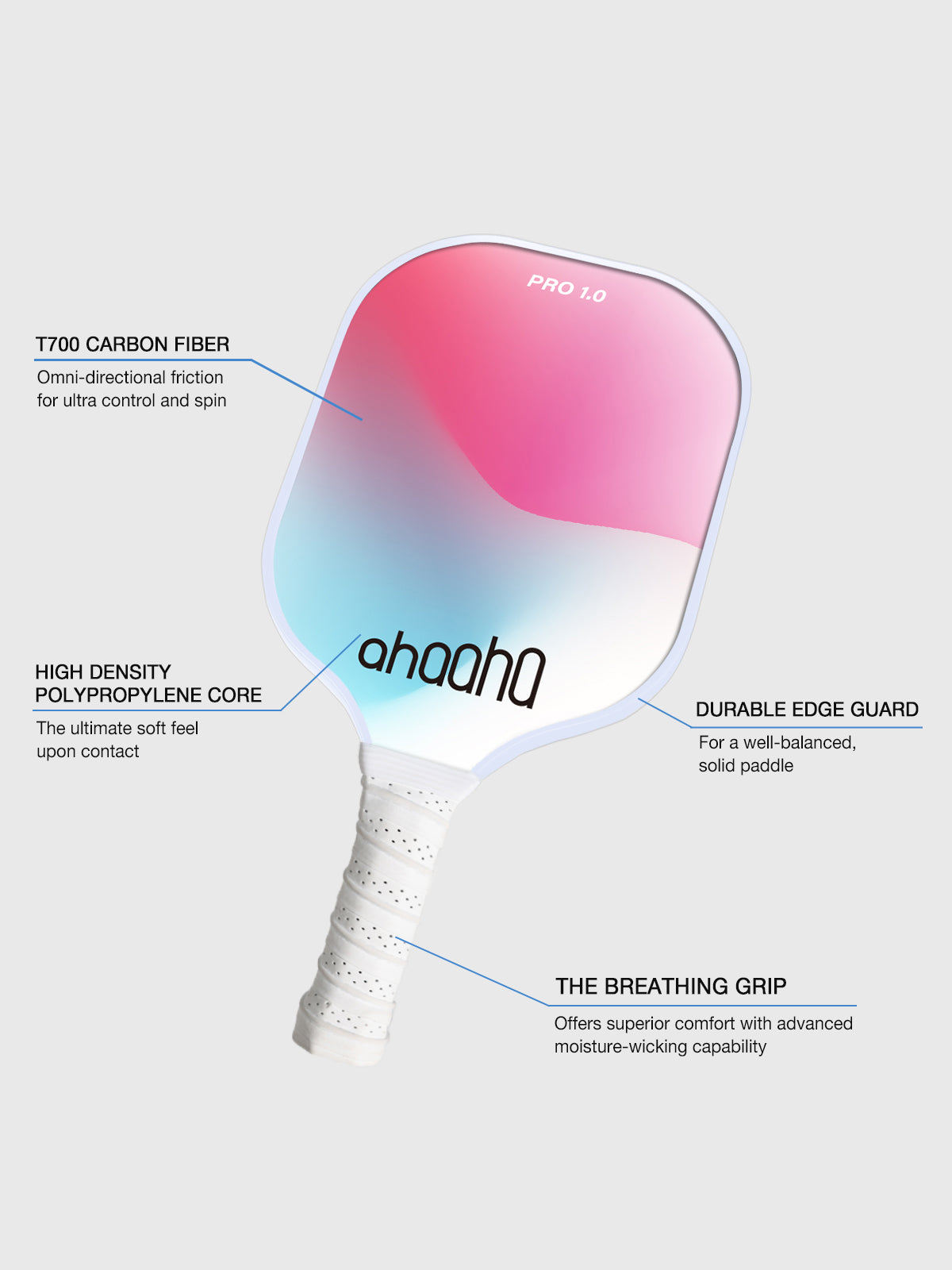 The AHA PRO 1.0 Pickleball Paddle is a powerful and precise paddle designed for advanced players who are looking for an edge on the court. The paddle is made with T700 carbon fiber and a Unibody design, which provides unmatched strength, durability, and responsiveness. The bi-directional, cross-weave carbon fiber technology delivers a larger sweet spot, longer resonance, and consistent spin. The advanced textured surface also increases spin, allowing you to hit more powerful and accurate shots.