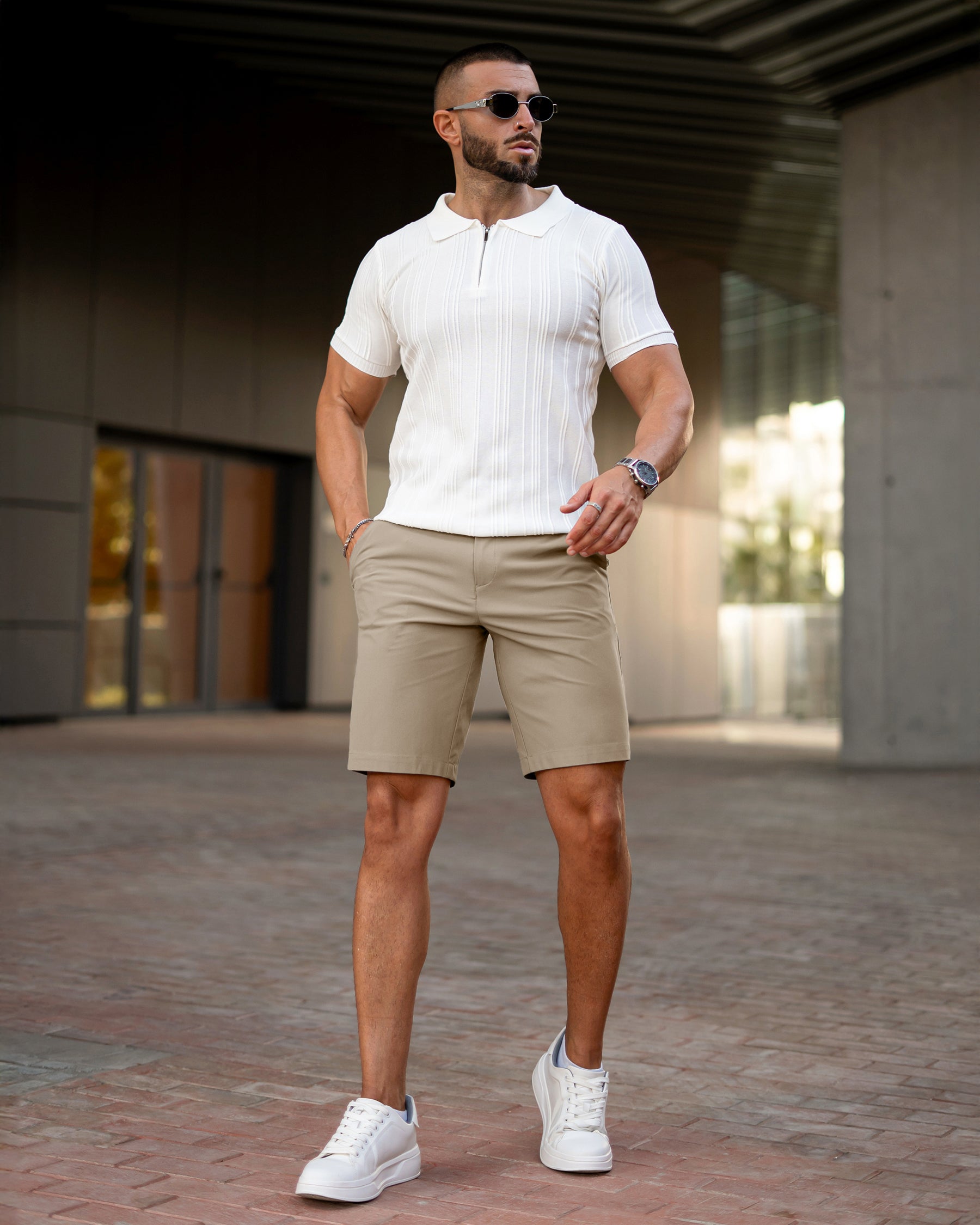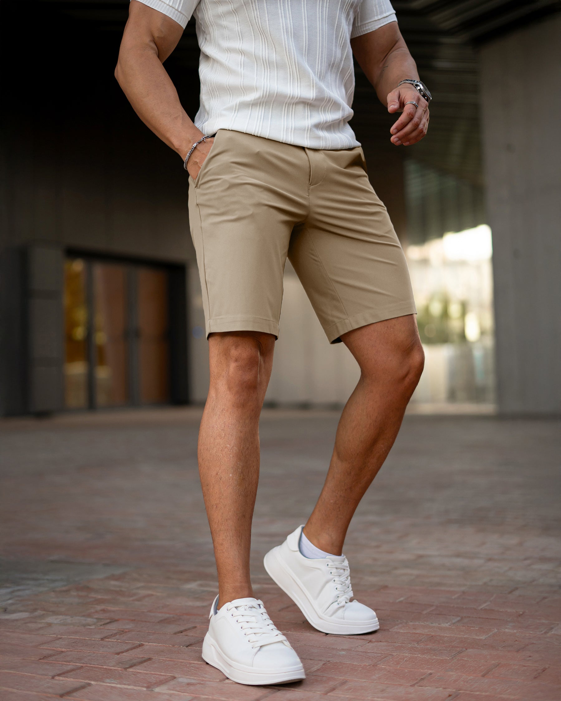 Meet the All Day Elite Casual Chino Shorts — where laid-back comfort meets elevated everyday style. Designed with a modern athletic fit that celebrates your build, these shorts offer a clean, tapered silhouette without squeezing your thighs. Perfect for weekend lounging or casual days out, they’re made to move with you and keep up with your pace.