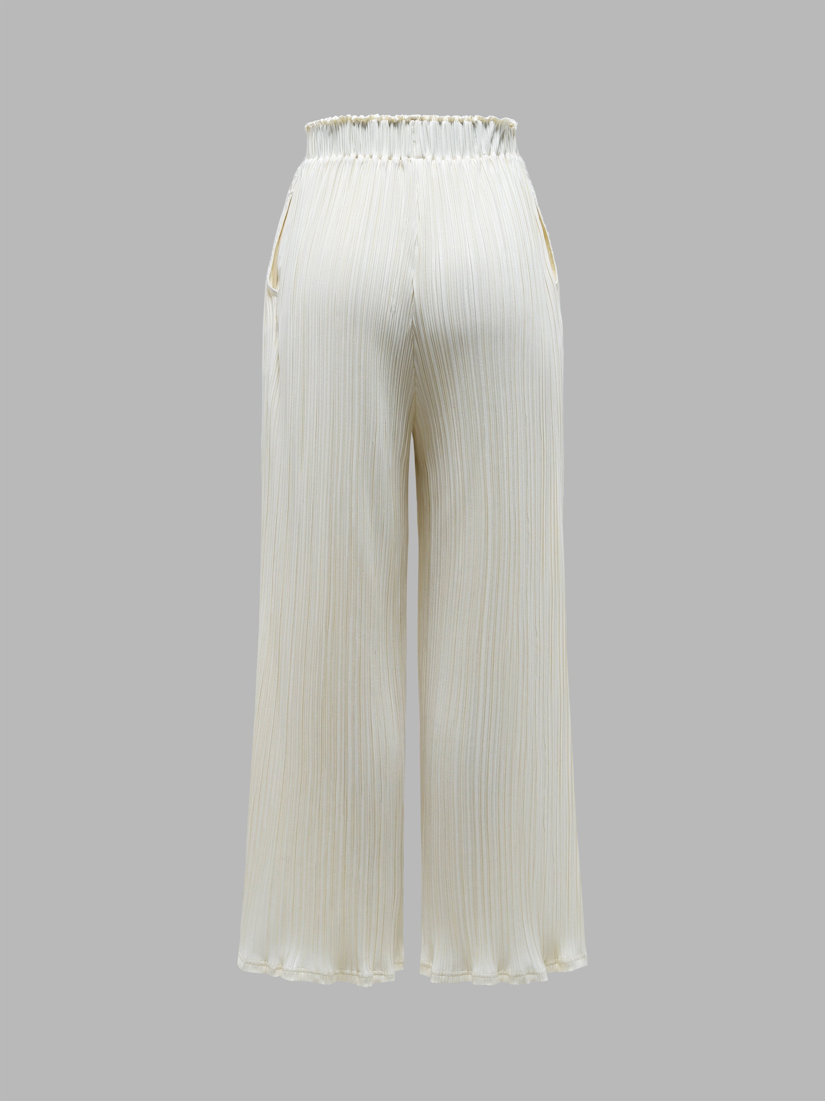 Comfy Elastic Waist Pleated Wide Leg Pants