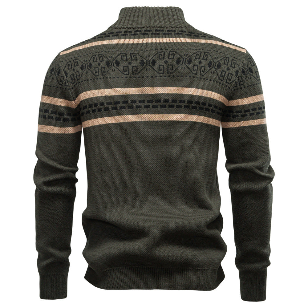 Add a touch of classic charm and modern comfort to your wardrobe with this Nordic-inspired zip cardigan. Crafted from a soft cotton-blend knit, it provides breathable warmth and effortless style for everyday wear. The intricate geometric pattern across the chest and shoulders delivers a timeless, heritage look, while the full-zip design allows for easy layering. Perfect for cool-weather days, this cardigan combines cozy comfort with refined sophistication.