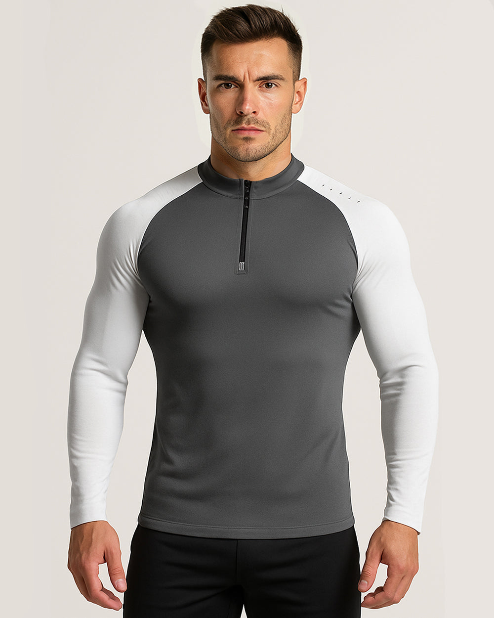• 3D cut half zip perfect neckline