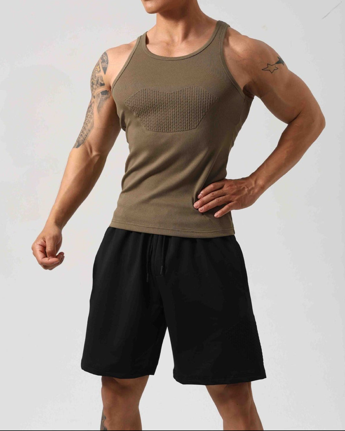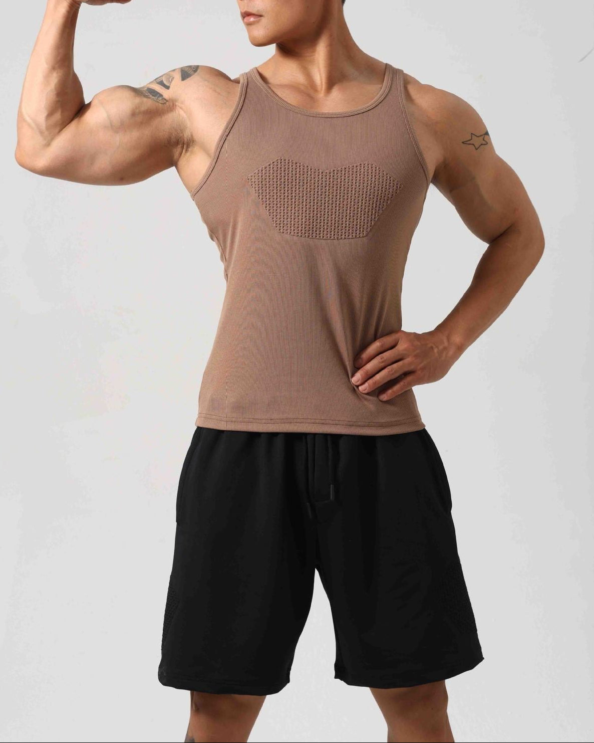 Designed for everyday comfort with a performance-inspired look, this ribbed tank top offers a soft, breathable feel with a flattering muscle fit. Crafted from a cotton-spandex blend, the fabric provides natural comfort with added stretch, while the textured ribbed design enhances durability and style. A ventilated chest panel improves airflow, making it perfect for workouts, casual wear, or layering.