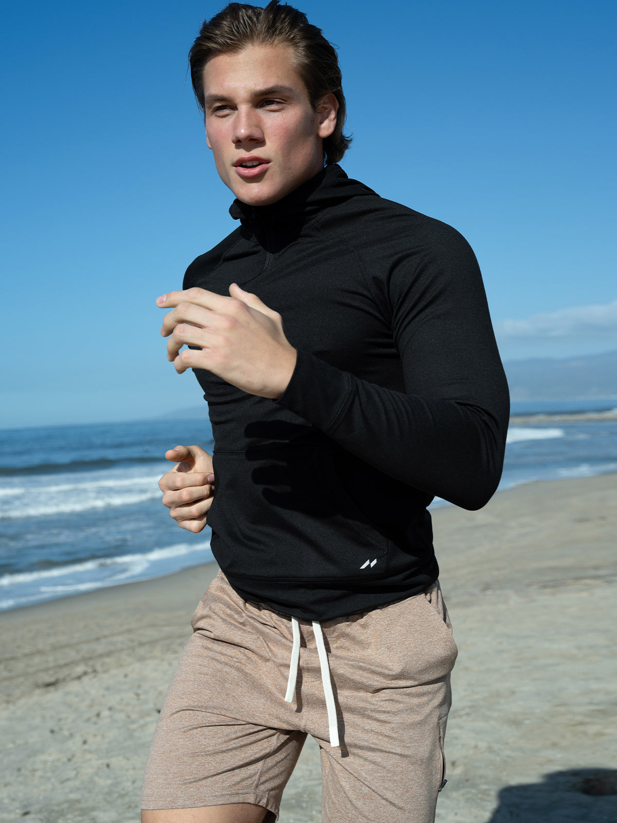 This men's hoodie was designed for cozy functionality. The four-way stretch fabric keeps you cool and mobile, while the roomy hood, kangaroo pocket, and half-zip closure add convenience. Durable stitching ensures the hoodie will provide lasting comfort whether lounging or on-the-go. With its soft feel and thoughtful details, this hoodie combines laidback style with practicality.