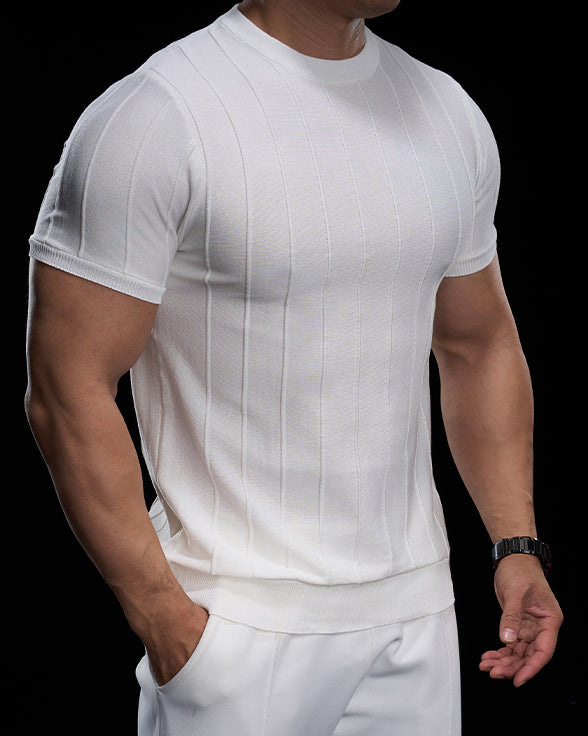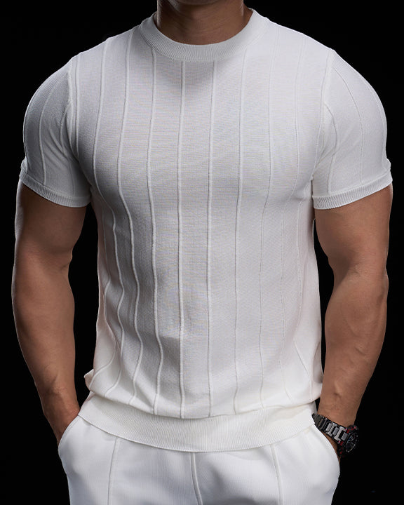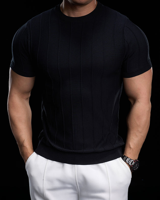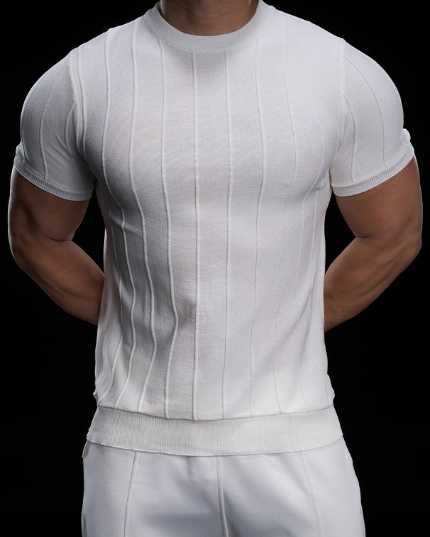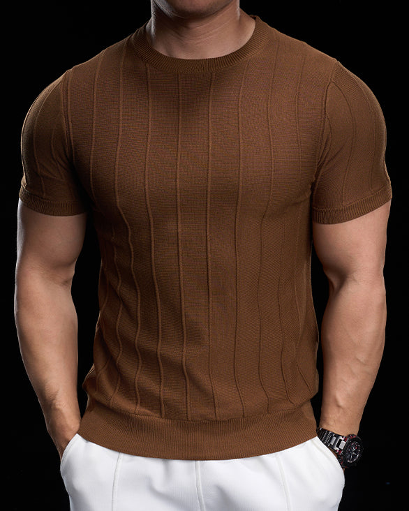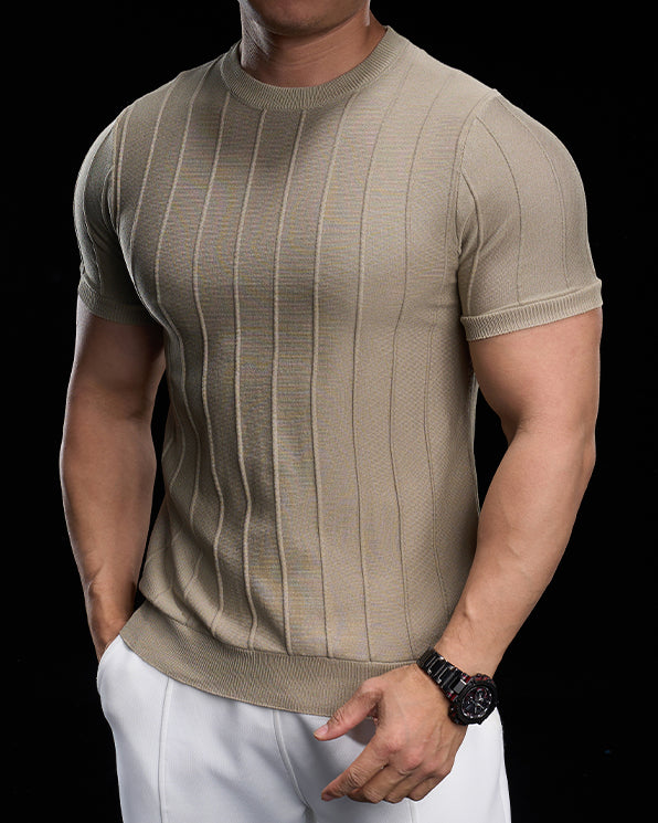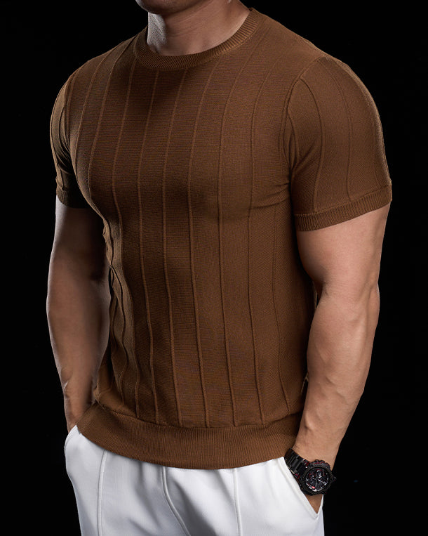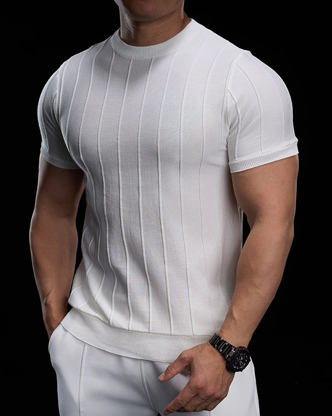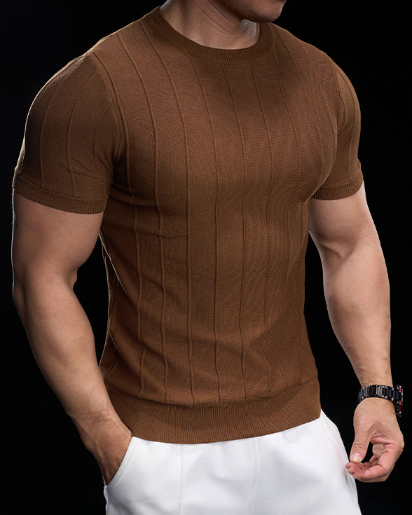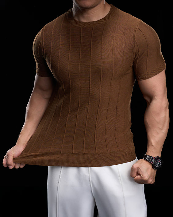 Le t-shirt ultra extensible qui rehausse votre sophistication, épouse votre corps et met en valeur votre silhouette ! La texture en tricot côtelé vertical offre une extensibilité encore plus grande et un intérêt visuel. Le design classique à col rond le rend adapté à un port seul ou en superposition. C'est la pièce parfaite pour un entraînement léger et toutes les activités quotidiennes décontractées, voire certains événements semi-formels. Ses tissus absorbants et à séchage rapide garantissent un confort tout au long de la journée.