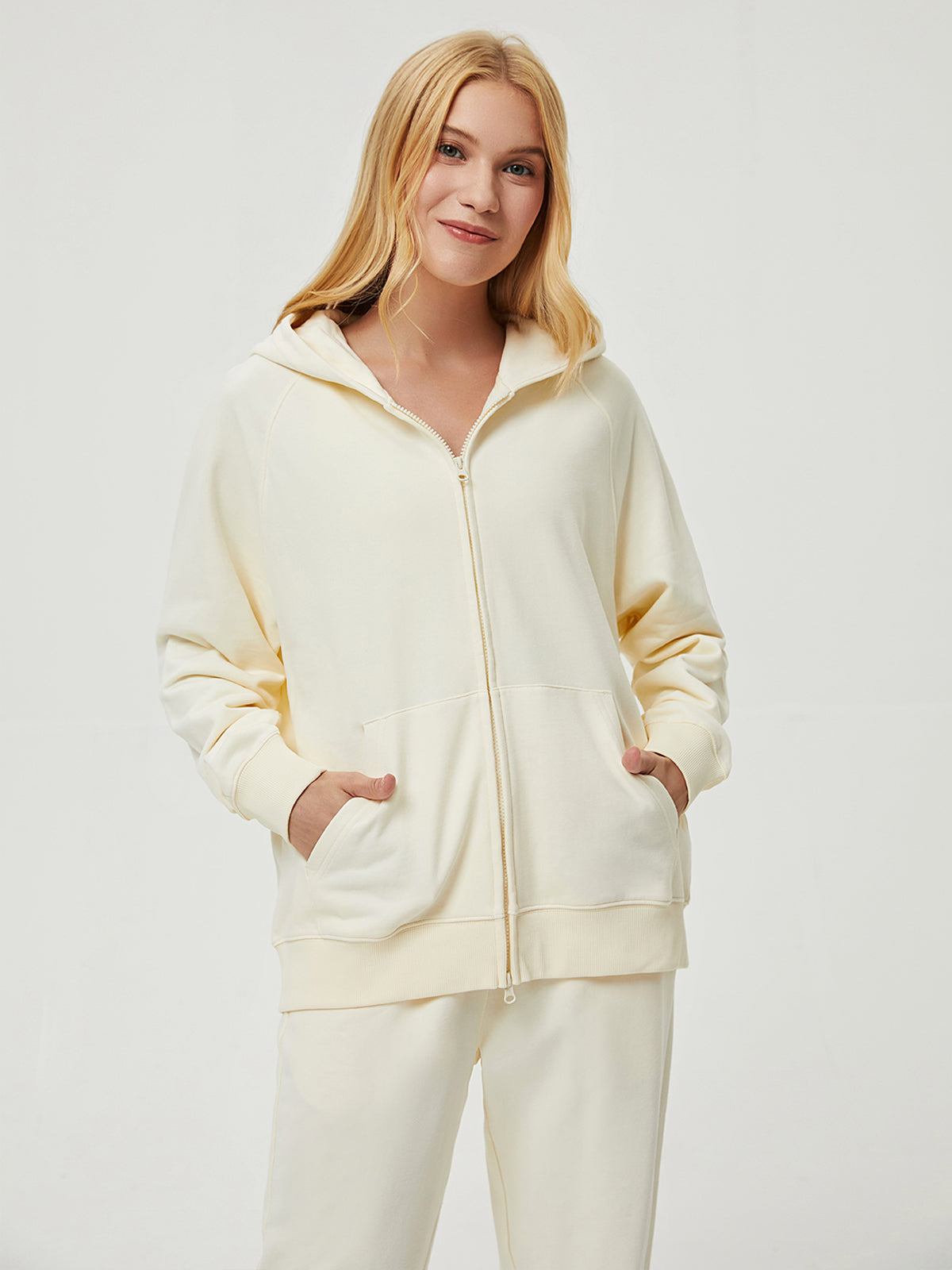 Sweat à capuche zippé Terry Fleece Cloud Nine - Blanc chaud
