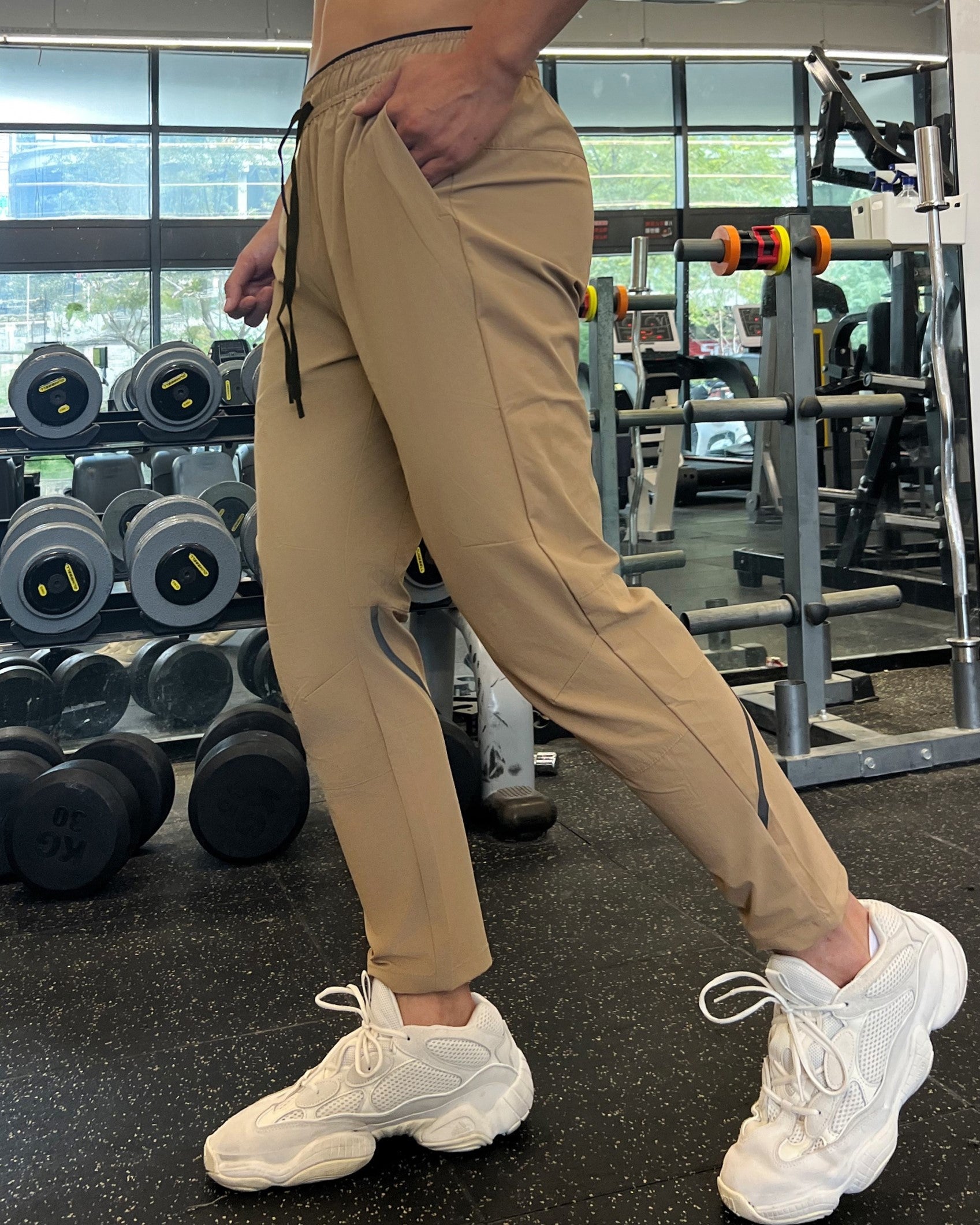 Entraînez-vous avec ce nouveau jogger à coupe slim qui offre une fonction imperméable, éliminant les soucis liés à la pluie et aux taches accidentelles. La technologie à séchage rapide vous protège de la transpiration excessive après un entraînement intensif. La coupe slim met mieux en valeur vos quadriceps et mollets, et la bande sportive à l'arrière attire davantage l'attention visuelle. Le matériau très élastique assure un confort optimal pour une liberté totale de mouvement.