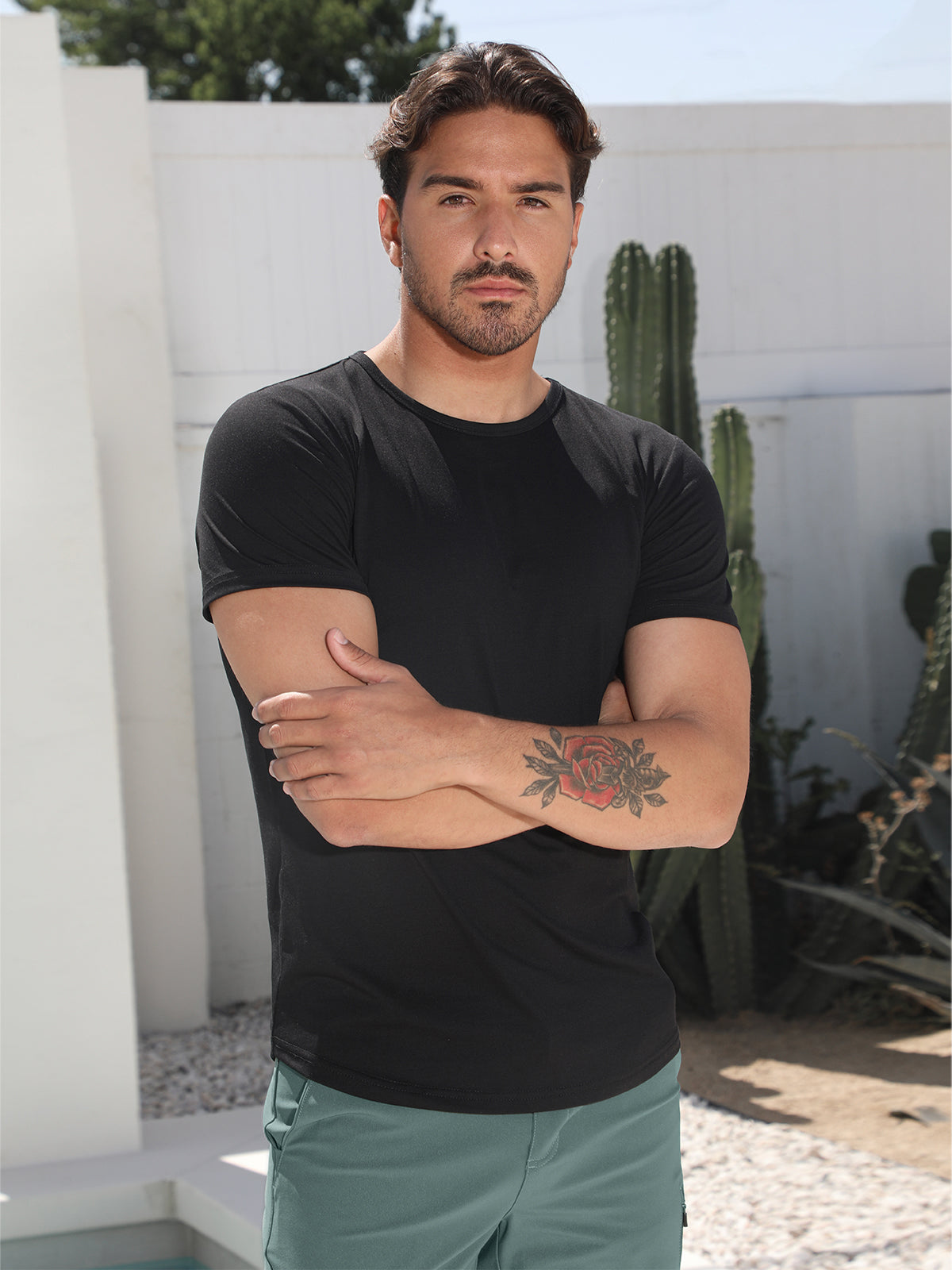 The Curve-Hem Tee from delivers on contemporary style and signature fit. Masterfully crafted from lightweight fabric engineered for all-day wear, its contouring details and curved hemline ensure flawless comfort and movement. Transitioning seamlessly from desk to drinks, this top pairs perfectly with all bottoms. Sleek and breathable, it enhances any look with refined versatility. An MVP layer for busy schedules andseasons alike, the Curve-Hem Tee will soon become your go-to top.