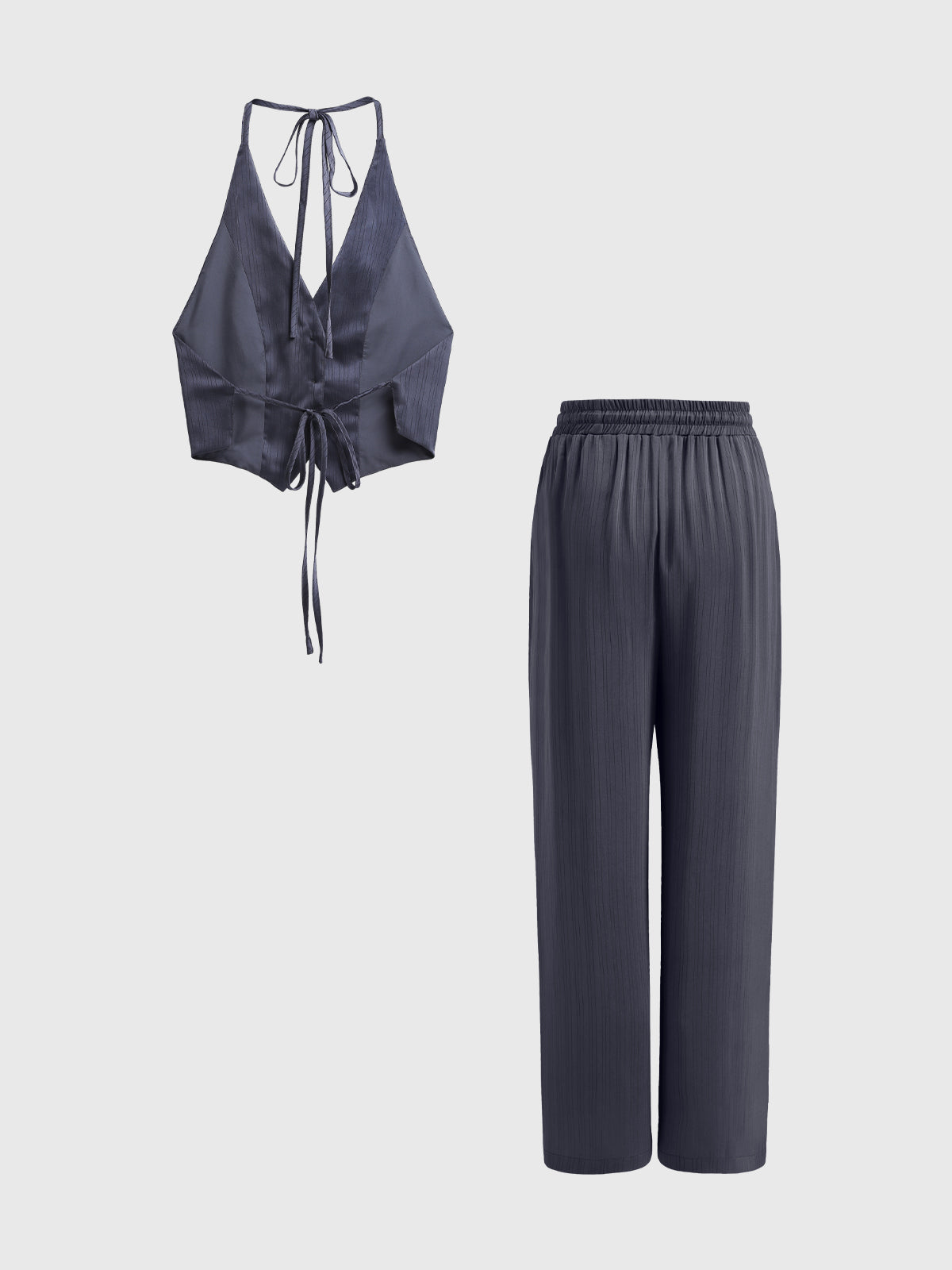 Chic V-neck Striped Vest & Palazzo Pants 2 Pieces Set