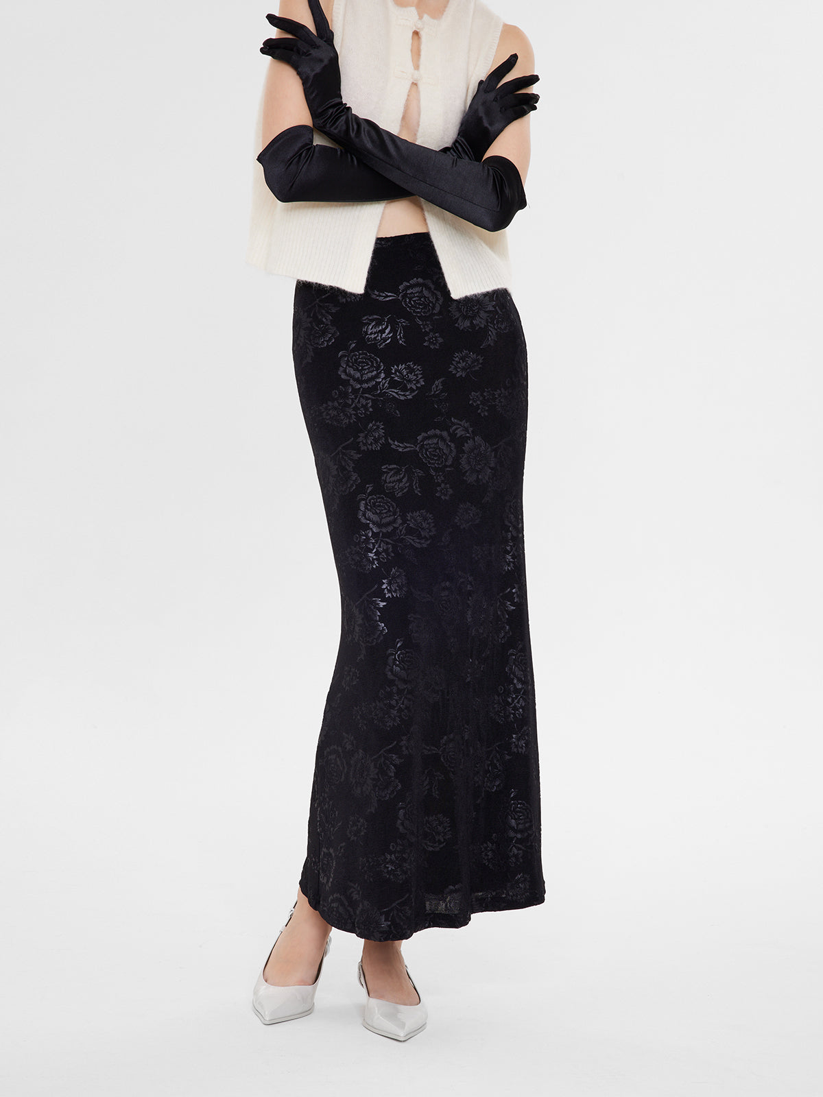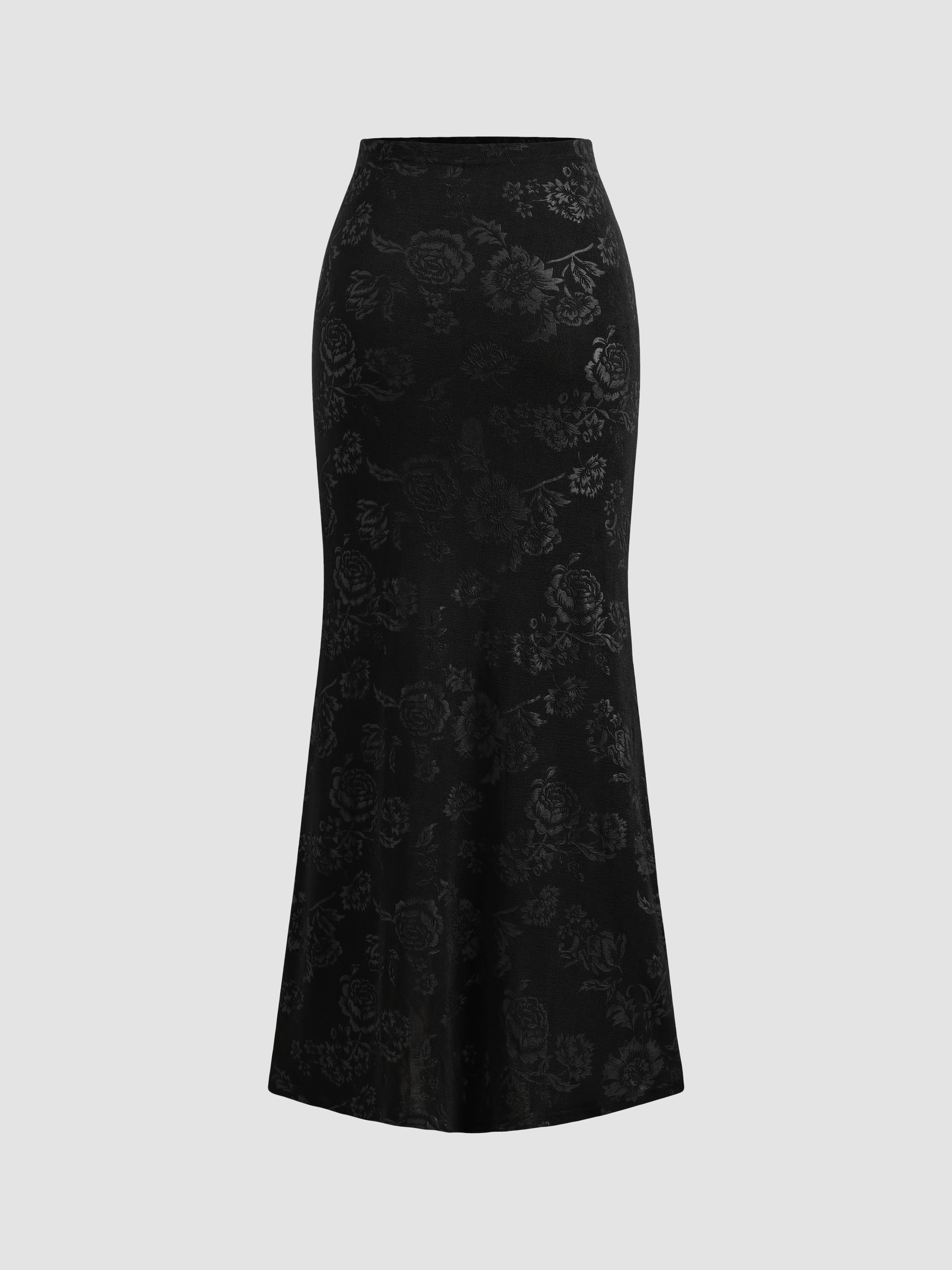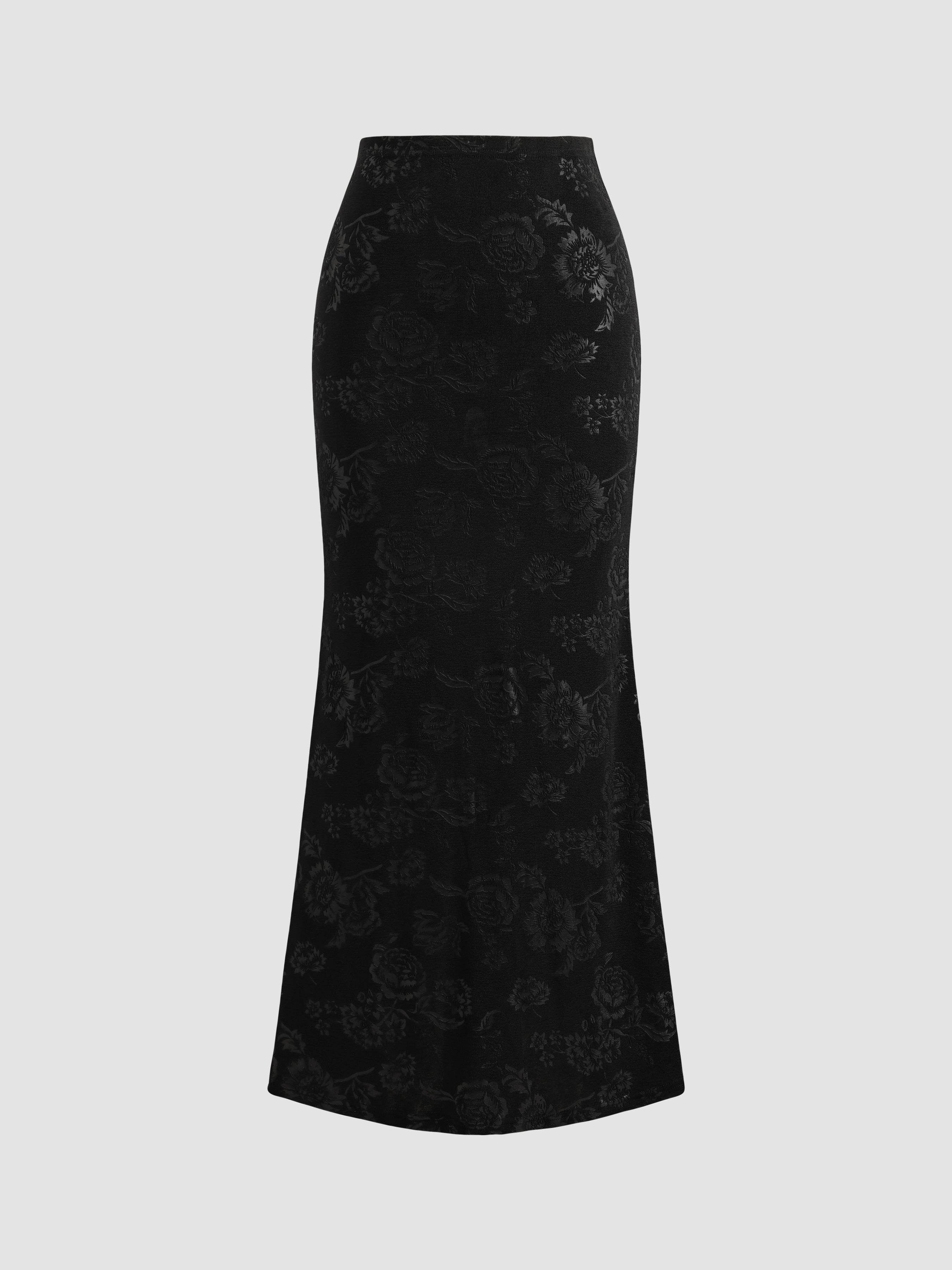 Knitted Floral Pattern Fishtail Long Skirt