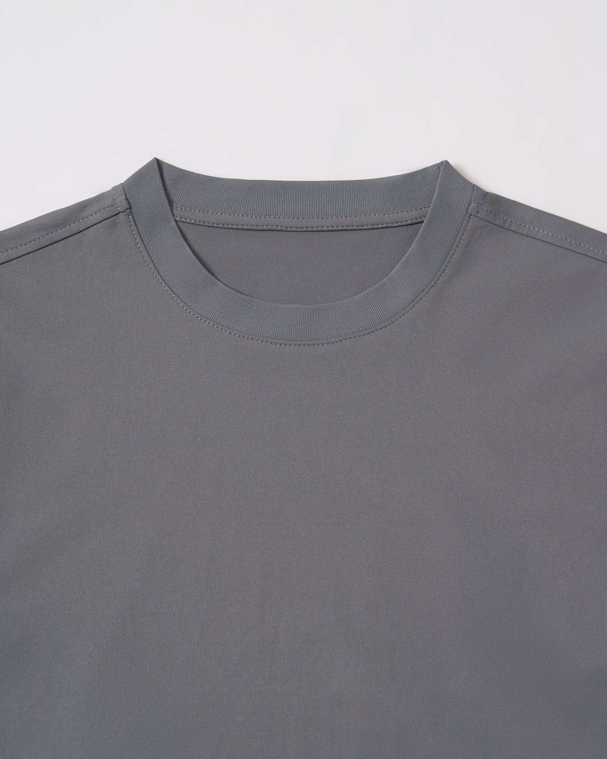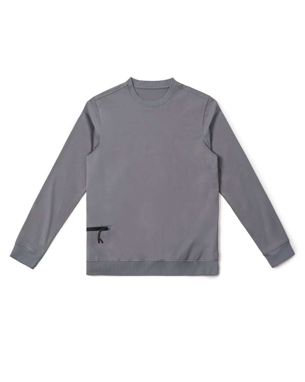 Featuring a classic round neck design and a practical zippered storage pocket, this top offers both style and utility. The wrinkle-resistant fabric makes it easy to care for and perfect for daily wear, workouts, travel, or outdoor activities.
