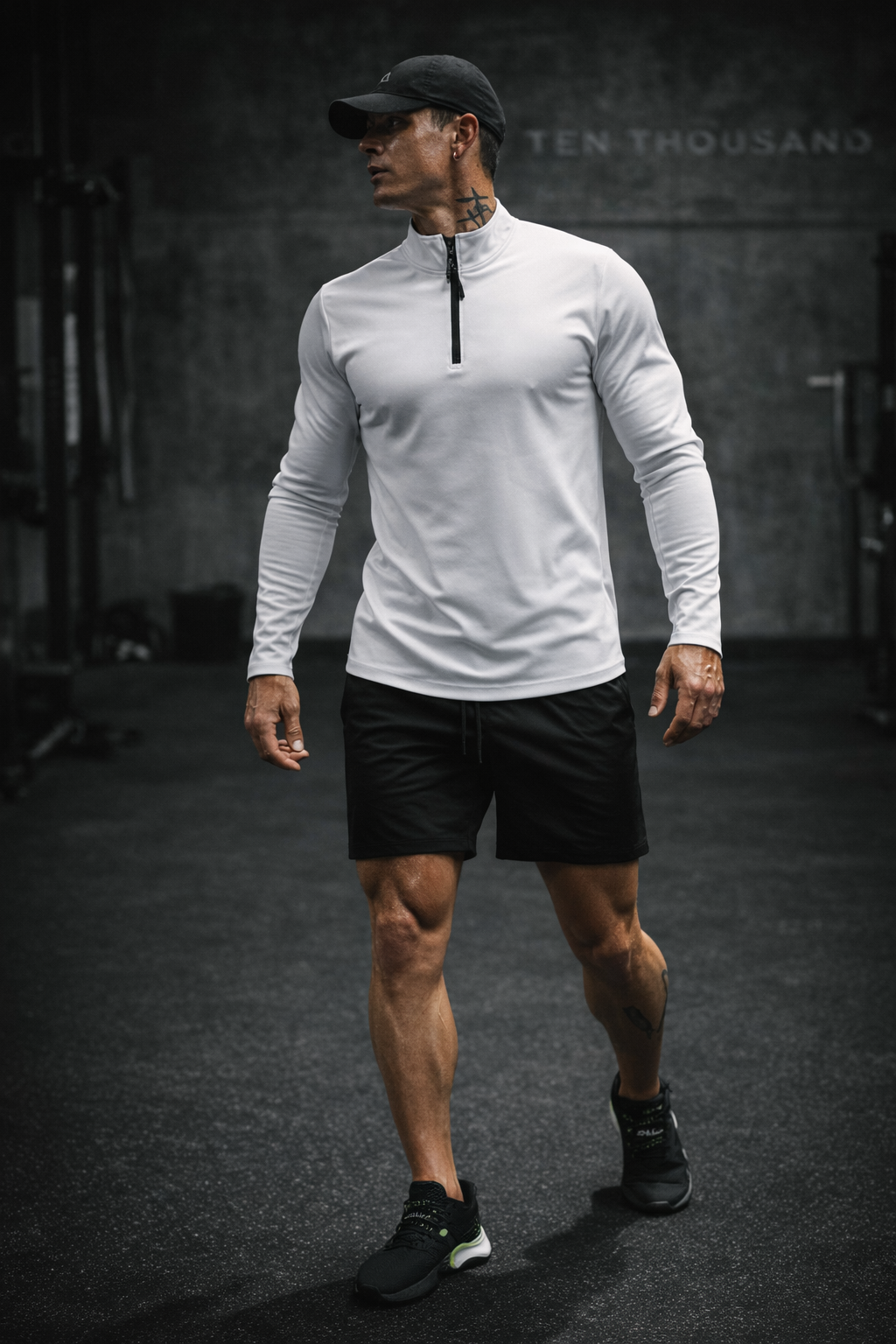 The half-zip collar provides adjustable ventilation and easy wear, while the lightweight moisture-wicking fabric keeps you dry and comfortable during intense training sessions. Hidden side seam pockets with mesh lining offer convenient storage without disrupting the sleek silhouette.