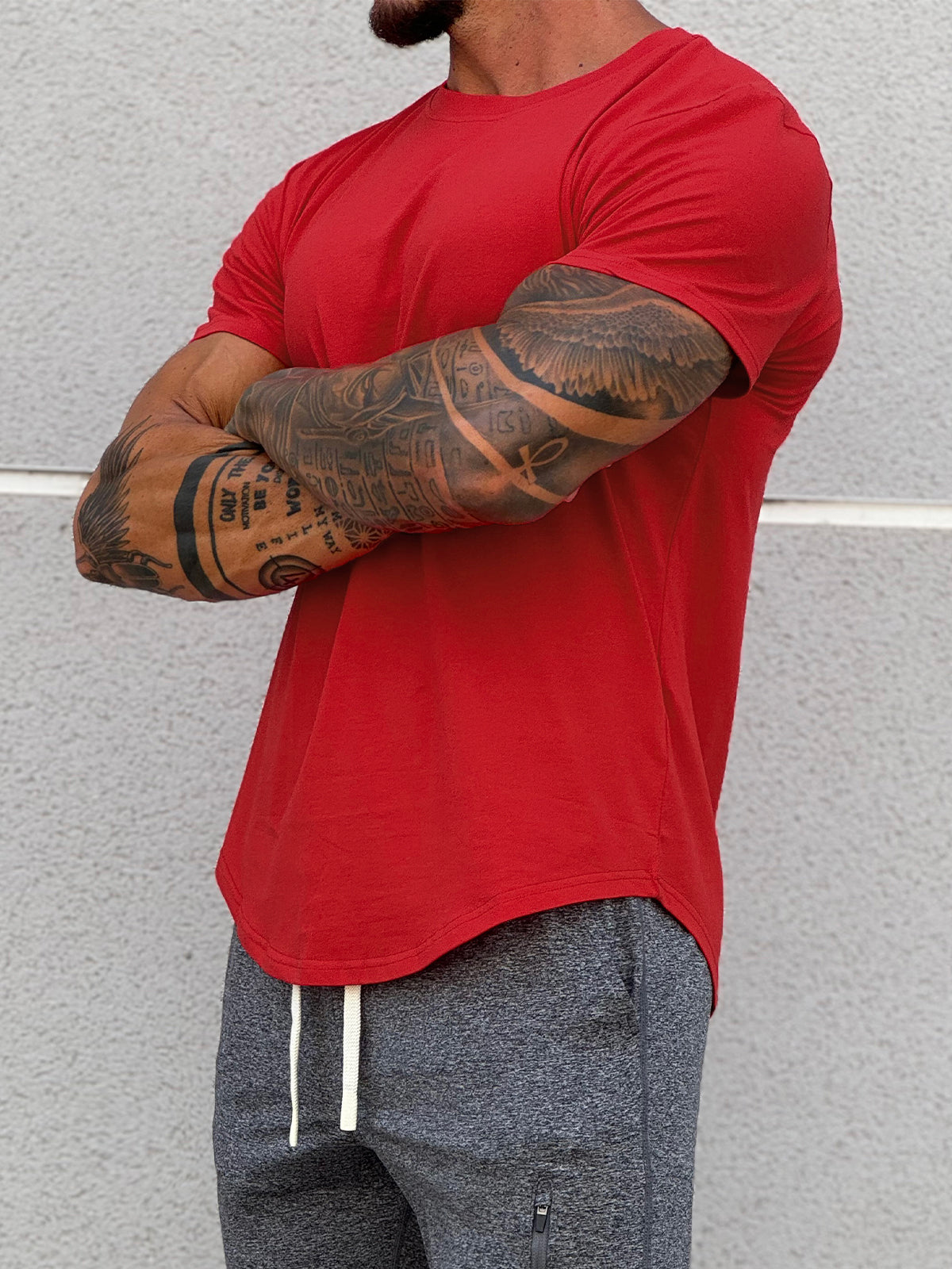 Kore Curved Hem T-shirt True Muscle Fit Crew Neck - Ahaselected