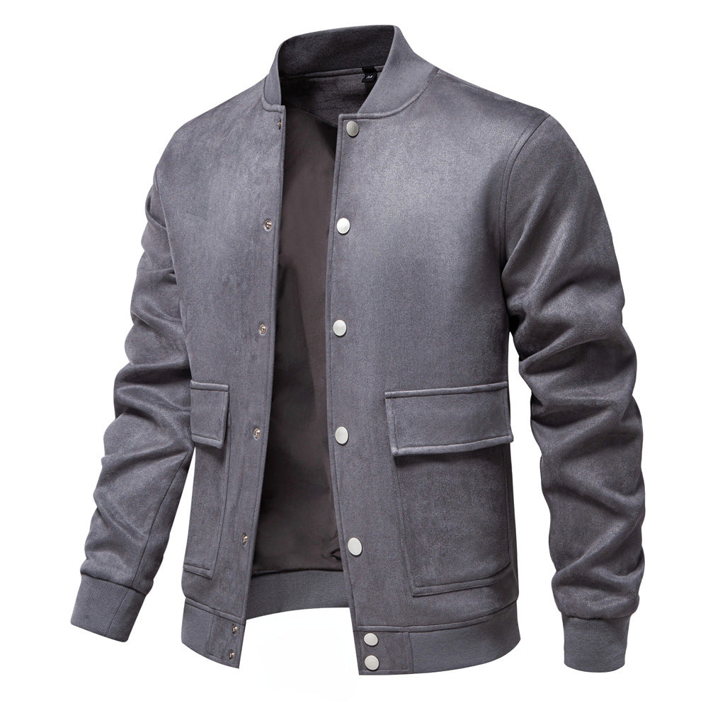 A timeless outerwear essential that combines modern design with everyday comfort. This suede bomber jacket offers a sleek, minimalist look enhanced by its soft-touch finish and structured silhouette — perfect for both casual and smart-casual occasions.