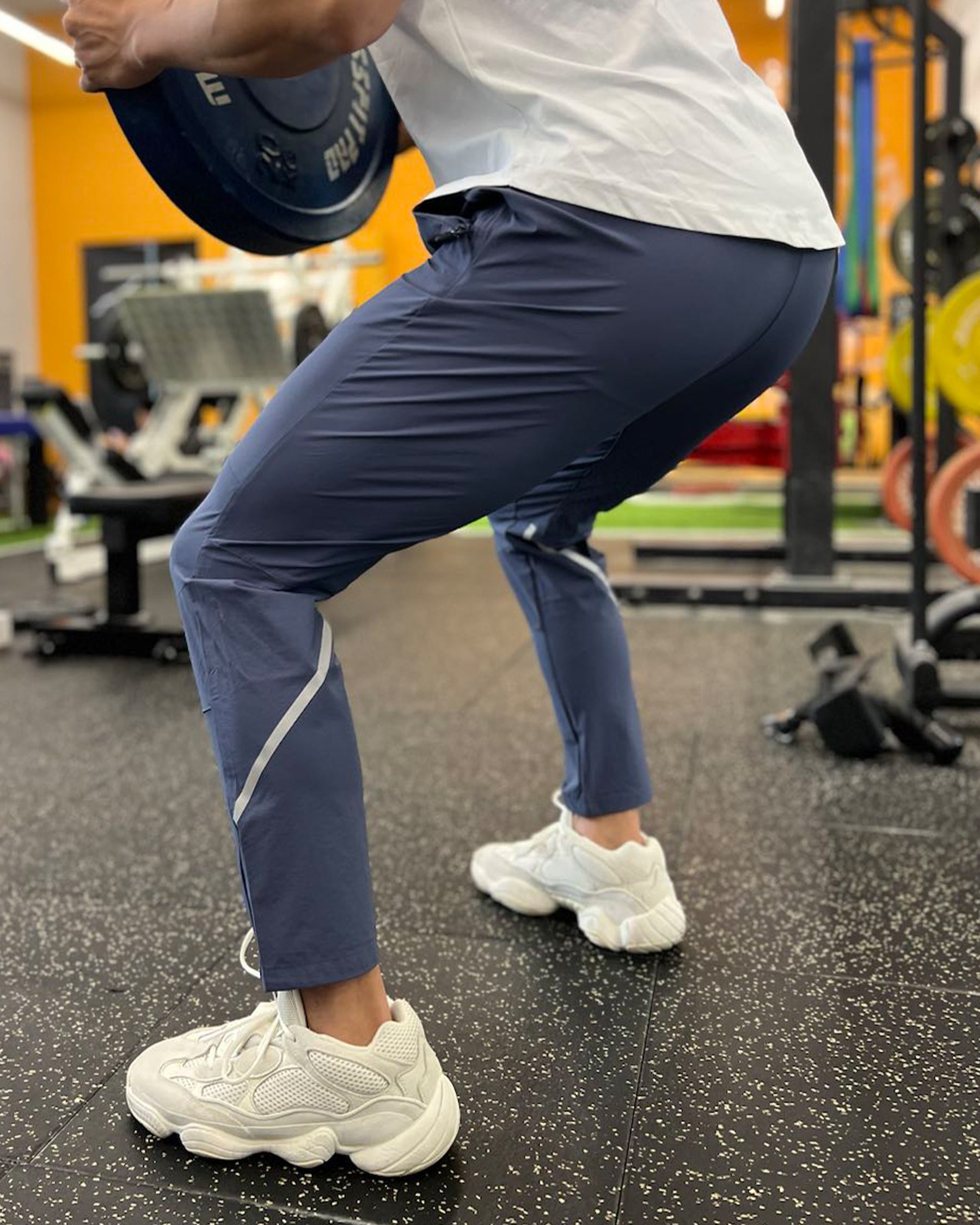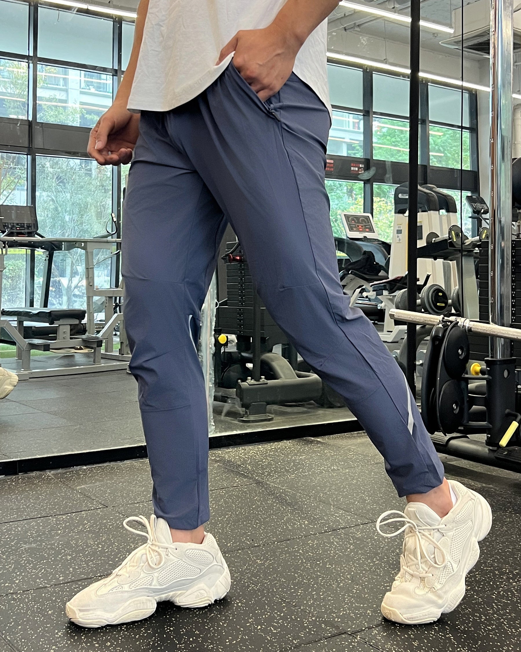 Entraînez-vous avec ce nouveau jogger à coupe slim qui offre une fonction imperméable, éliminant les soucis liés à la pluie et aux taches accidentelles. La technologie à séchage rapide vous protège de la transpiration excessive après un entraînement intensif. La coupe slim met mieux en valeur vos quadriceps et mollets, et la bande sportive à l'arrière attire davantage l'attention visuelle. Le matériau très élastique assure un confort optimal pour une liberté totale de mouvement.