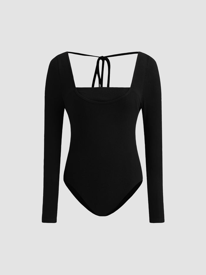 Fake Two Piece Backless Bodysuit