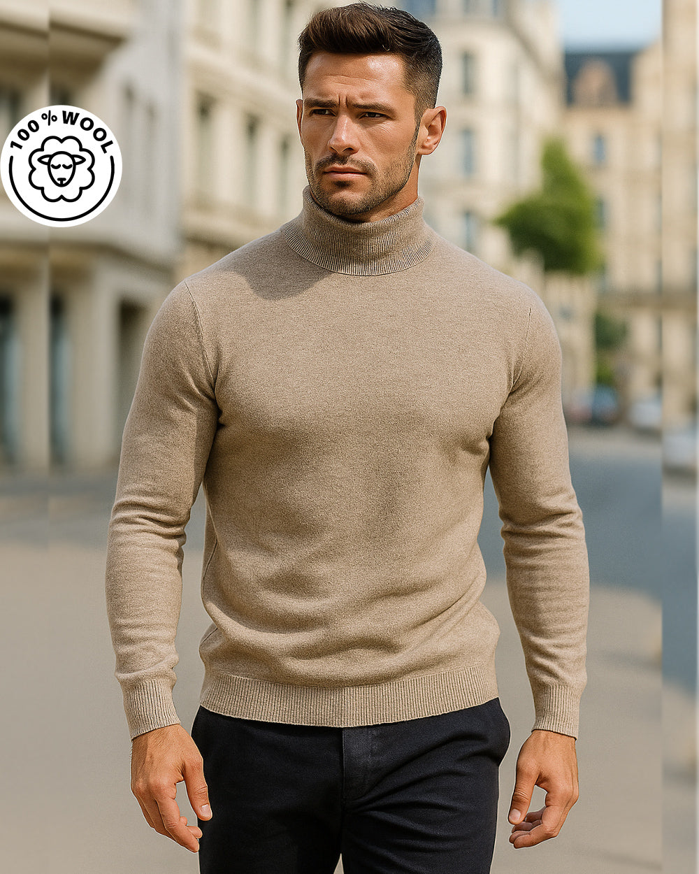 Refined warmth meets timeless simplicity in this 100% wool base layer turtleneck sweater. Crafted from ultra-soft pure wool, it provides natural insulation and breathability, keeping you comfortably warm without bulk. Designed with a slim, lightweight fit, it layers effortlessly under jackets or coats, while its minimalist silhouette allows it to shine as a standalone piece for everyday sophistication.
