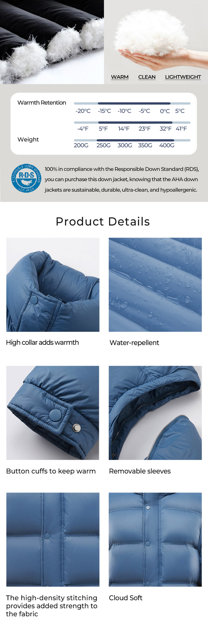 - Material:100% responsibly sourced duck down