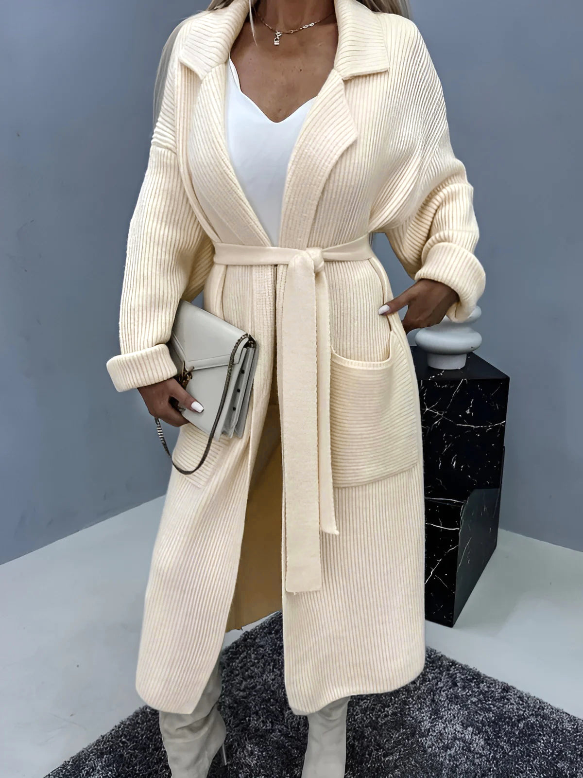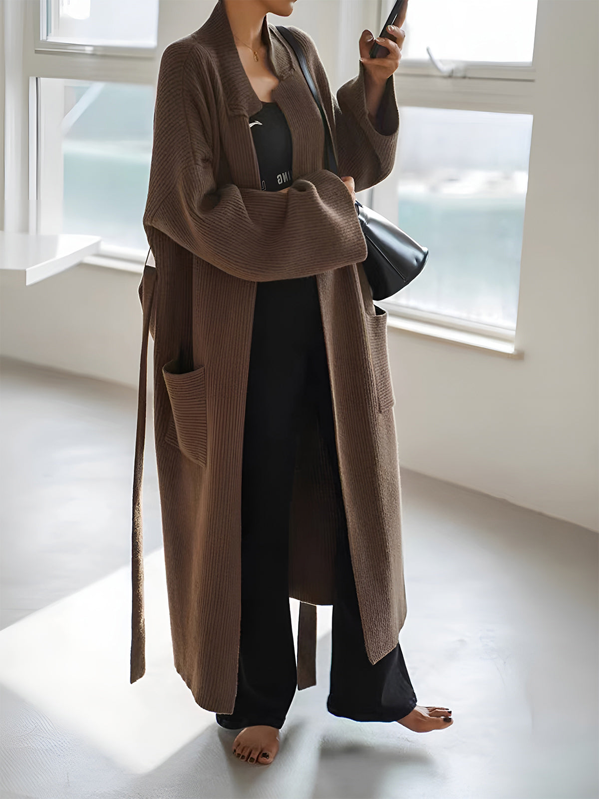 Cashmere Belted Pocket Midi Cardigan