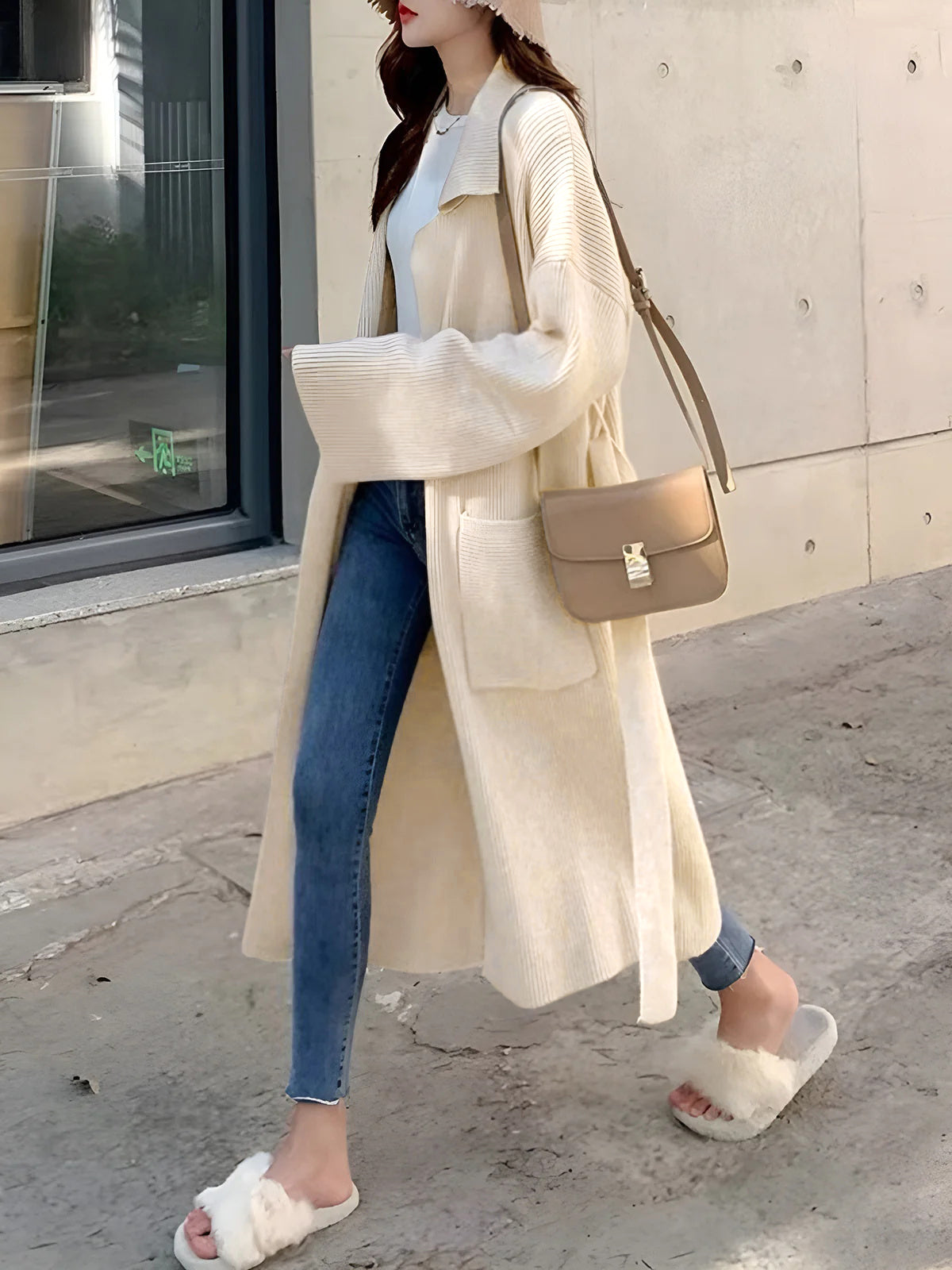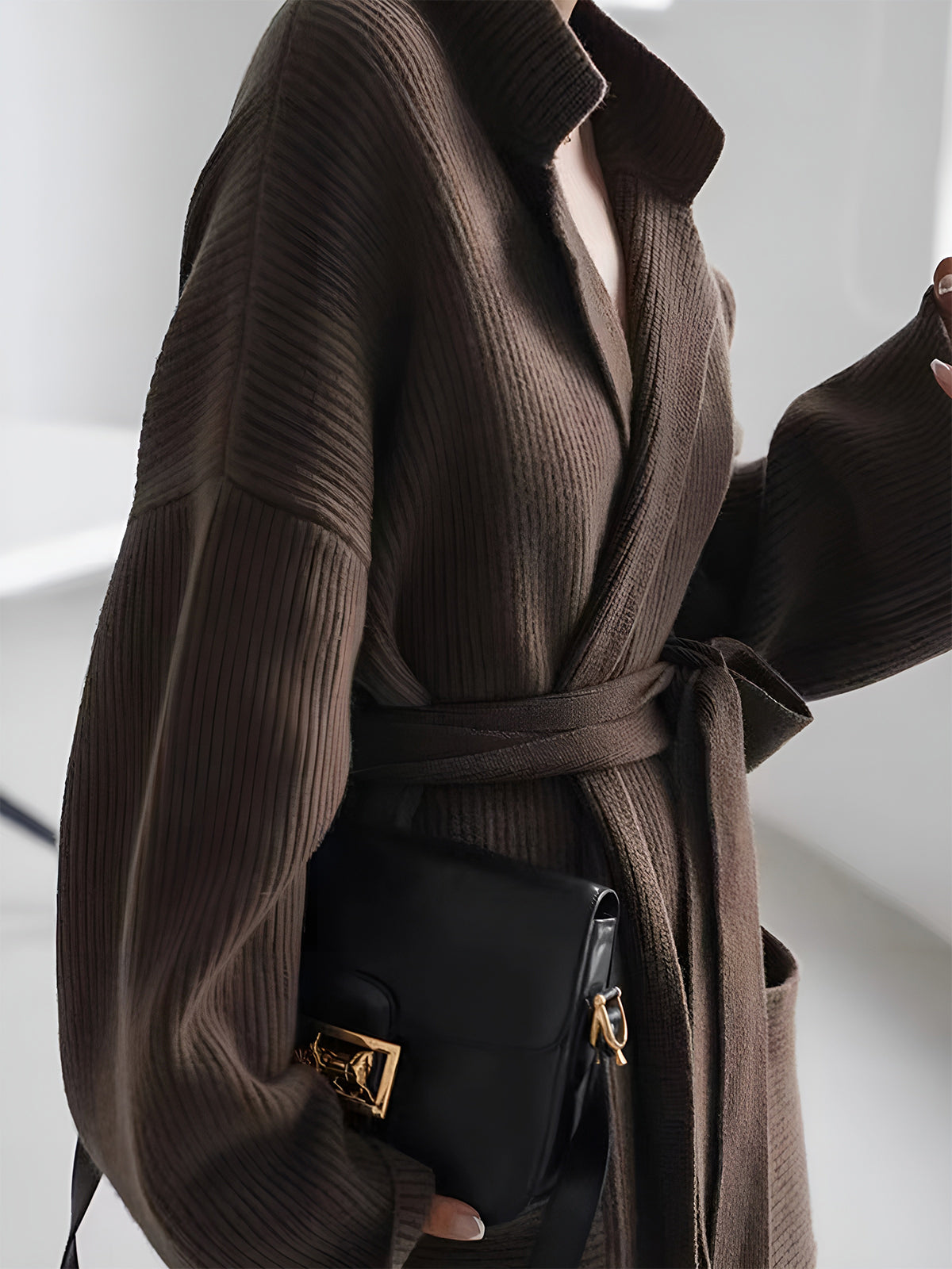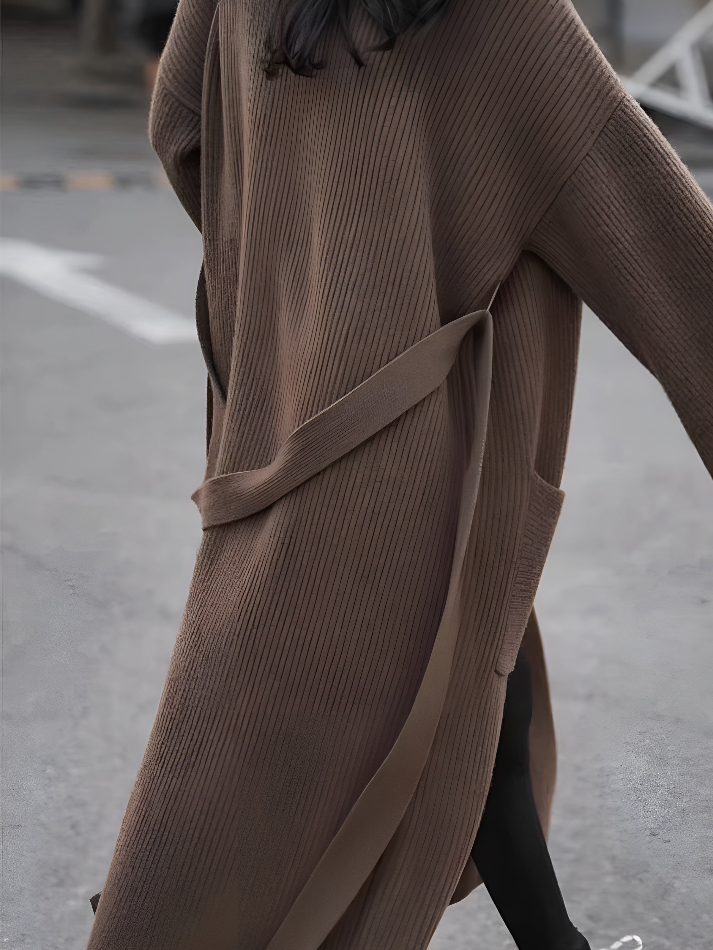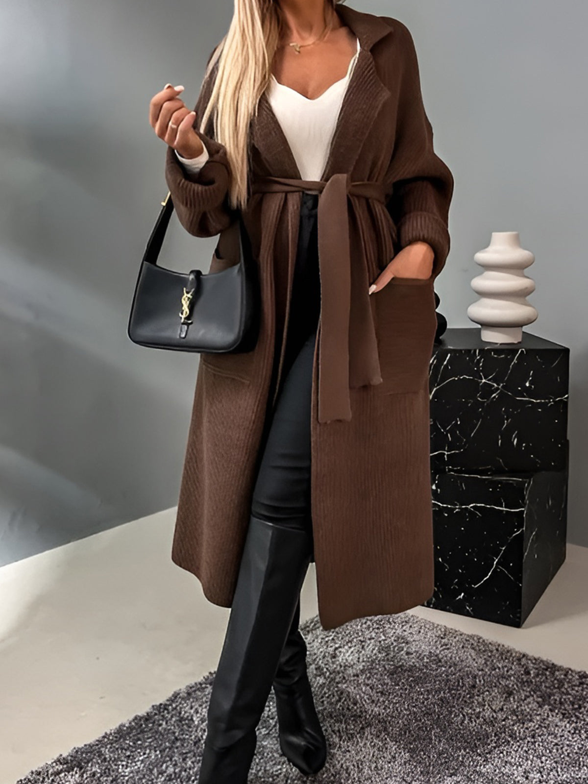 Cozy Loose Belt Pocket Cardigan