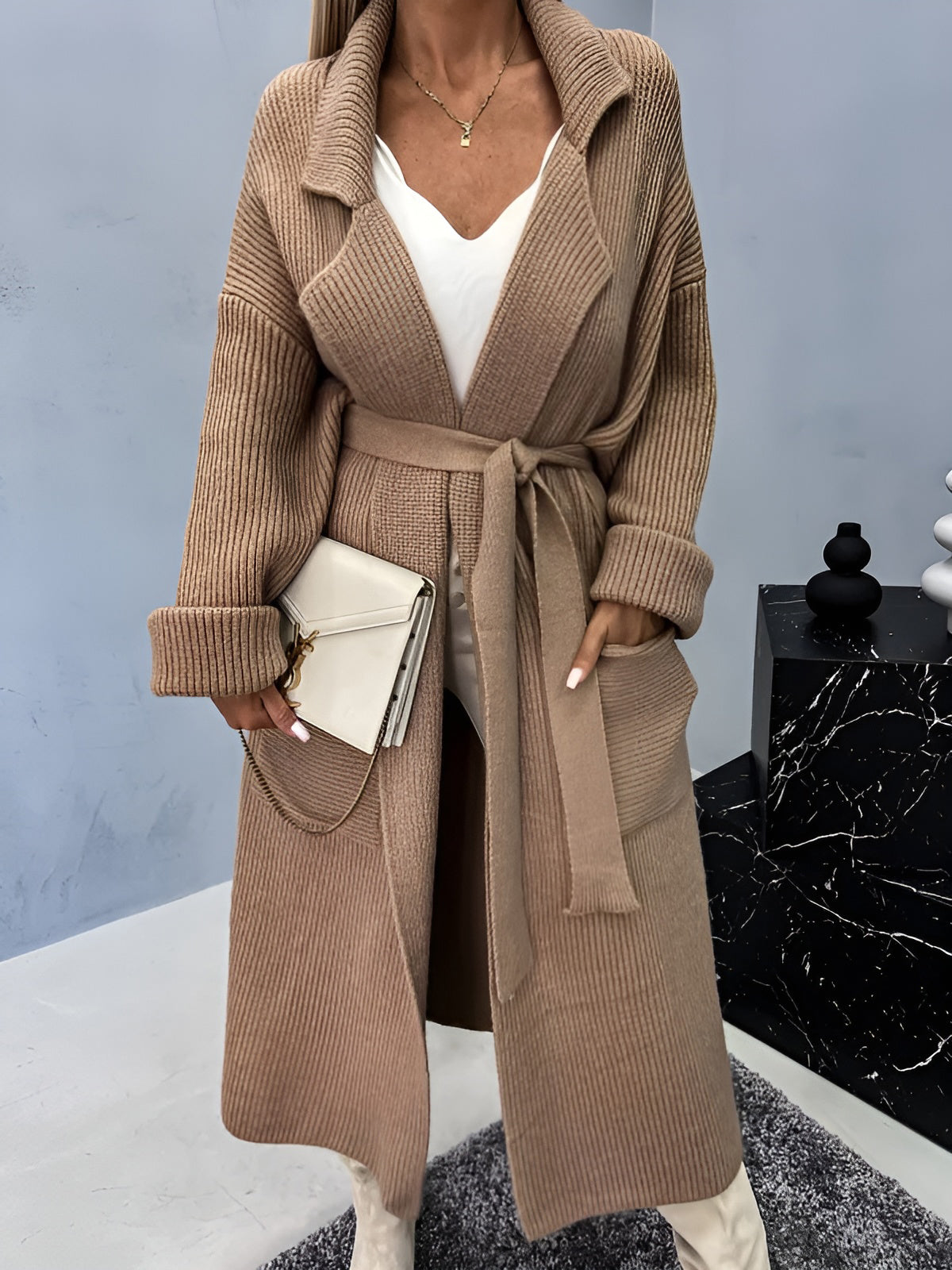 Cashmere Belted Pocket Midi Cardigan - Ahaselected