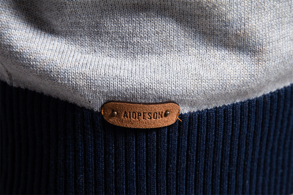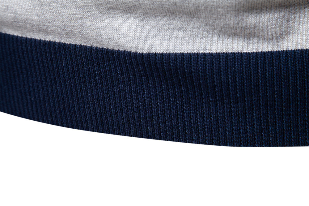 Design a strisce audace: Ampie strisce colorblock in blu navy, grigio e bordeaux aggiungono un look distintivo e sicuro.