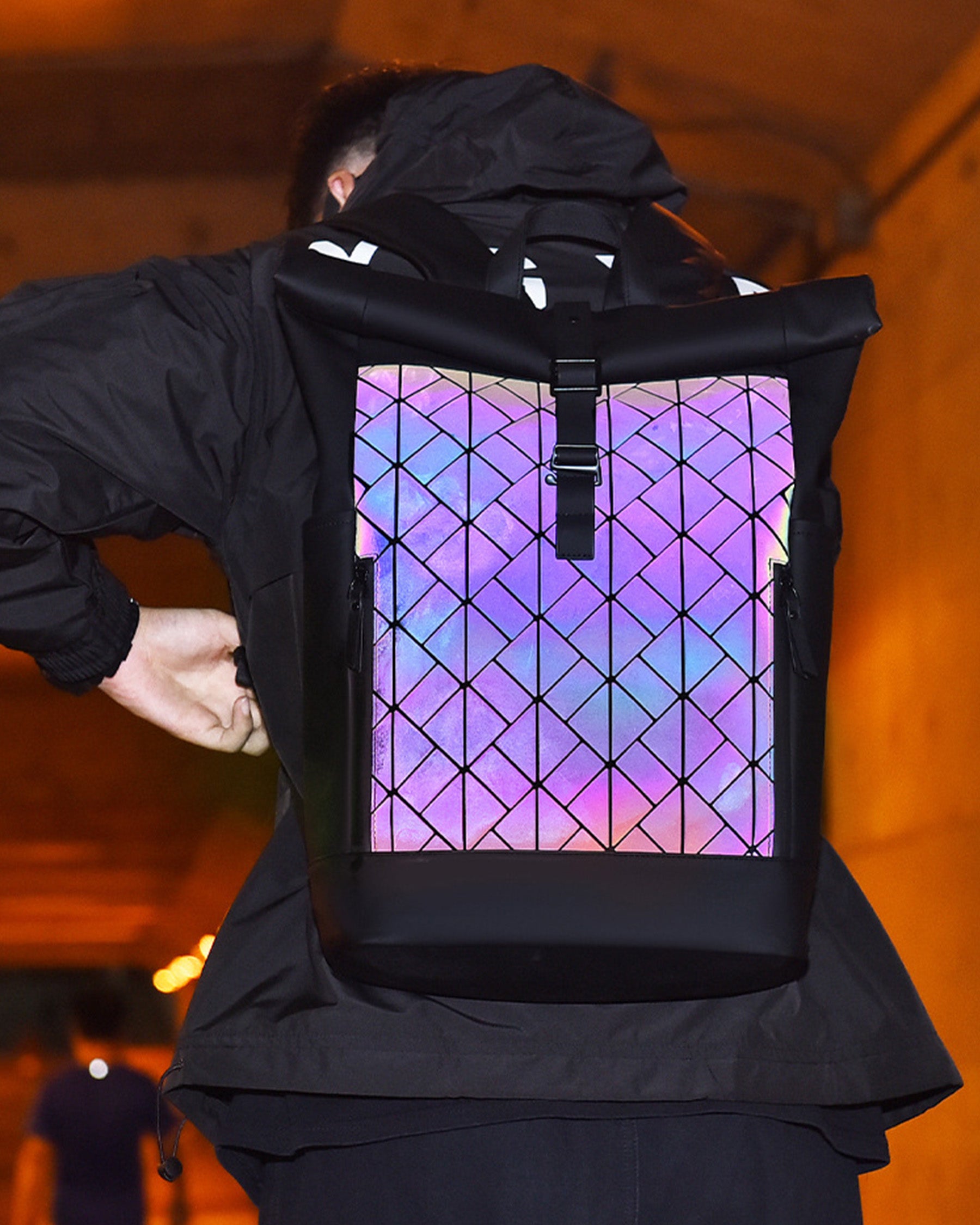 Lo zaino elegante perfetto per scuola, lavoro e allenamento. Presenta un motivo a diamante unico e una colorazione arcobaleno riflettente, garantita per farti distinguere nella folla. L'esterno dello zaino è completamente impermeabile per eliminare le preoccupazioni che i tuoi oggetti vengano rovinati. Uno scomparto separato per laptop che ospita un laptop da 15,6 pollici.