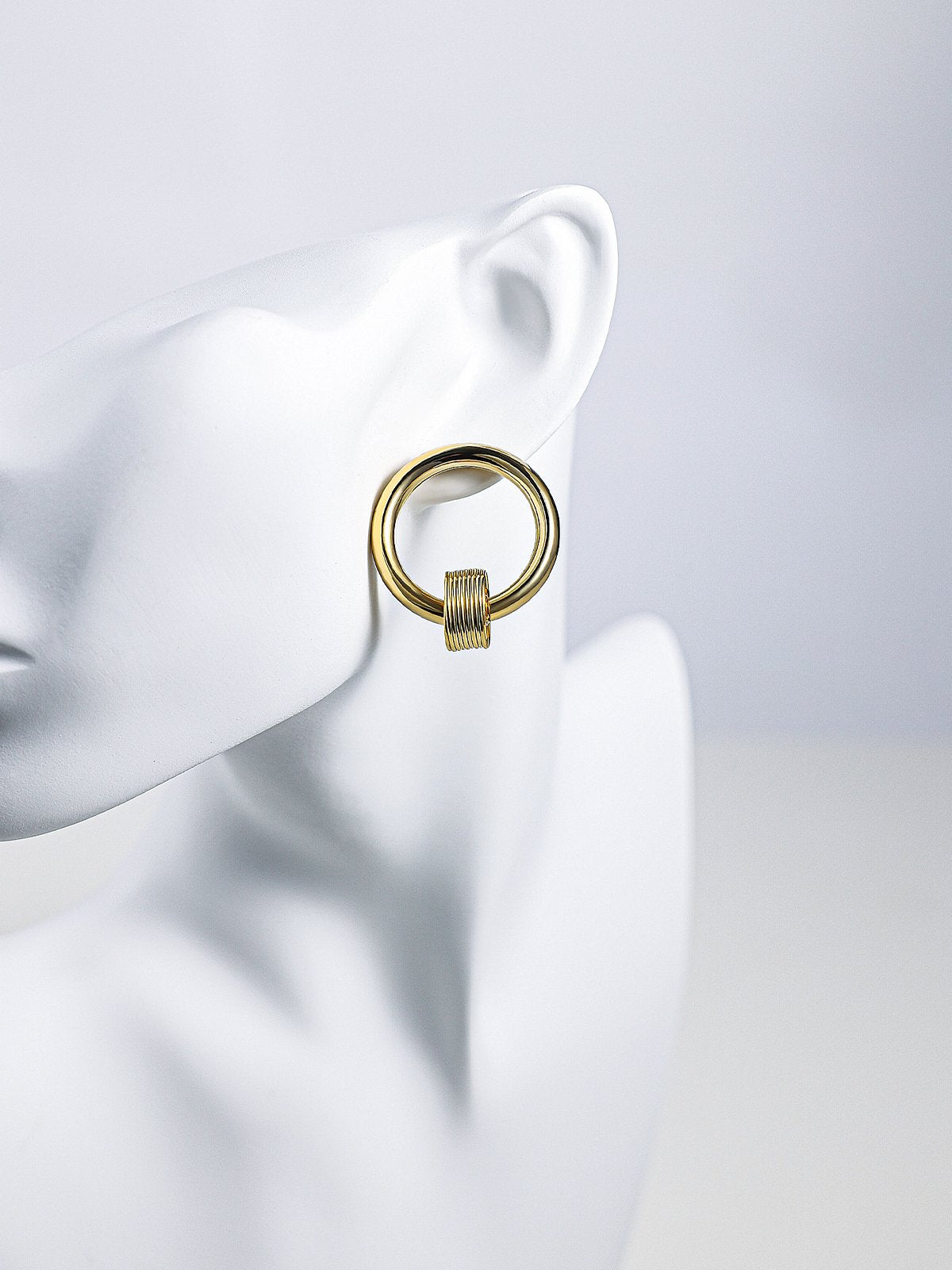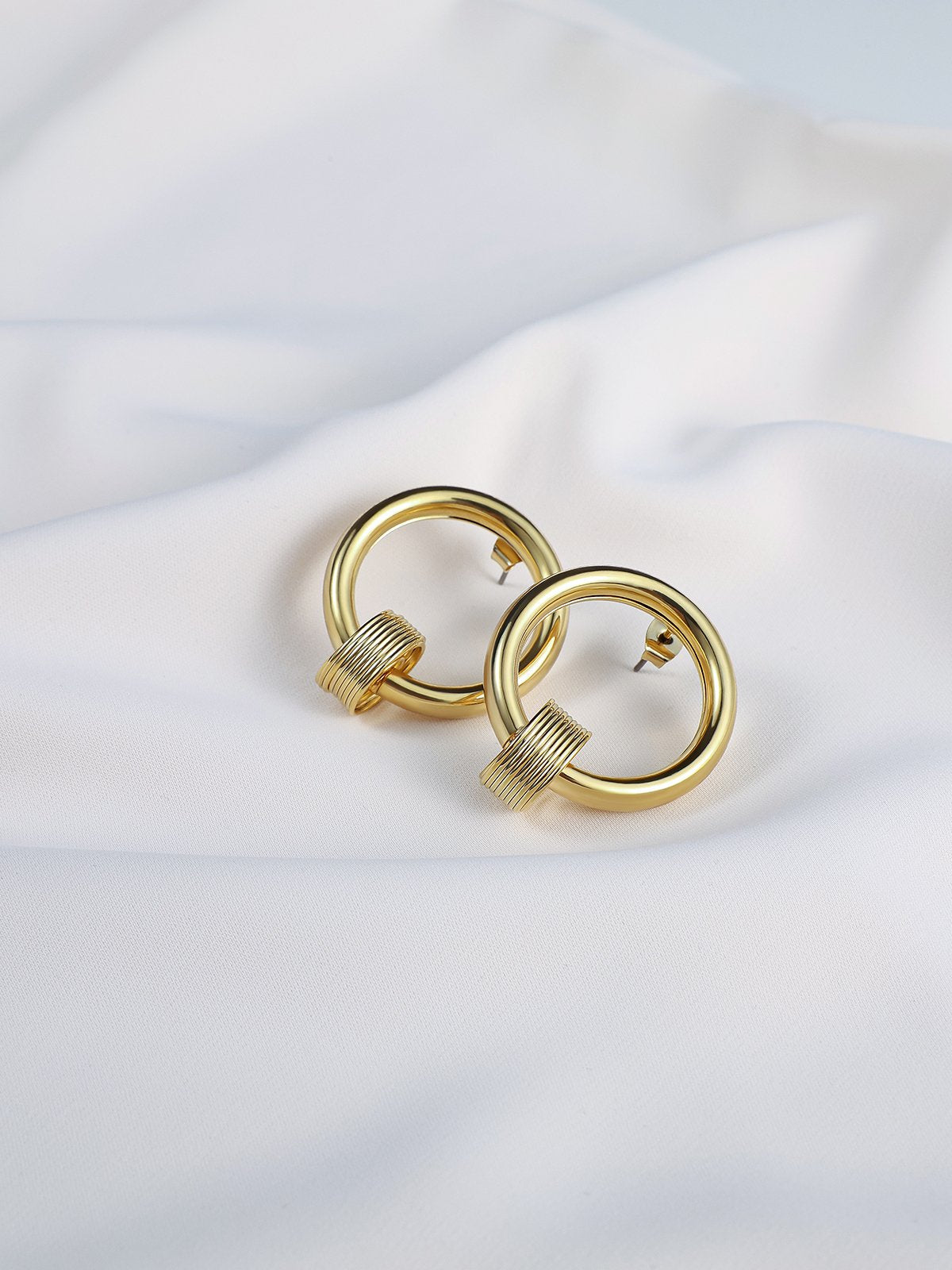 Round Double Circle Gold Metal Earrings - Ahaselected