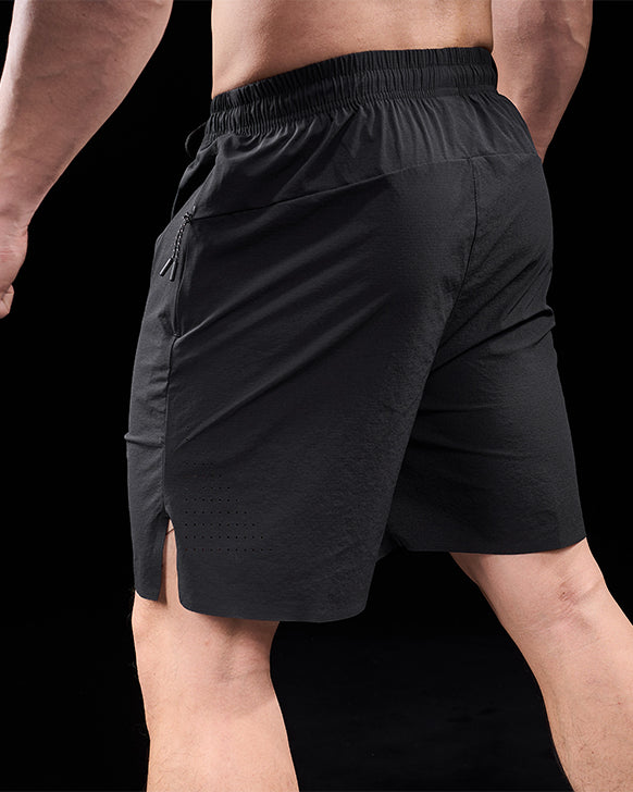 Designed for ultimate performance, these lightweight shorts feature breathable fabric, laser-cut ventilation, and side slits for unrestricted movement. With a secure fit and zippered pockets, they keep you comfortable and equipped for any workout.