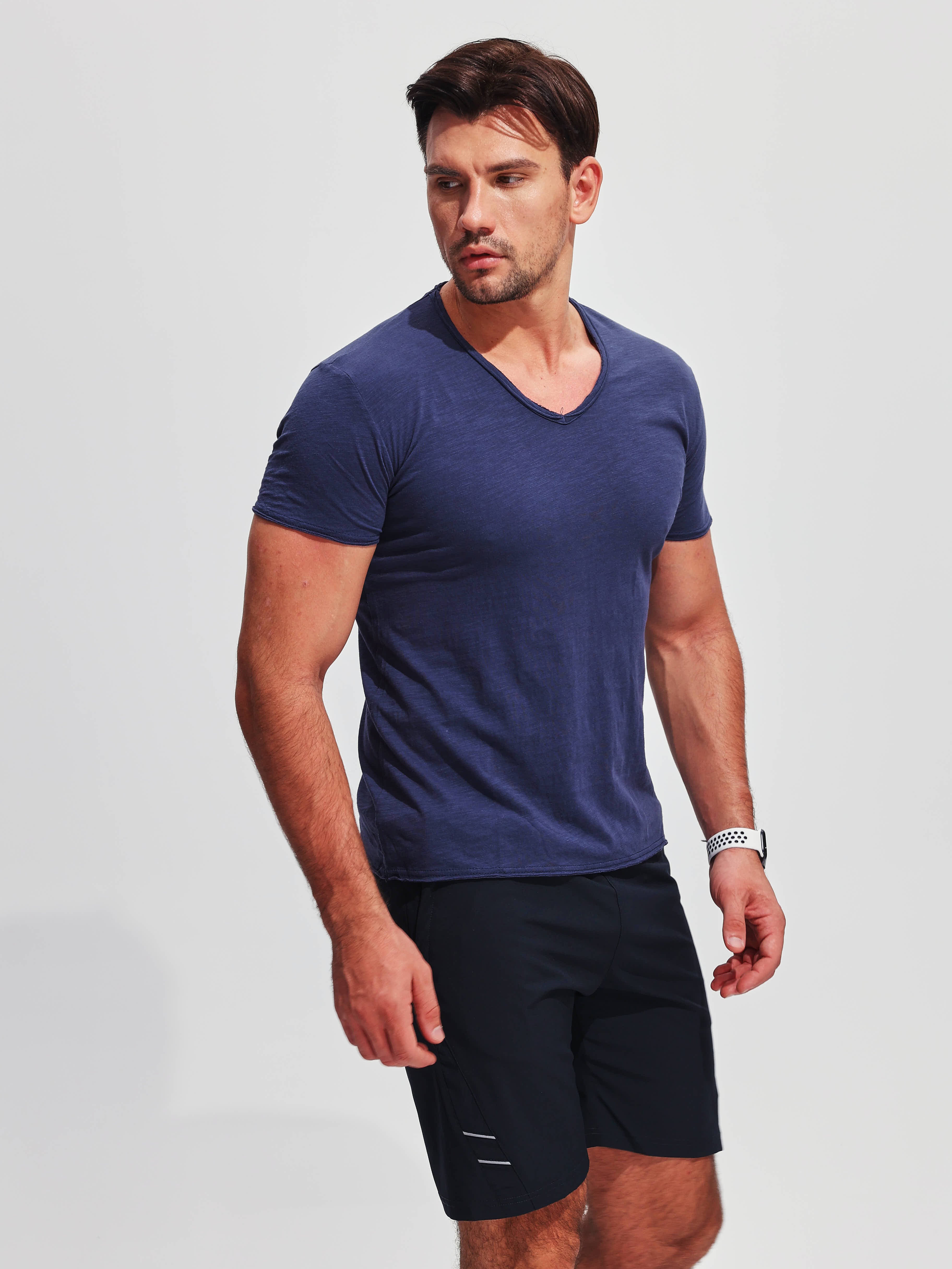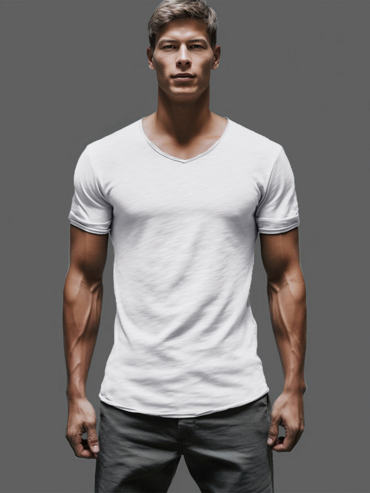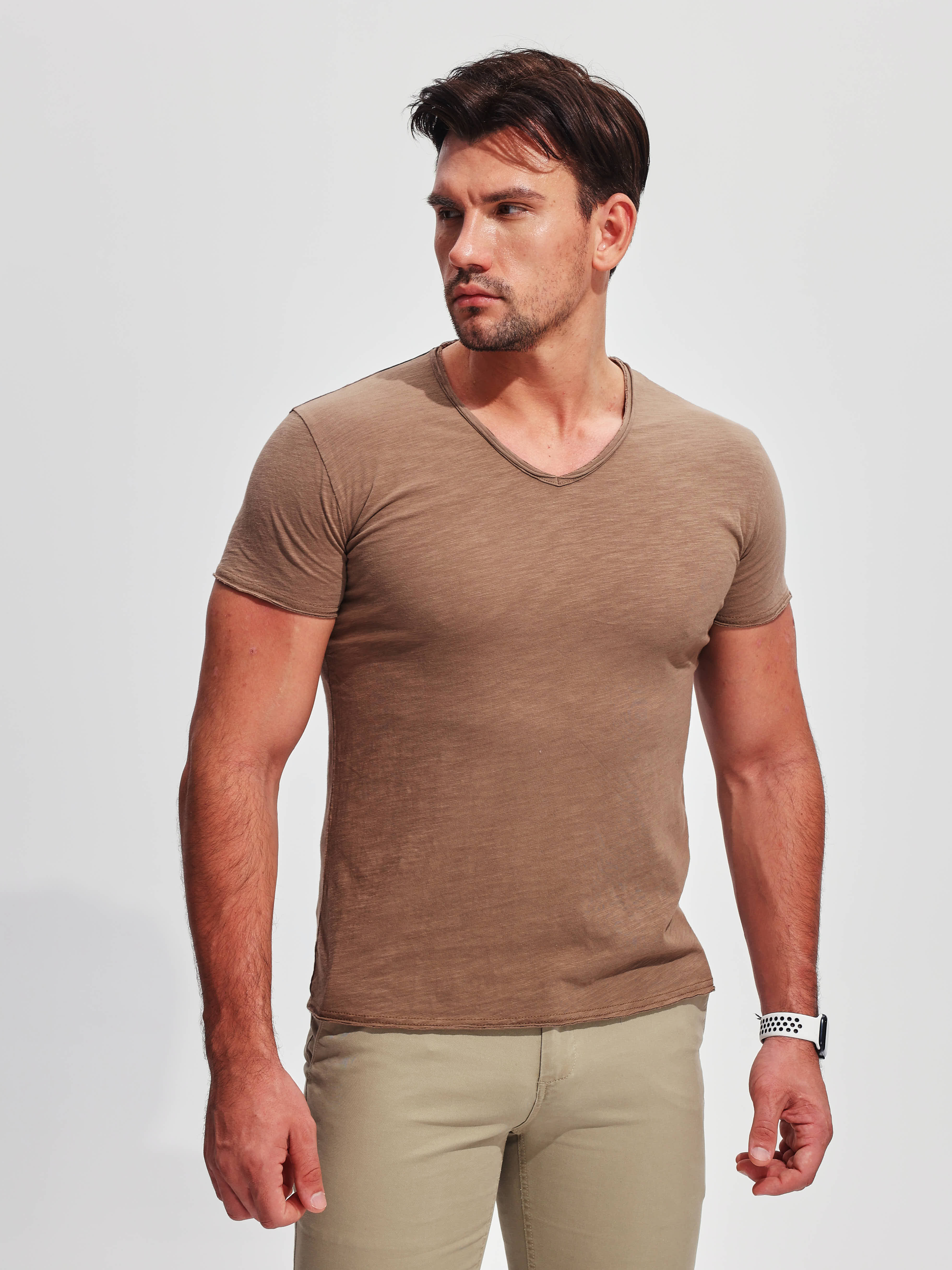 T-shirt a V in cotone slub